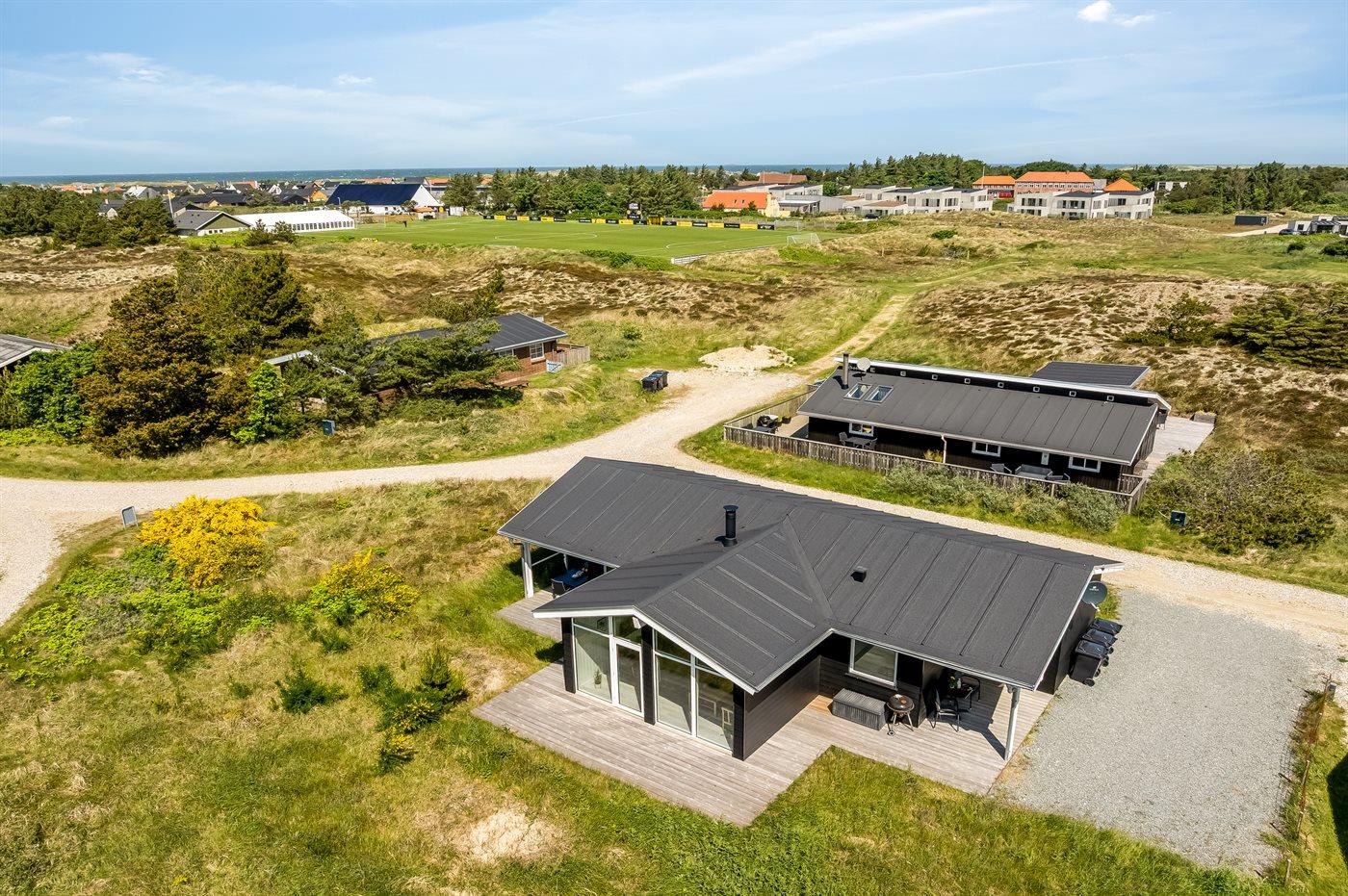 Flot, nybygget sommerhus i nordisk stil med spa og elbiloplader nær Klitmøllers strand.