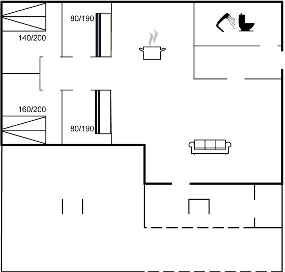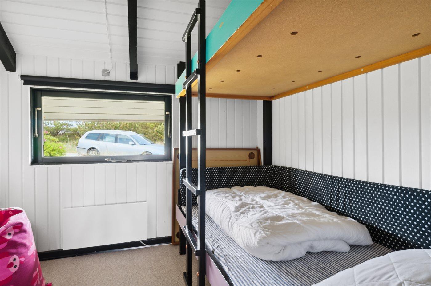 Der er i alt 4 soveværelser. Sovepladserne fordeler sig på: 4 sovepladser i dobbeltsenge. 4 sovepladser i køjesenge. Derudover er der 1 stk. barneseng.