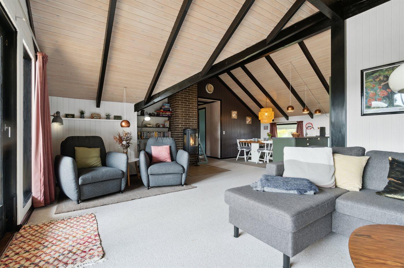 Hyggeligt sommerhus i Klitmøller med fire soveværelser, brændeovn og tæt på havet og natur.