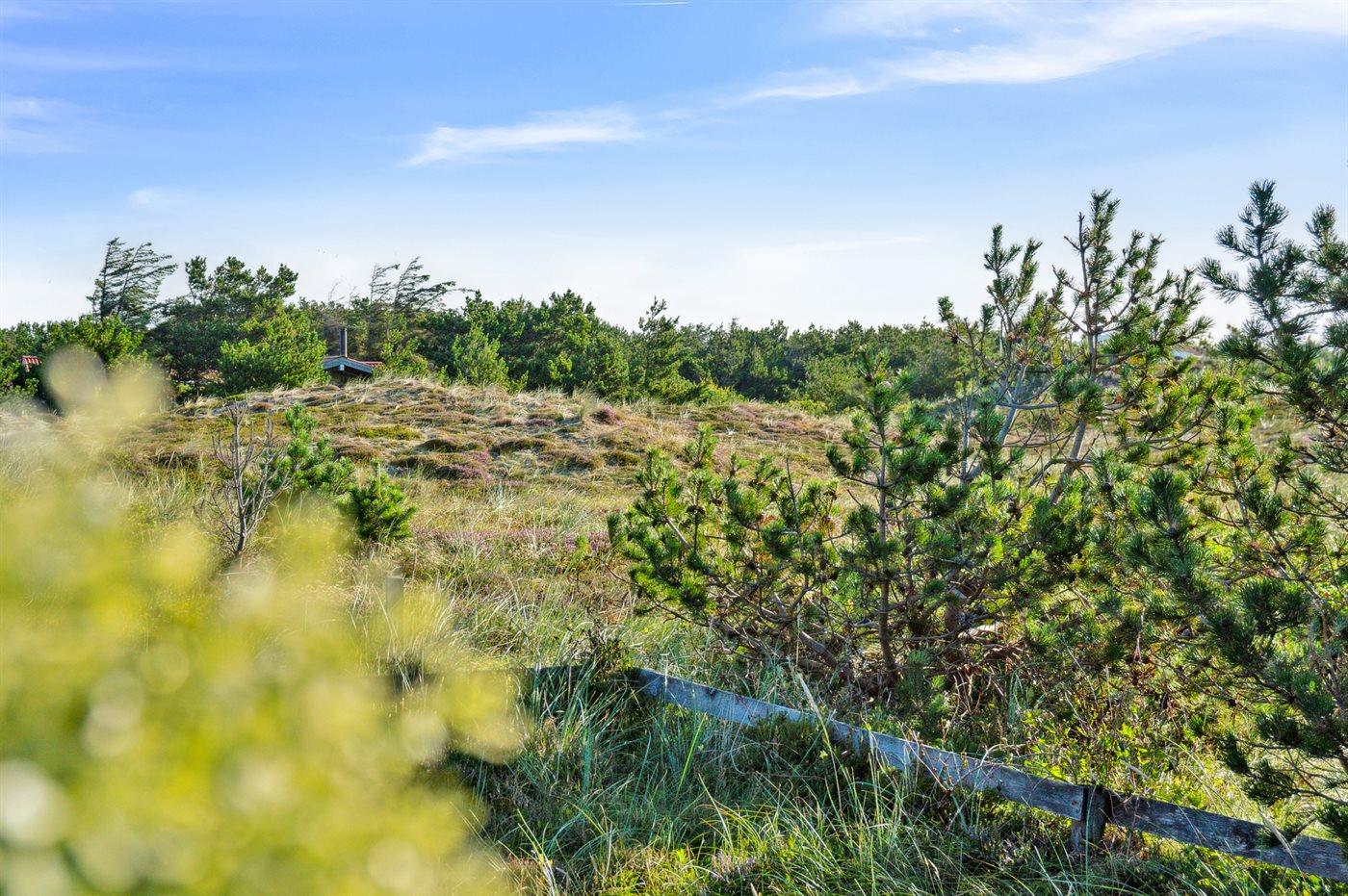 Ferieboligen er beliggende på en 1164 m² stor naturgrund. Der er 600 m til havet. Nærmeste forretning er beliggende i en afstand af 500 m. Der er en golfbane i en afstand af 5000 m. Til ferieboligen hører åbent terrasseareal. Desuden er der overdækket terrasse. Der er installeret stik til opladning af elbil. Parkering ved ferieboligen.
