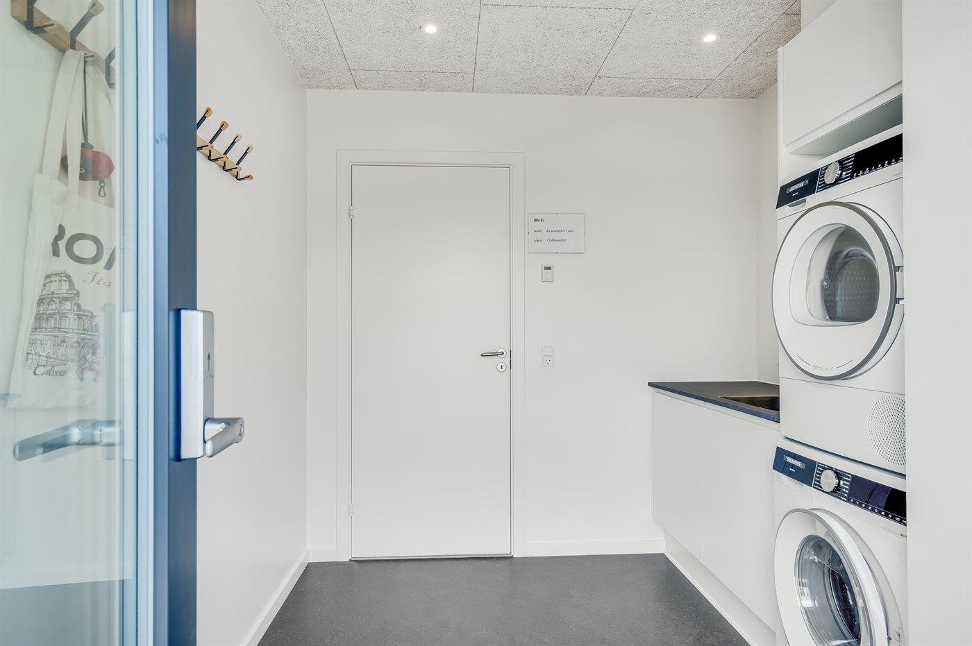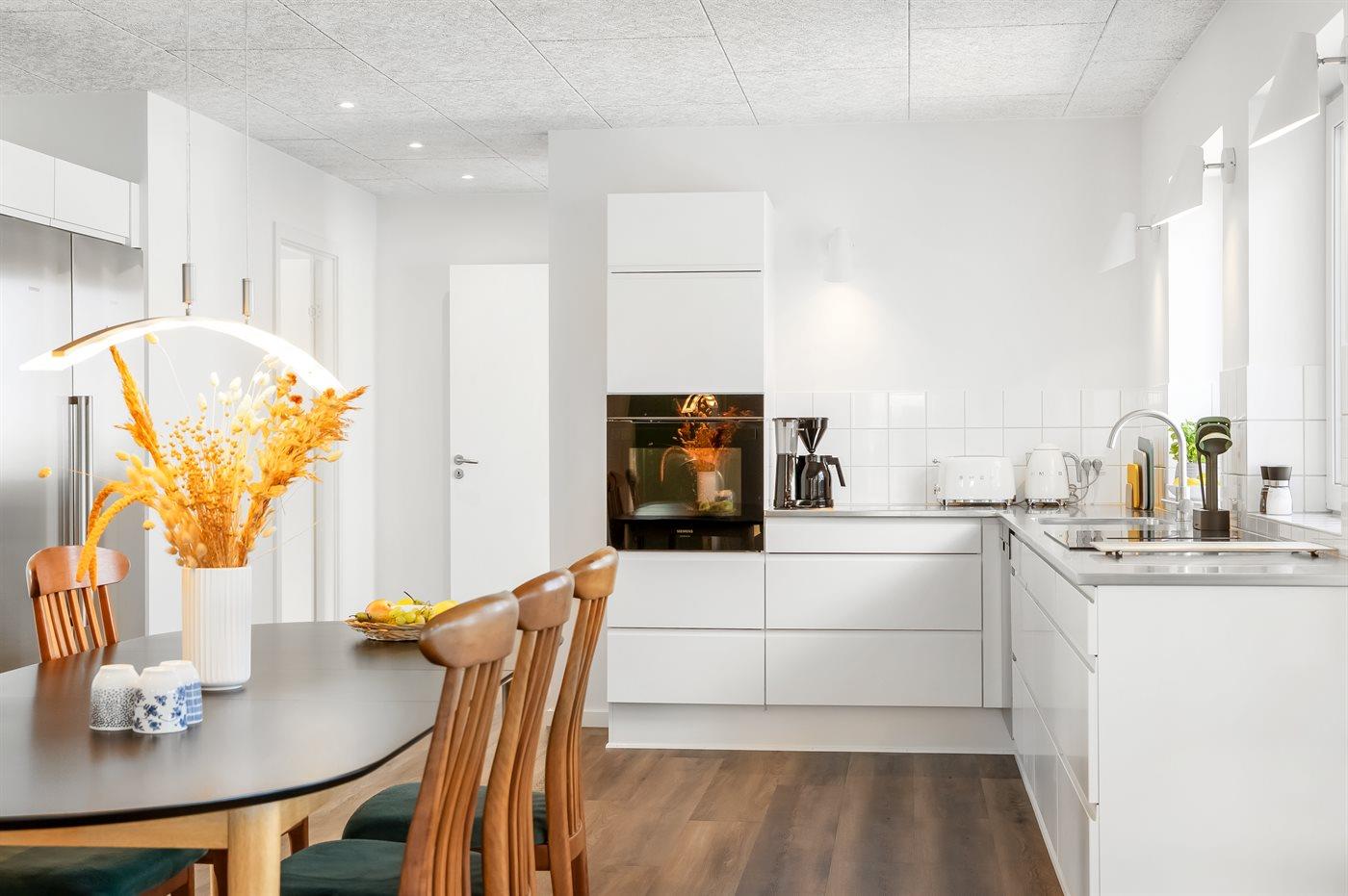 Køkkenet er udstyret med 1 køleskab. Der er 4 induktionskogeplader, varmluftovn, mikrobølgeovn samt opvaskemaskine.