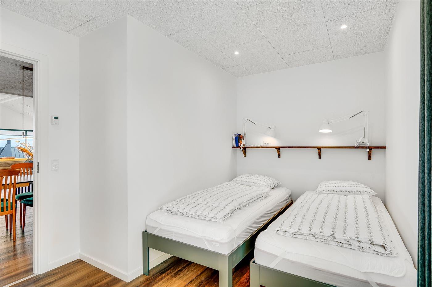 Der er i alt 3 soveværelser. Sovepladserne fordeler sig på: 4 sovepladser i dobbeltsenge. 2 sovepladser i enkeltsenge. 2 sovepladser i sovesofa (dobbelt). Derudover er der 1 stk. barneseng.