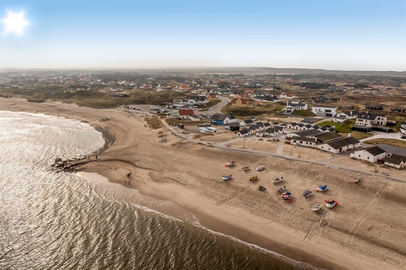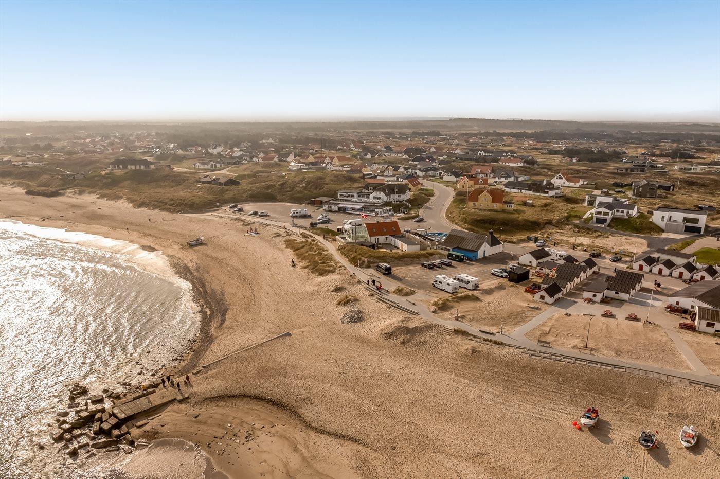 Ferieboligen er beliggende på en 800 m² stor klitgrund. Der er 75 m til havet. Nærmeste forretning er beliggende i en afstand af 1000 m. Til ferieboligen hører 75 m² terrasseareal. Heraf i alt 60 m² lukket terrasse. Udendørs sauna. Udendørs bruser. Grill til rådighed. Parkering ved ferieboligen.