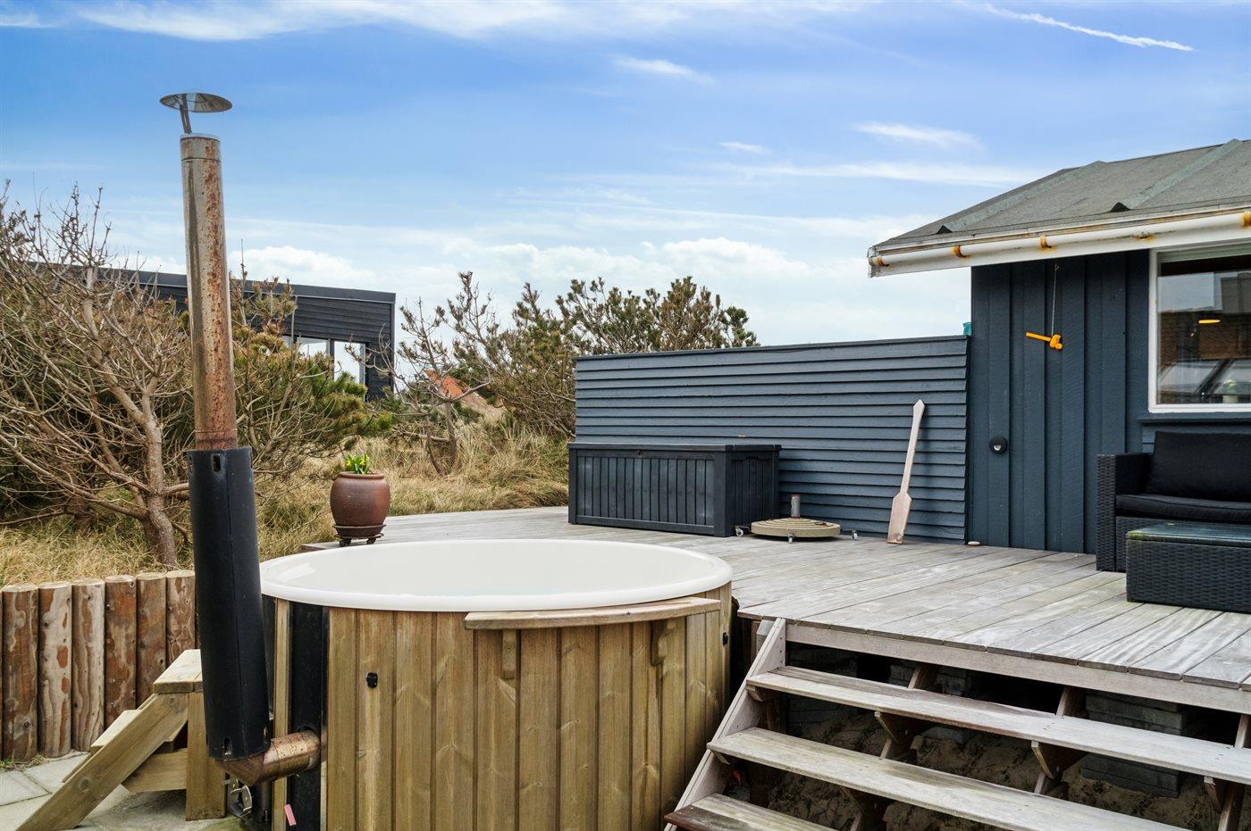 Der er mulighed for afslapning i det udendørs vildmarkskar til 5 personer.