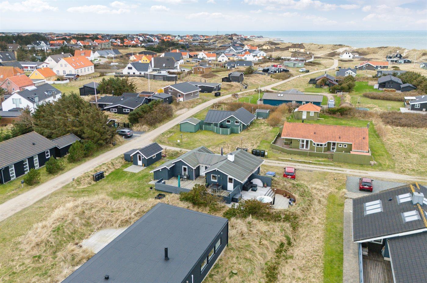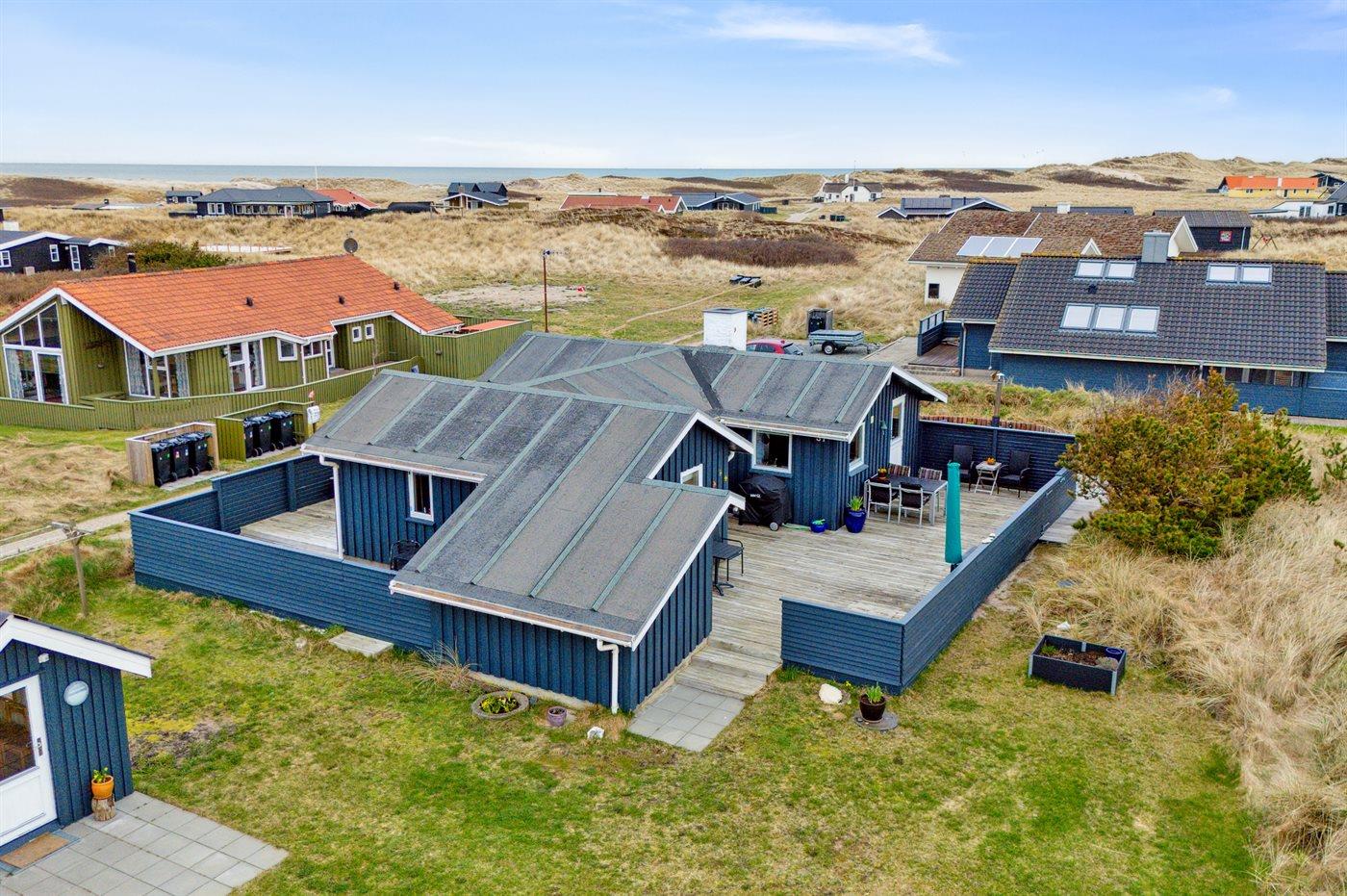 Ferieboligen er beliggende på en 780 m² stor klitgrund. Der er 200 m til havet. Nærmeste forretning er beliggende i en afstand af 200 m. Der er en golfbane i en afstand af 5000 m. Til ferieboligen hører 100 m² terrasseareal. Der er redskabsrum. Grill til rådighed. Parkering ved ferieboligen.