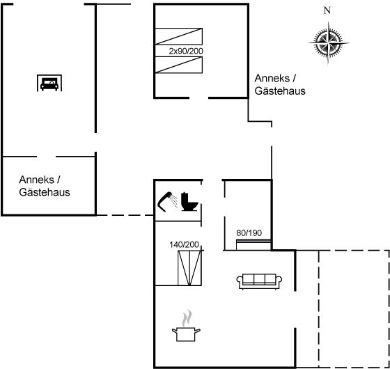 Der er i alt 3 soveværelser. Sovepladserne fordeler sig på: 2 sovepladser i dobbeltseng. 2 sovepladser i enkeltsenge. 2 sovepladser i køjeseng. 2 af disse sovepladser befinder sig i et anneks.