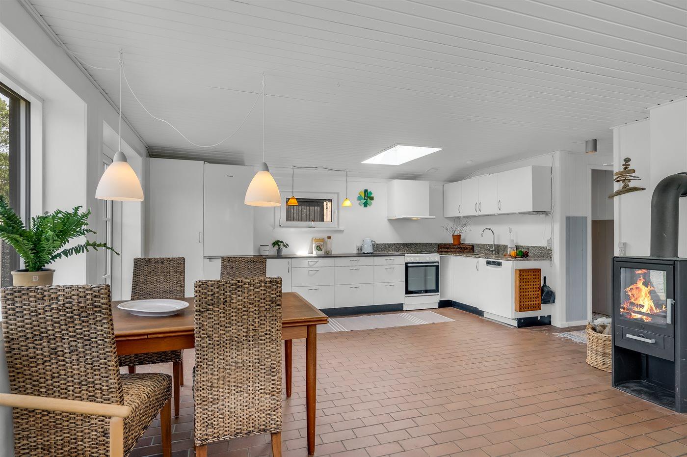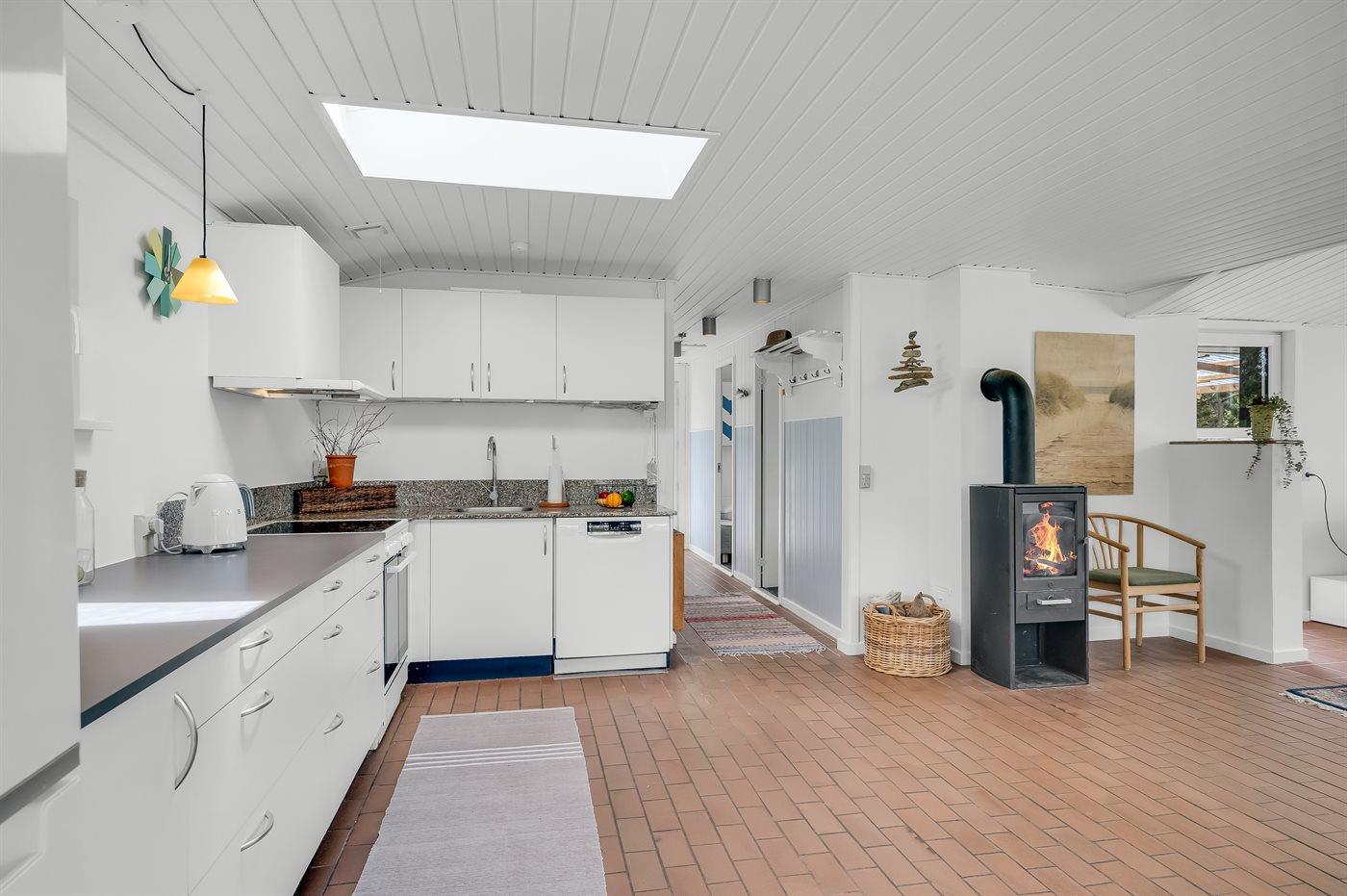 Køkkenet er udstyret med 1 køleskab. Der er 4 keramiske kogeplader, varmluftovn, mikrobølgeovn samt opvaskemaskine.