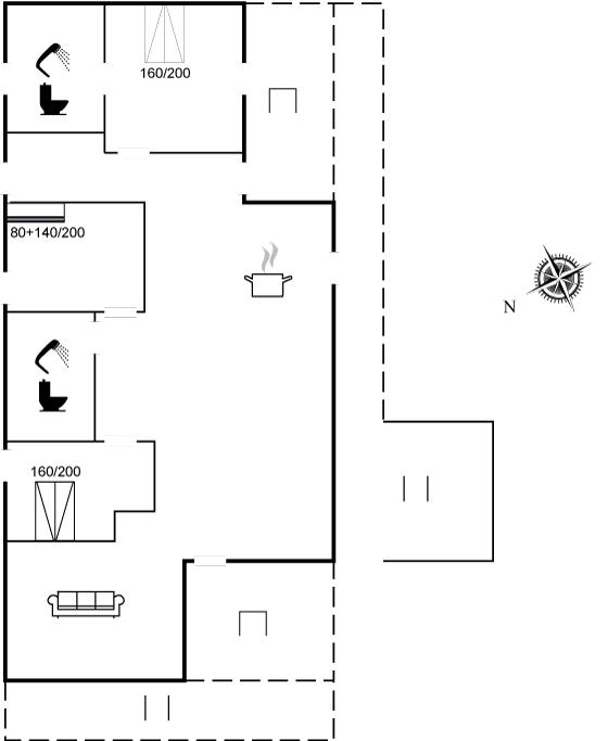 Der er i alt 3 soveværelser. Sovepladserne fordeler sig på: 4 sovepladser i dobbeltsenge. 2 sovepladser i køjeseng.