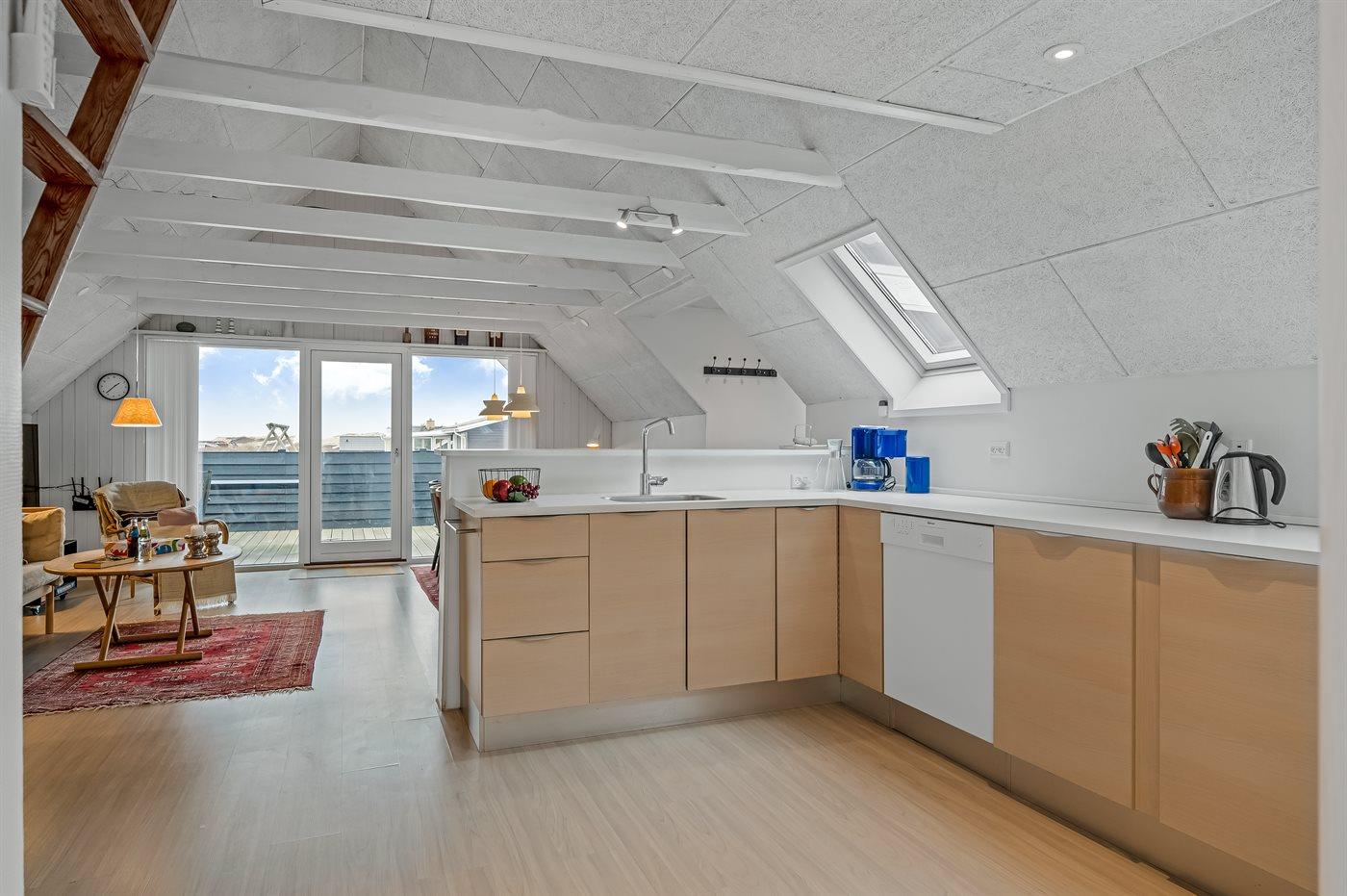 Køkkenet er udstyret med 1 køleskab. Der er 4 induktionskogeplader, varmluftovn, mikrobølgeovn samt opvaskemaskine.