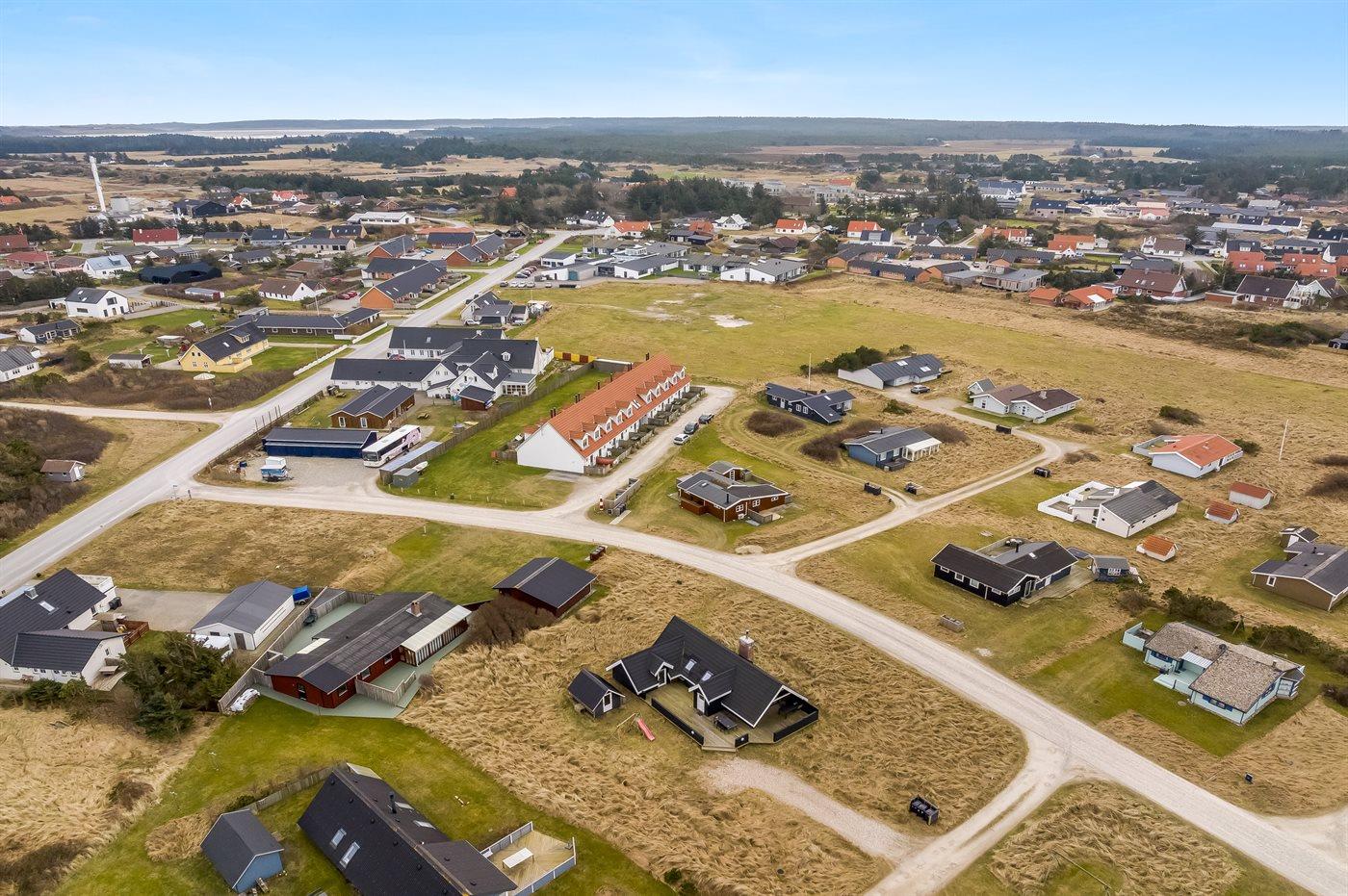 Ferieboligen er beliggende på en 1159 m² stor naturgrund. Der er 300 m til havet. Nærmeste forretning er beliggende i en afstand af 500 m. Til ferieboligen hører åbent terrasseareal. Desuden er der overdækket terrasse. Der er installeret stik til opladning af elbil. Type 2 stik. Med 11 kW ladeeffekt. Parkering ved ferieboligen.