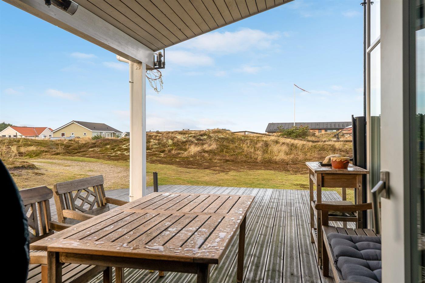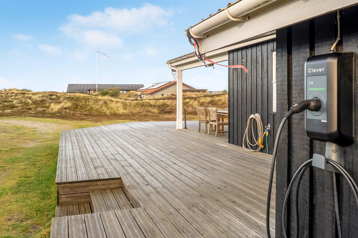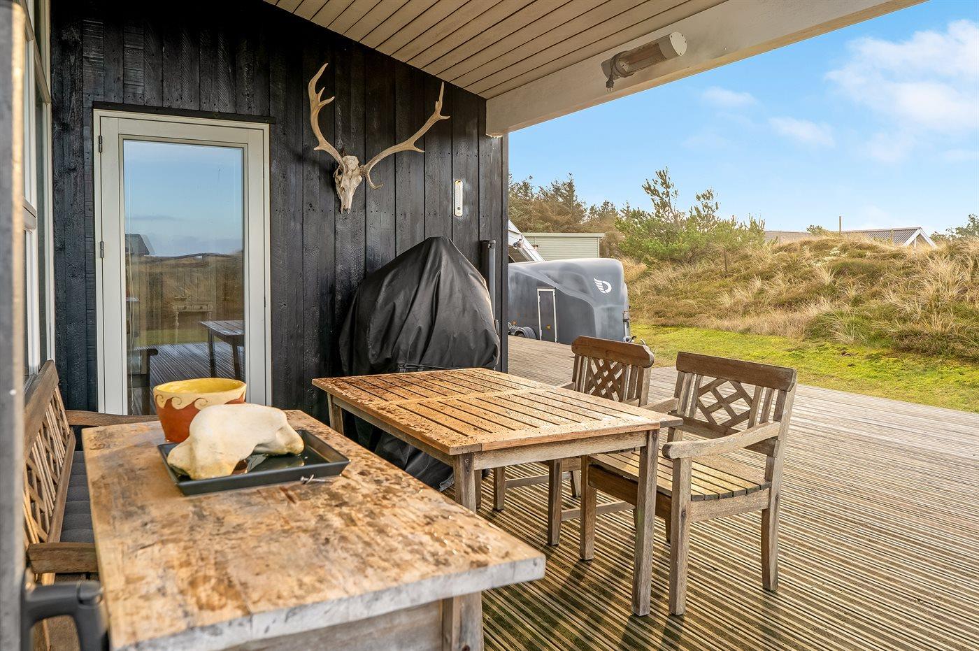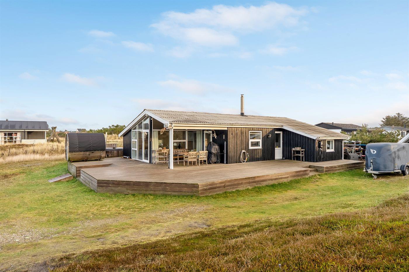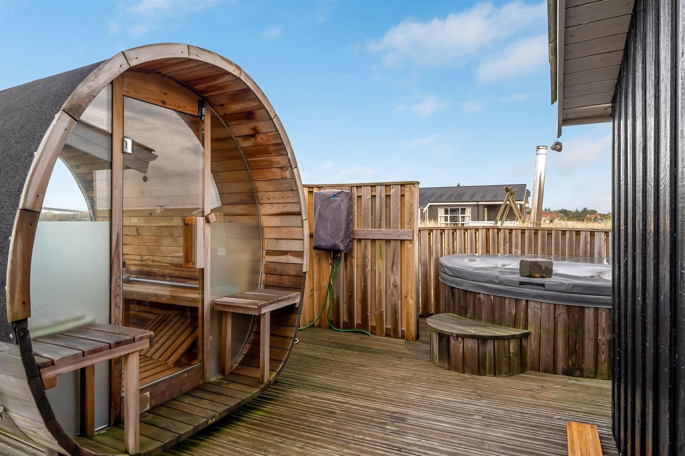 Til huset hører en dejlig og til dels overdækket terrasse, hvor der findes vildmarksbar og sauna.