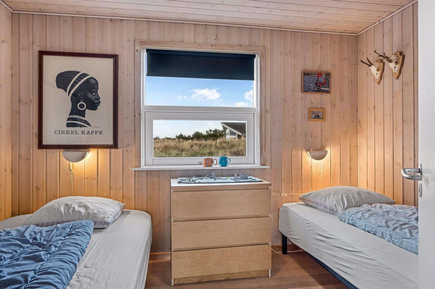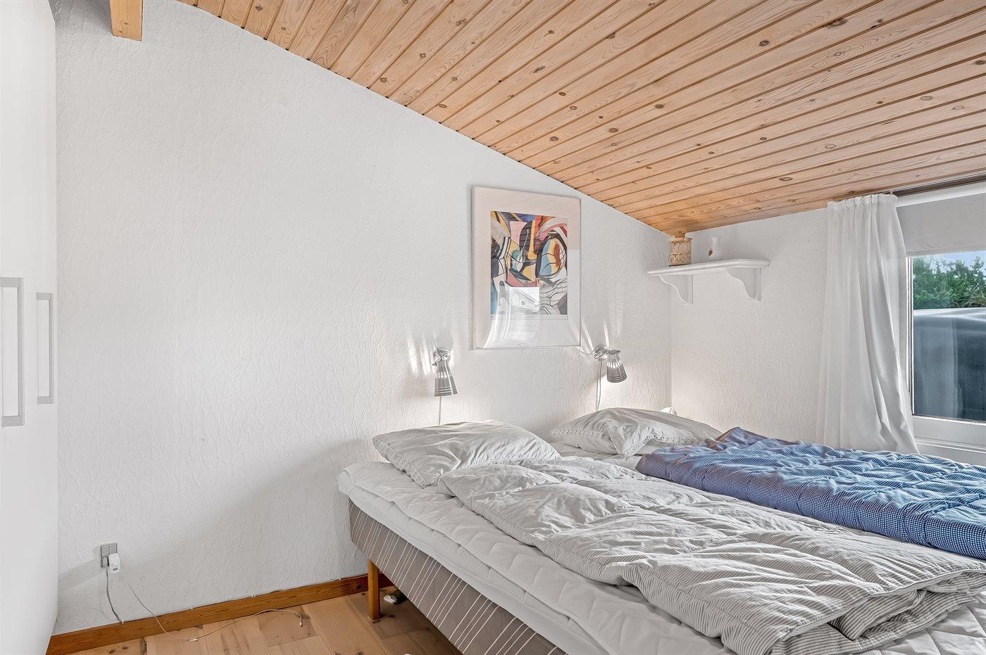 Der er i alt 3 soveværelser. Sovepladserne fordeler sig på: 4 sovepladser i dobbeltsenge. 2 sovepladser i enkeltsenge.