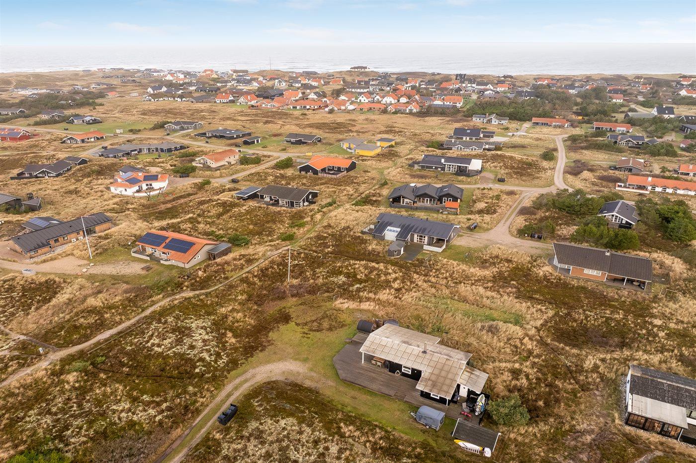 Ferieboligen er beliggende på en 3000 m² stor naturgrund. Grunden er indhegnet. Der er 500 m til havet. Nærmeste forretning er beliggende i en afstand af 1000 m. Der er en golfbane i en afstand af 5000 m. Til ferieboligen hører åbent terrasseareal. Desuden er der overdækket terrasse. Udendørs sauna. Grill til rådighed. Parkering ved ferieboligen.