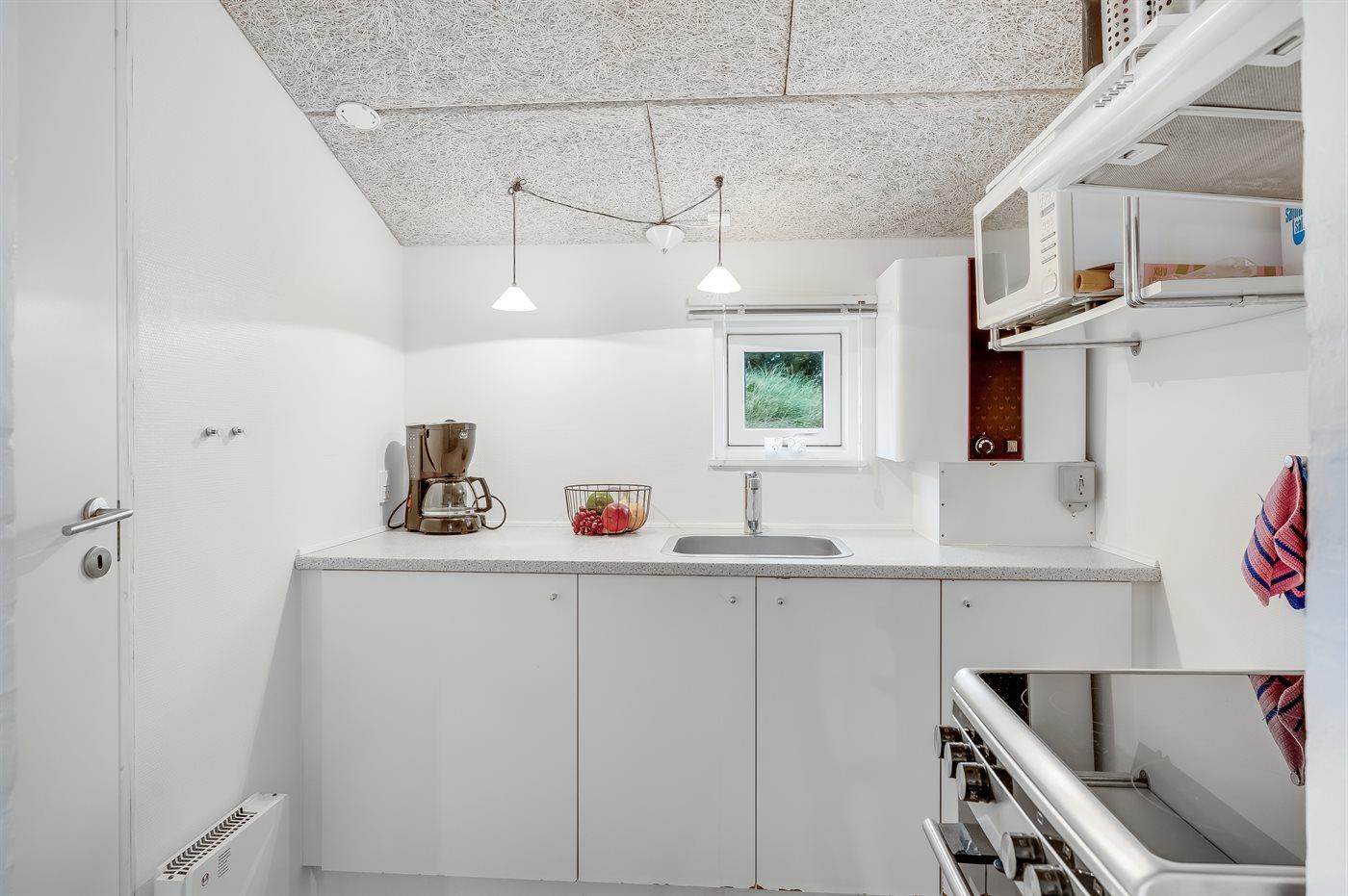 Køkkenet er udstyret med 1 køleskab. Der er 4 elkogeplader, varmluftovn.