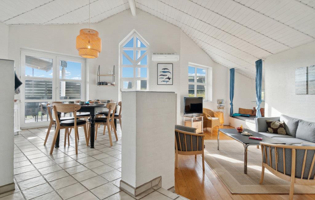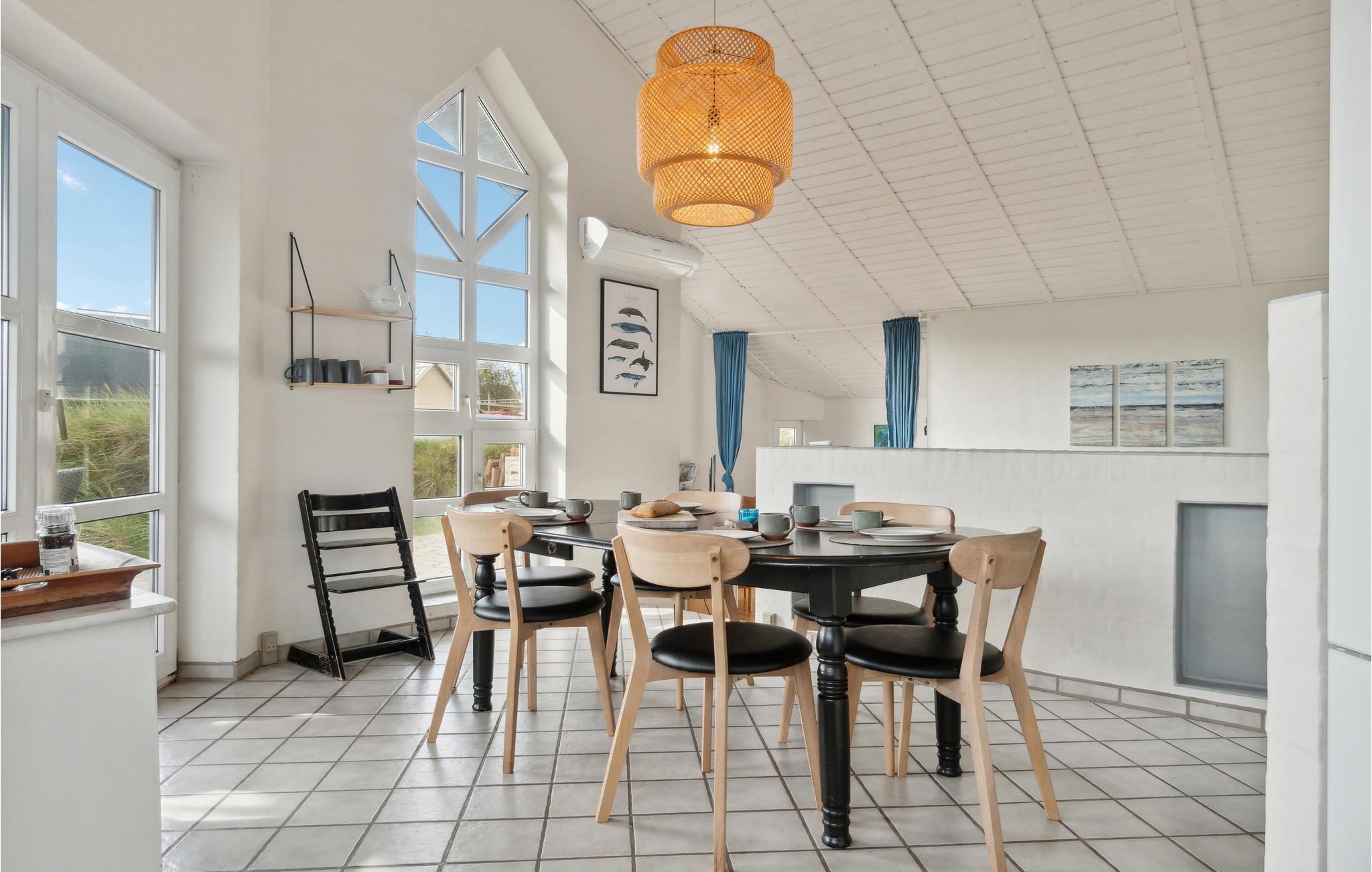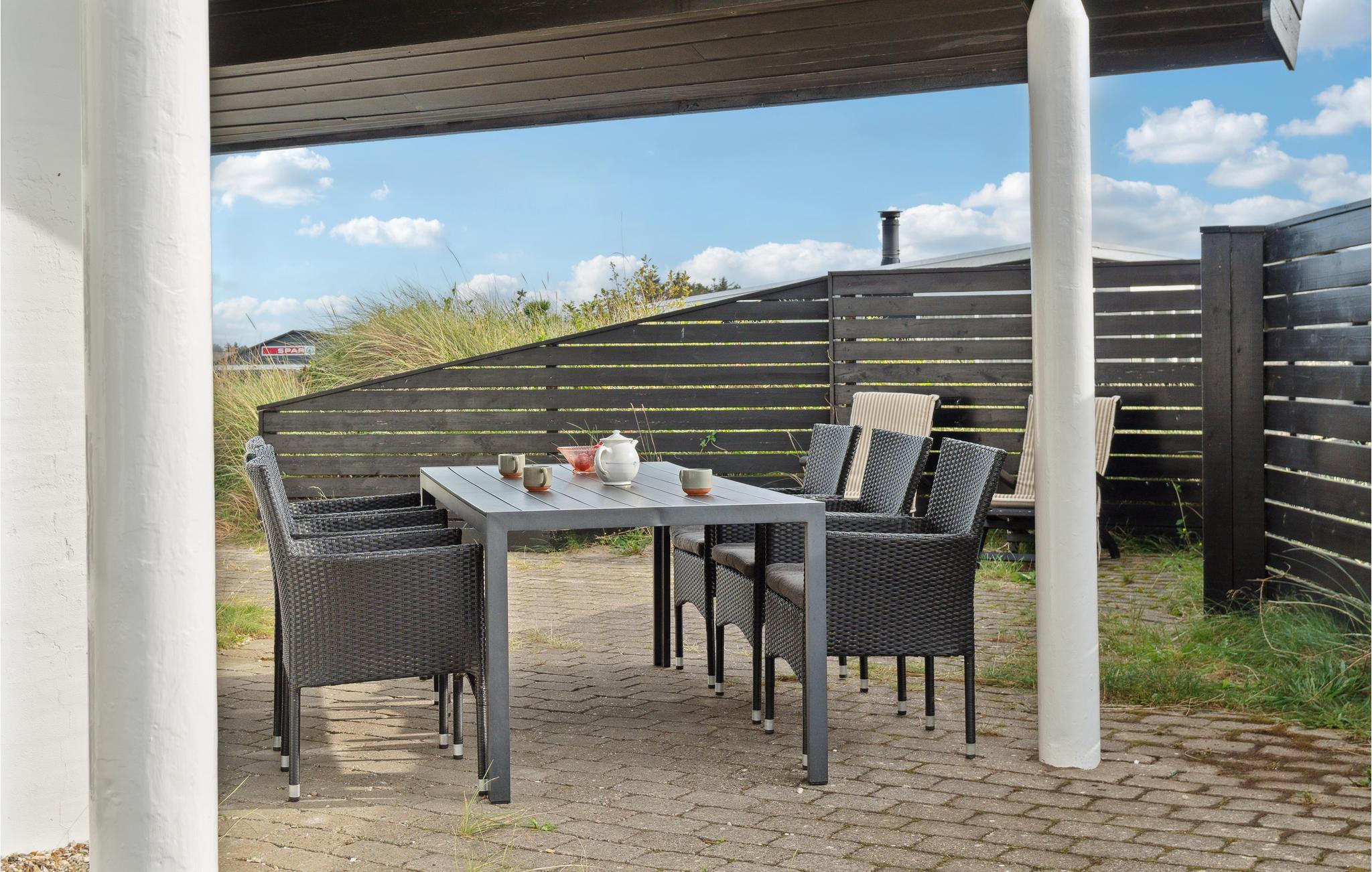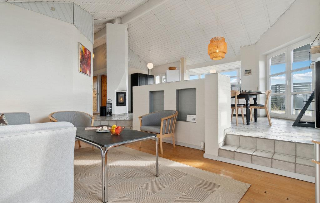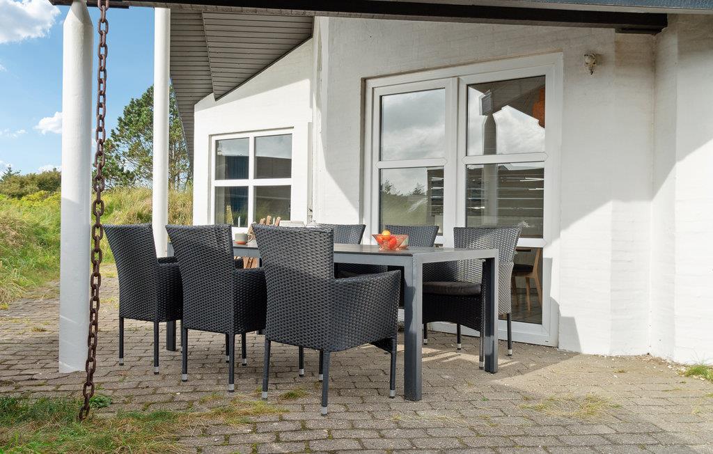 Velkommen til dette indbydende feriehus, som venter på jer midt i et idyllisk klitlandskab. De lyse rum og den komfortable indretning sørger for, at I kan slappe af fra første dag. Det åbne opholdsrum med hyggelig alkove bliver hurtigt centrum for fælles aktiviteter. Nyd den vidunderlige udsigt over klitterne og snak til langt ud på aftenen efter en tur i saunaen, mens flammerne danser i brændeovnen. Den store klitgrund giver masser af plads til leg og afslapning. Nyd solen på terrassen i læ for vinden og saml hele familien til et lækkert måltid fra grillen.