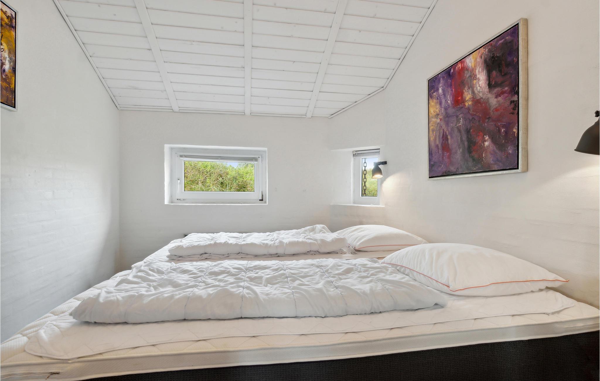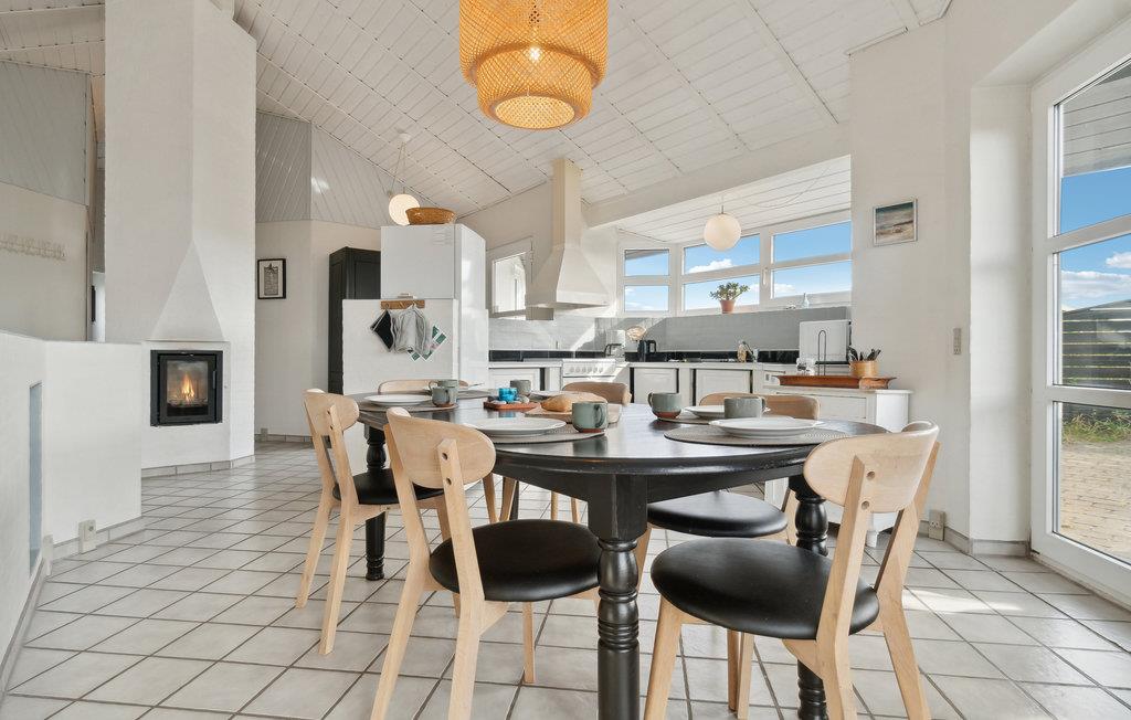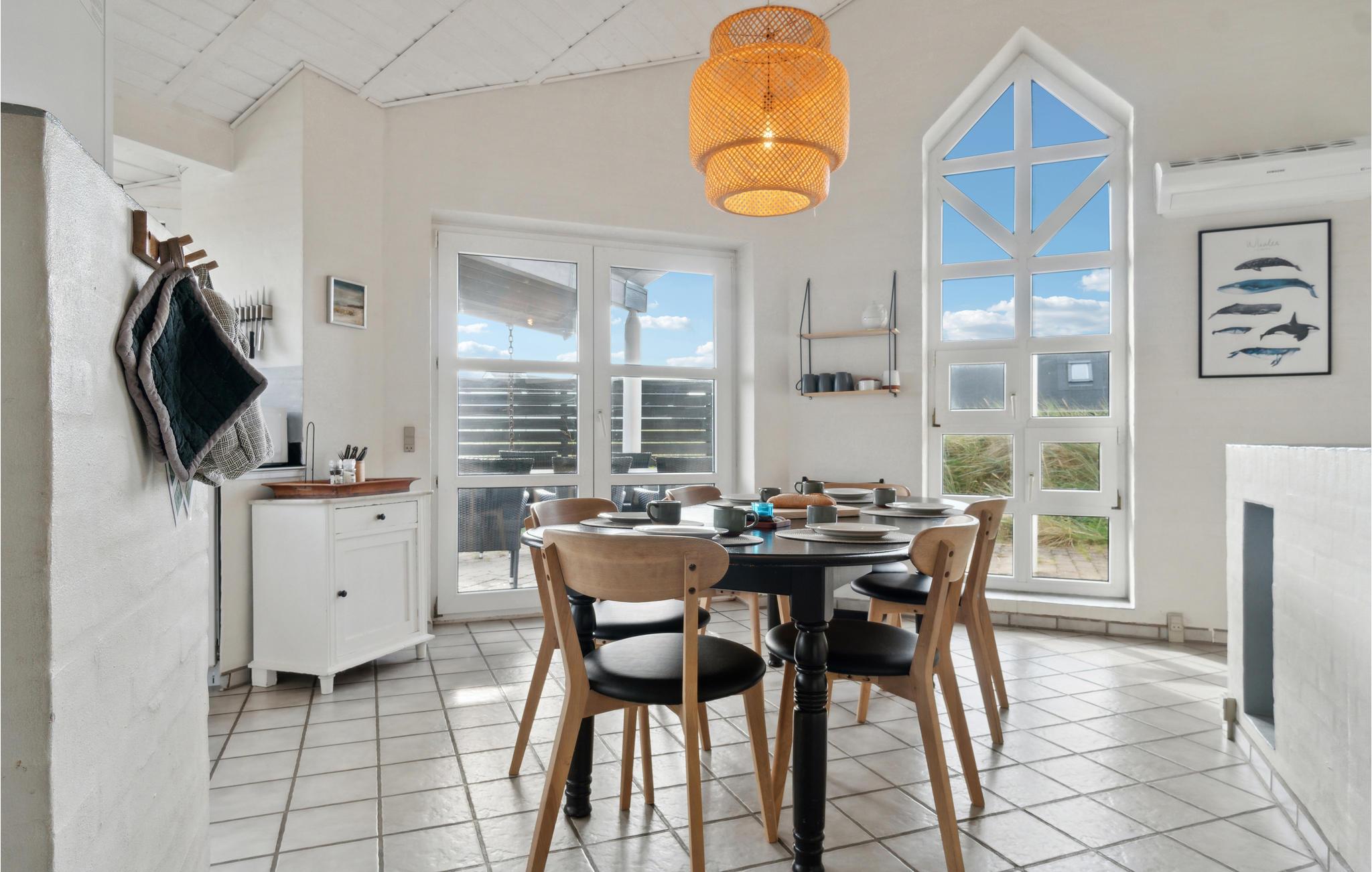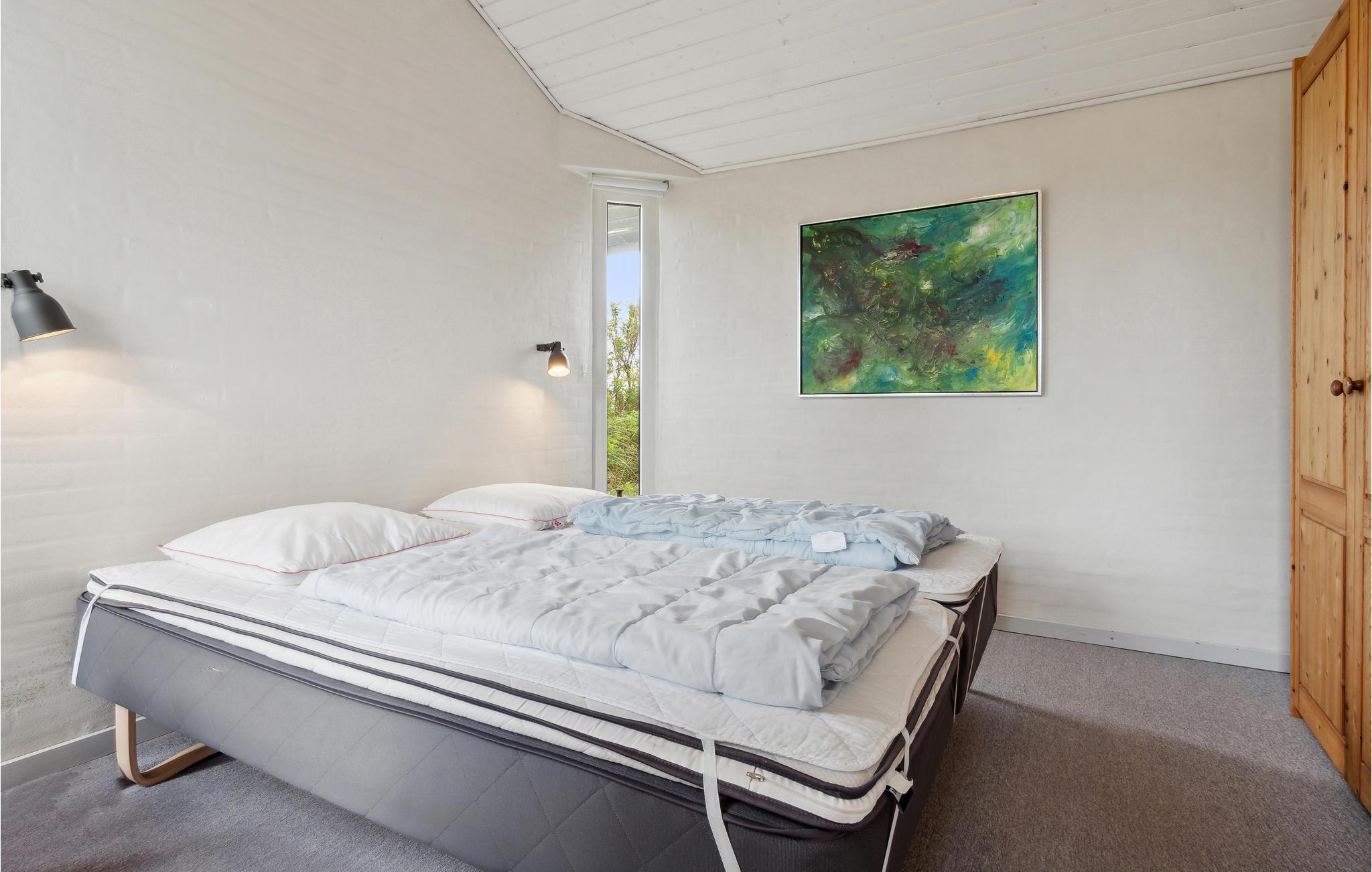 Velkommen til dette indbydende feriehus, som venter på jer midt i et idyllisk klitlandskab. De lyse rum og den komfortable indretning sørger for, at I kan slappe af fra første dag. Det åbne opholdsrum med hyggelig alkove bliver hurtigt centrum for fælles aktiviteter. Nyd den vidunderlige udsigt over klitterne og snak til langt ud på aftenen efter en tur i saunaen, mens flammerne danser i brændeovnen. Den store klitgrund giver masser af plads til leg og afslapning. Nyd solen på terrassen i læ for vinden og saml hele familien til et lækkert måltid fra grillen.