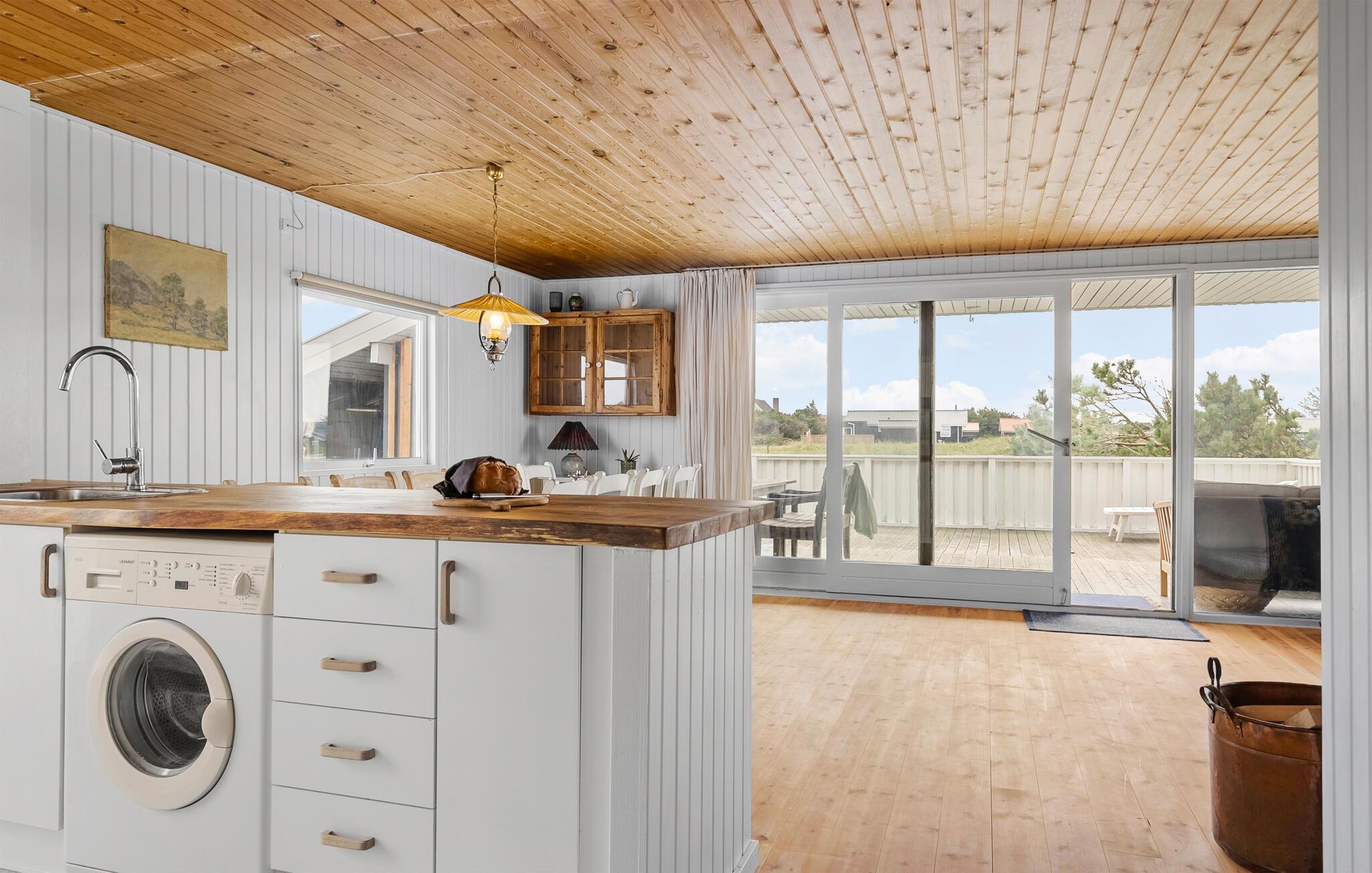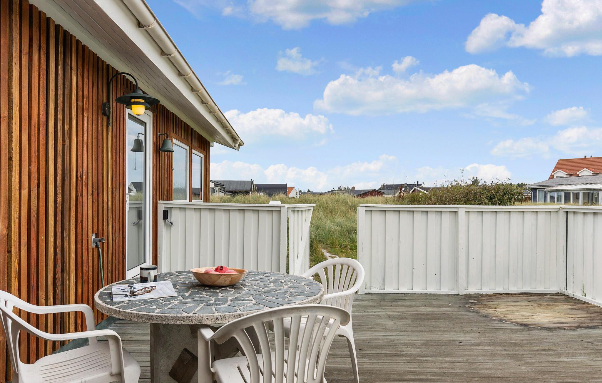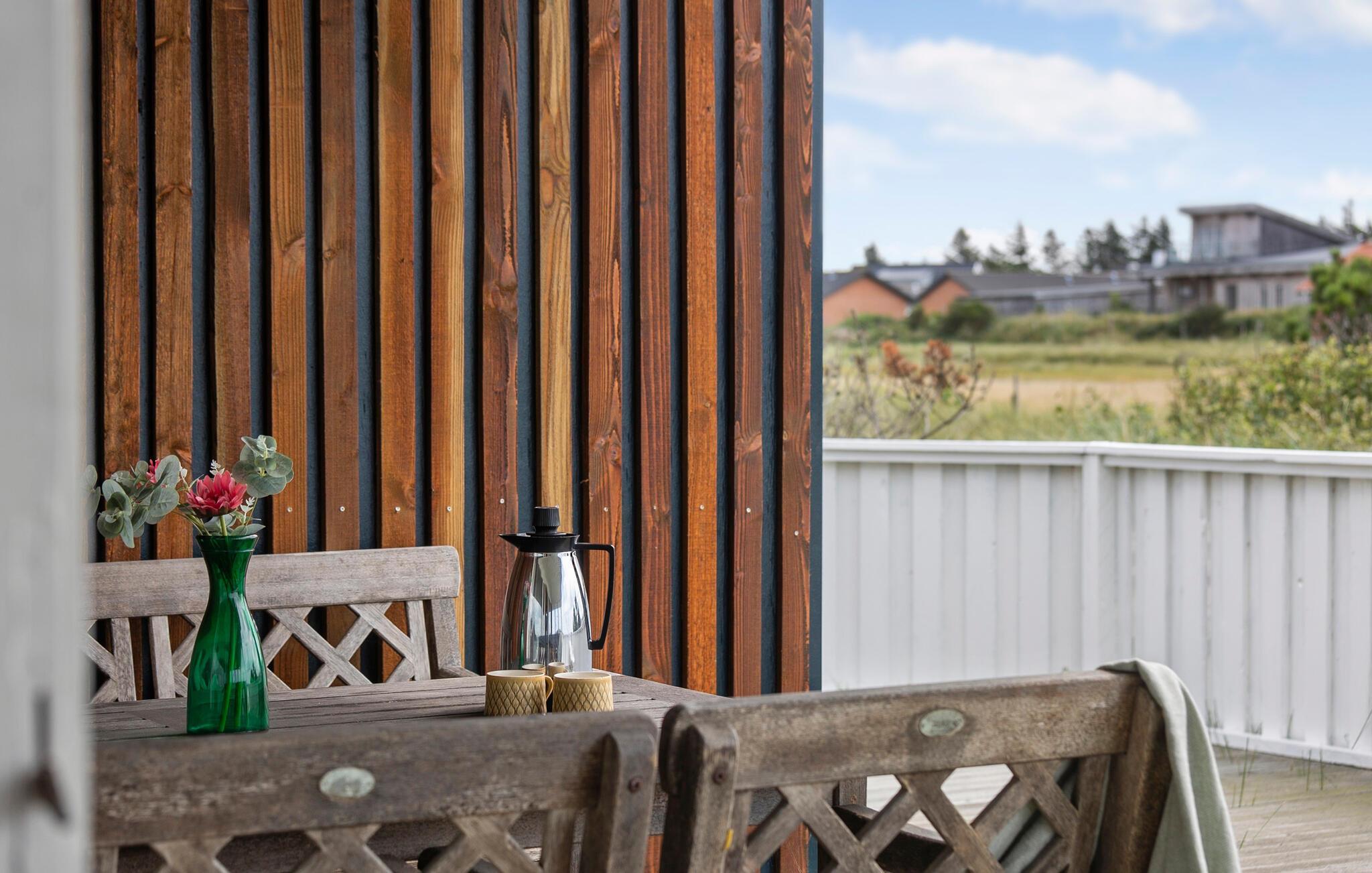 Tilbring solrige timer på den omkransende træterrasse, der byder på både beskyttede og åbne områder. Start dagen med morgenmad under åben himmel, læn jer tilbage på en liggestol, eller nyd en hyggelig middag i den friske luft. Udsigten til det omkringliggende klitlandskab skaber ro og afslapning.