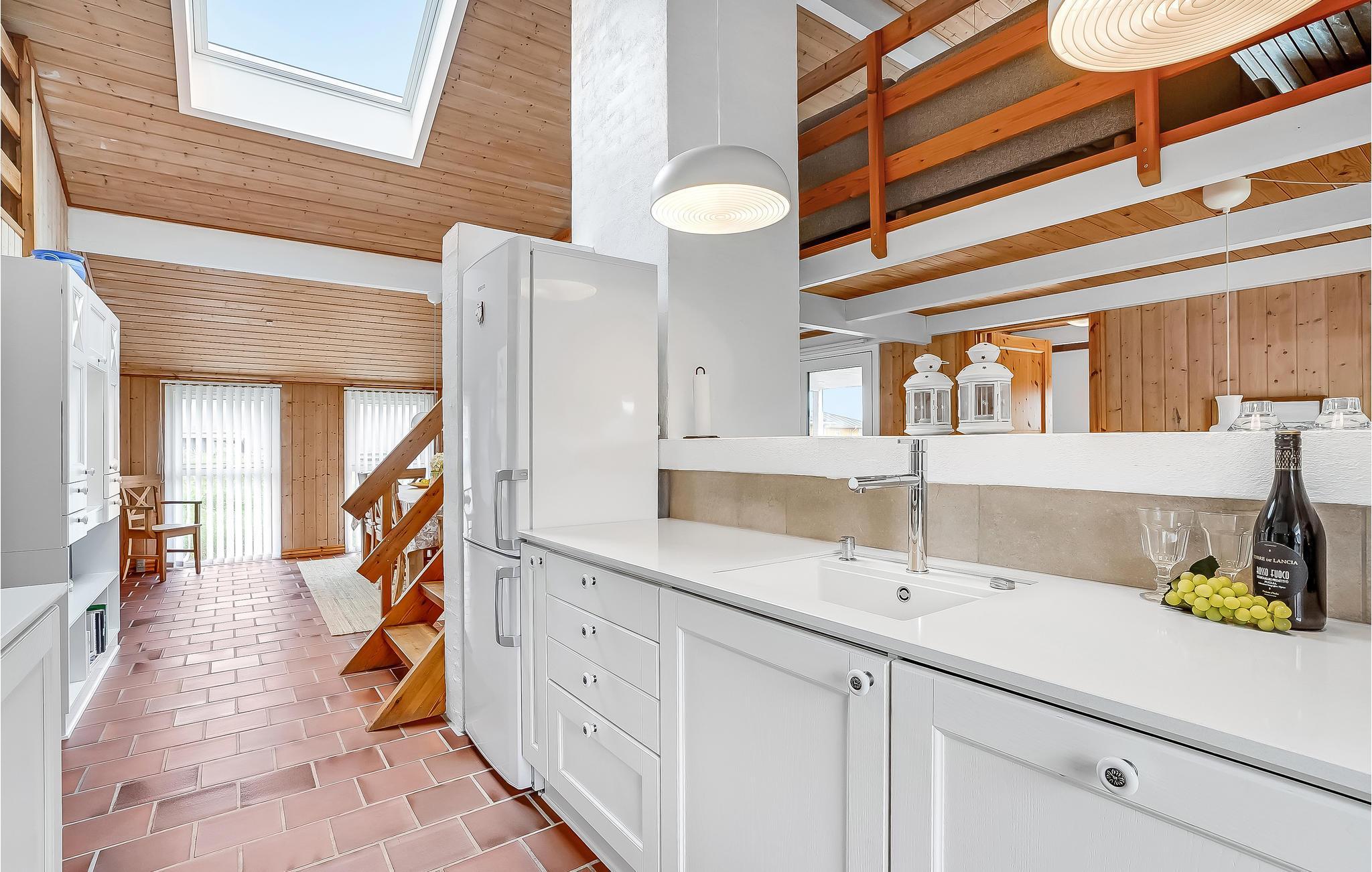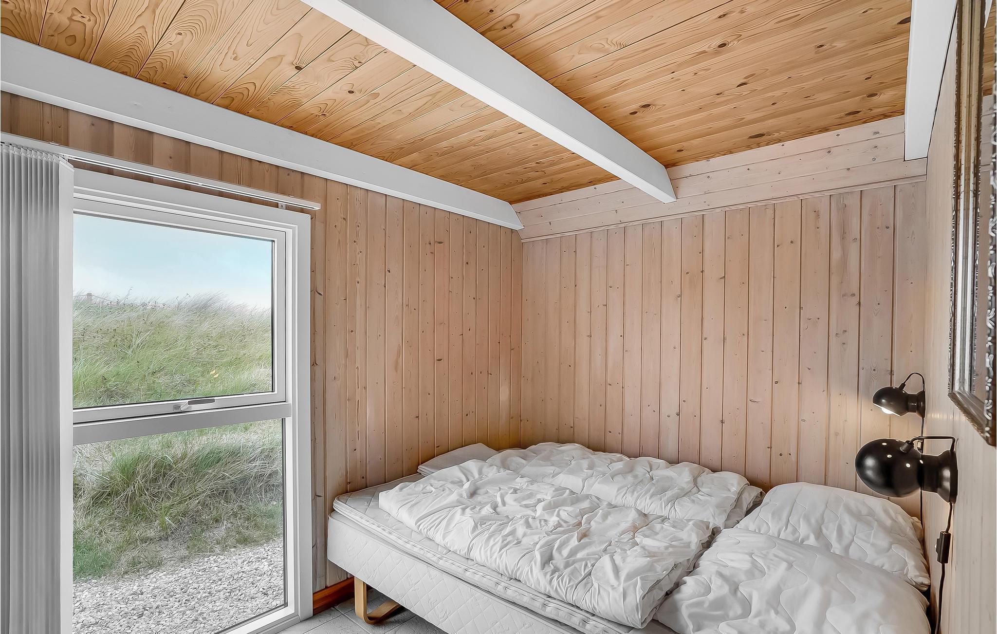 Enkelthed og funktionalitet kendetegner dette dejlige feriehus, der ligger i det gamle fiskerleje Klitmøller. Det lyse interiør og klinkegulvene står i flot kontrast til det mørke sofaarrangement, der er placeret ved brændeovnen i hyggekrogen. Der er et flot lysindfald til stuen og køkkenafdelingen, ligesom der er god plads overalt, også i de tiltalende værelser med komfortable senge. Et lækkert badeværelse med spabad, er kronen på værket. Huset har to skønne terrasser, der går i et med klitterne - her er skønt at være! En rigtig dejlig ramme om familiens ferie.