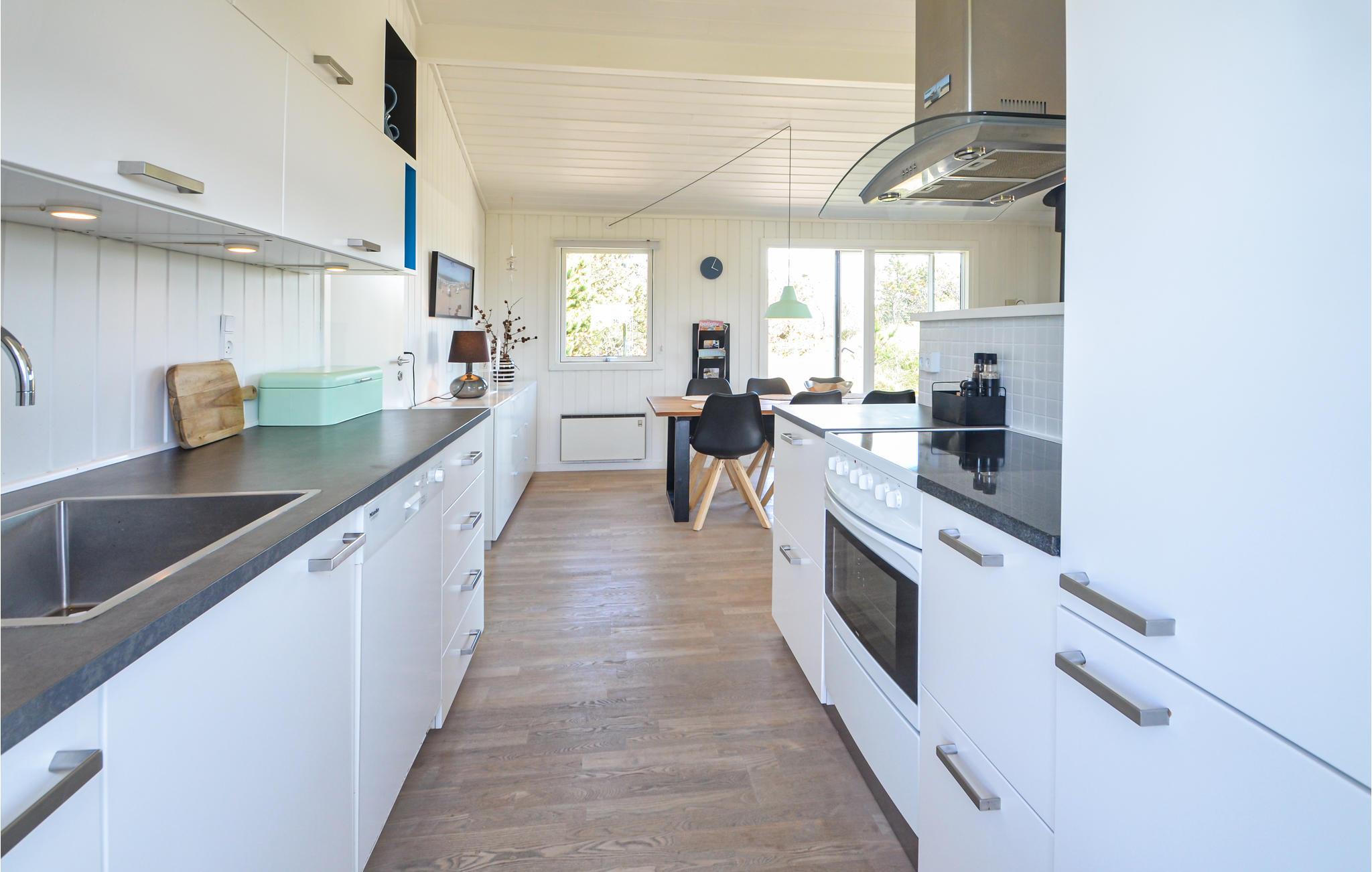 Bo i dette pænt renoverede feriehus, beliggende på en naturskøn klitgrund. Feriehuset ligger lidt nede bag klitten således, at I uforstyrret kan nyde den stille og rolige atmosfære på den overdækkede terrasse, mens I ånder den friske havluft. Tag til byen Thisted, hvor der er et rigt kulturliv med musik og forskellige opvisninger, eller I kan tage i biografen, hvis vejret skulle drille en af dagene. Områdets store attraktion er det store Vesterhav, hvis salte bølger altid brydes mod den brede strand, uanset hvad der ellers sker. Her kan I se de små fiskerbåde blive trukket op på land og købe frisk fisk over rælingen fra fiskeren, der selv har fanget den.