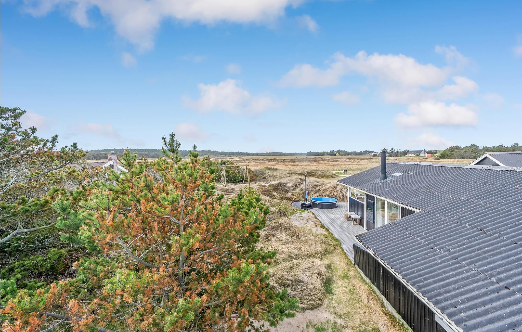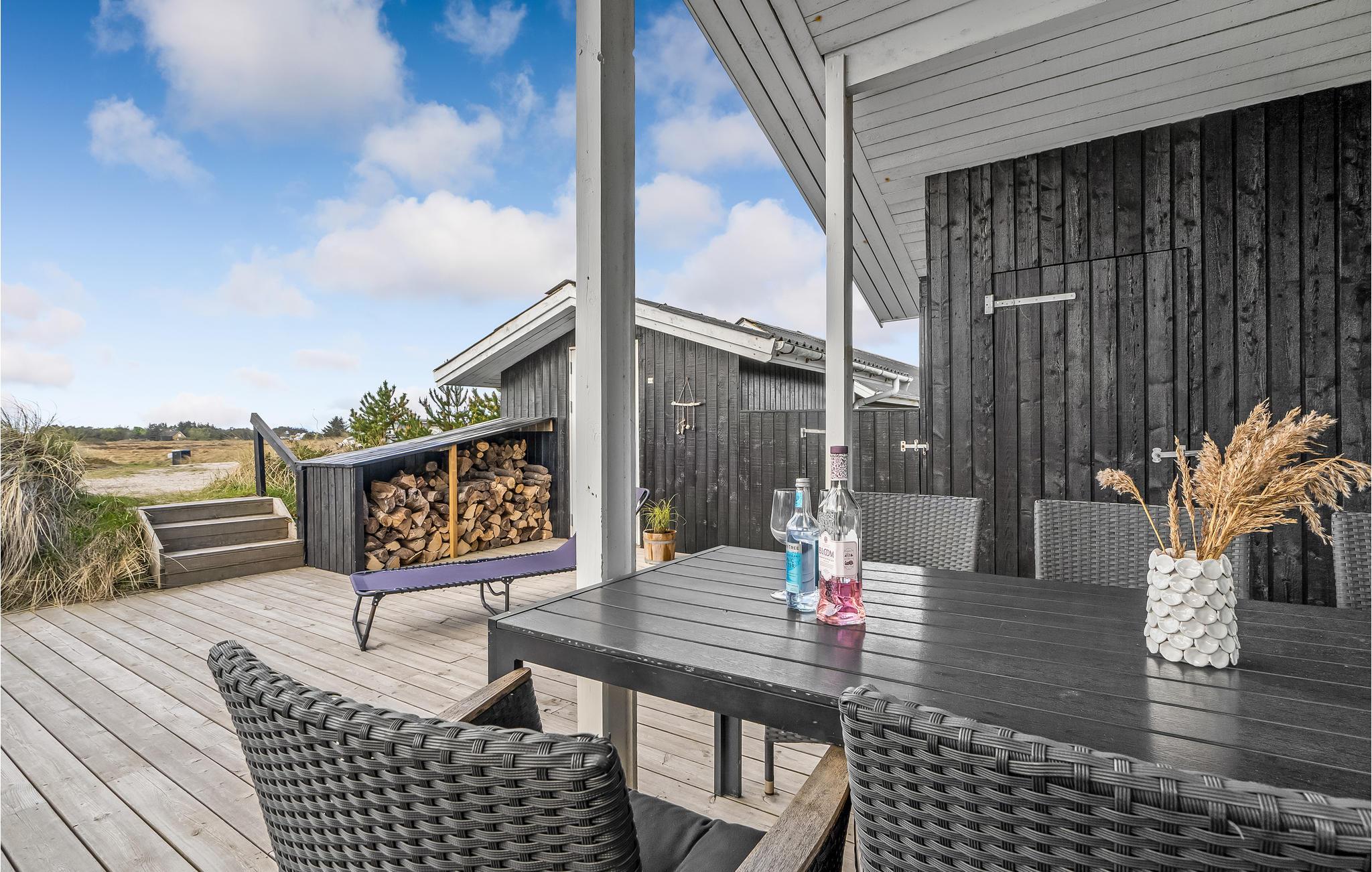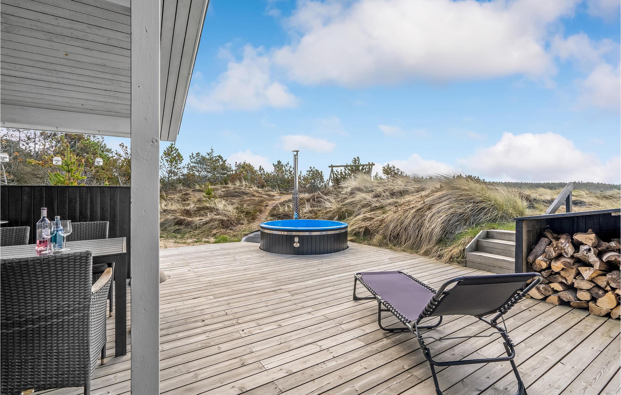 Nyd et hyggeligt, renoveret feriehus på klitgrund nær Vesterhavet med overdækket terrasse og vildmarksbad.