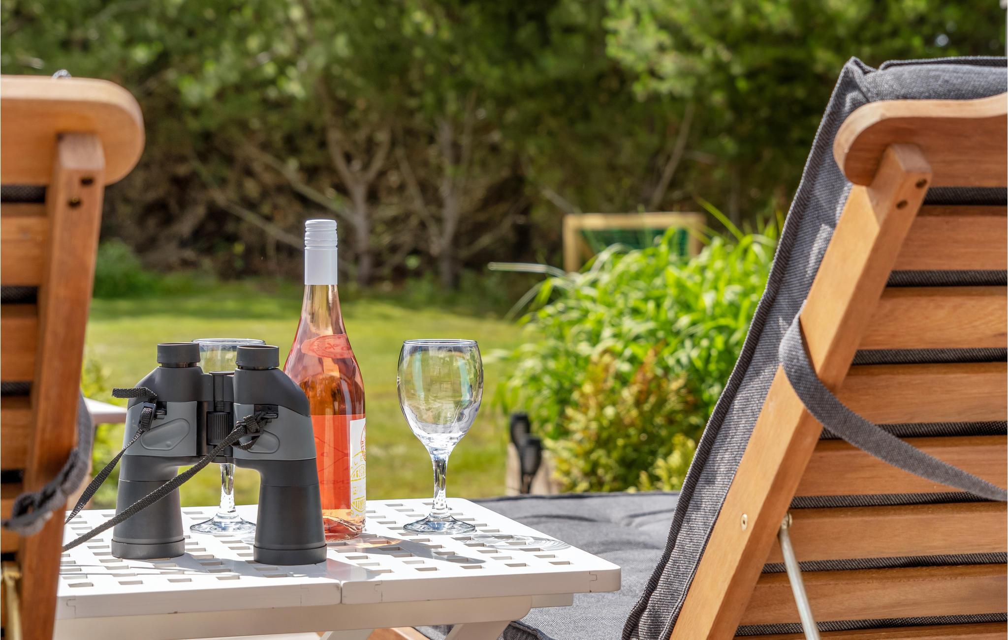Nyd morgenkaffen på terrassen, og hvis I er ganske stille, kan I være heldige at opleve det vilde dyreliv på helt tæt hold. I bor nemlig lige op ad et stort naturareal, hvor bl.a. dådyr ynder at holde til. På terrassen finder I både liggestole og et loungeområde. Her kan I nyde en kold forfriskning i skyggen om eftermiddagen, og hvile benene efter formiddagens cykel- eller gåtur. Når I vender hjem efter en aktiv dag, kan I hurtigt skylle jer under badeværelsets bruser, som der er direkte adgang til udefra. I havehuset kan I nyde naturen i alt slags vejr, eller forlænge sommeraftenerne når duggen begynder at falde.