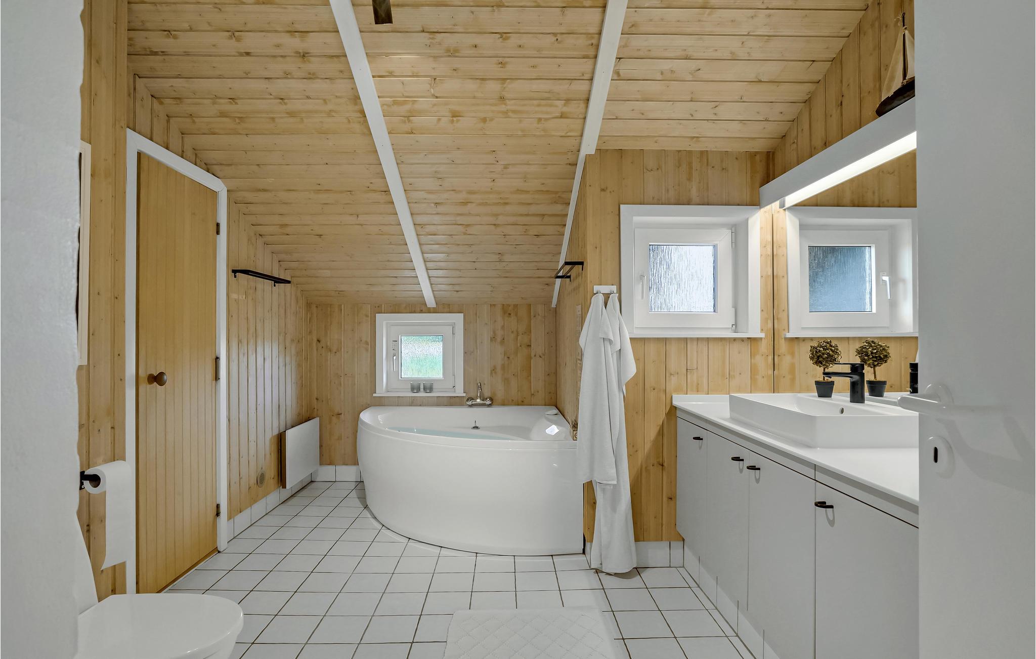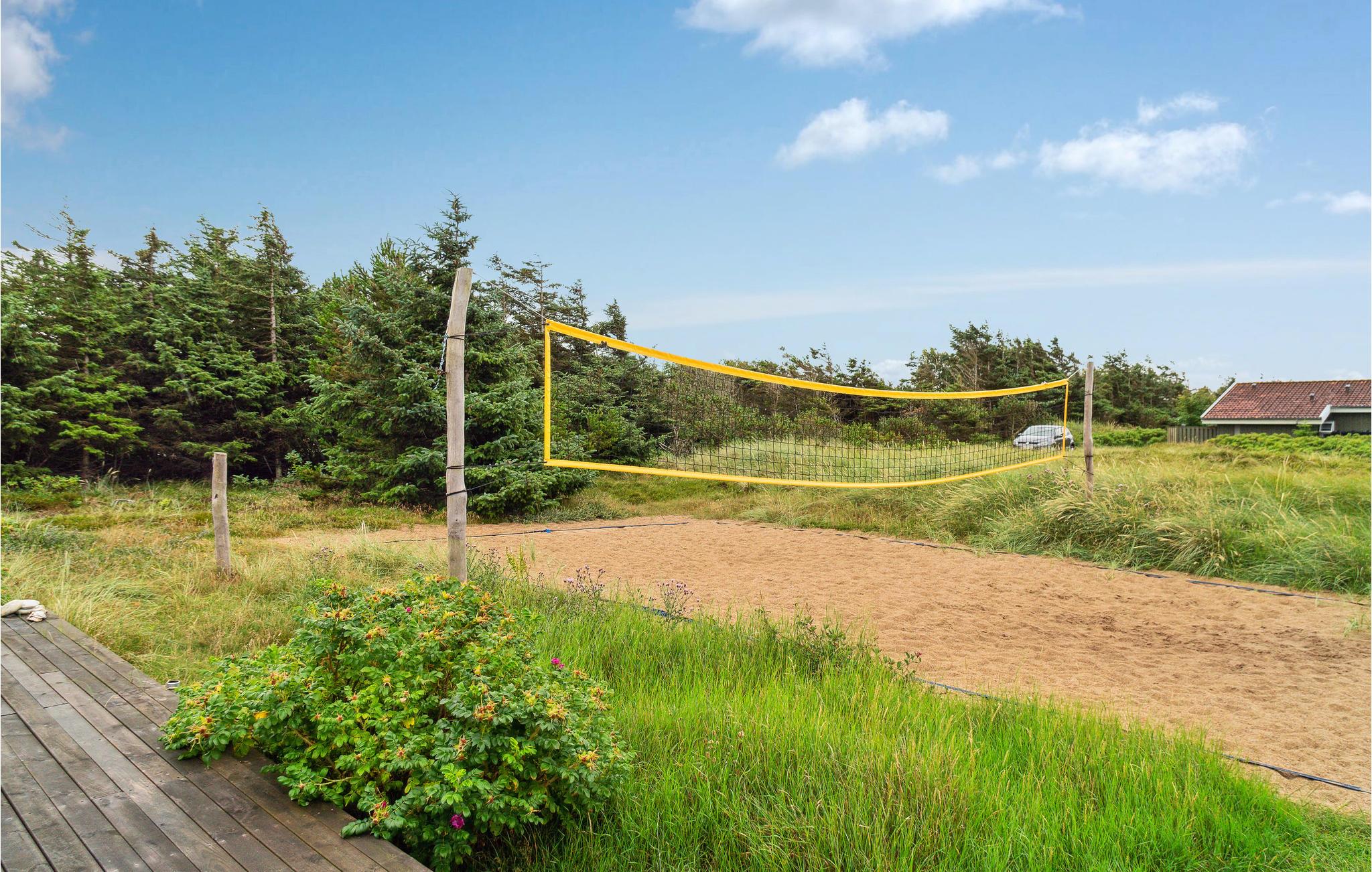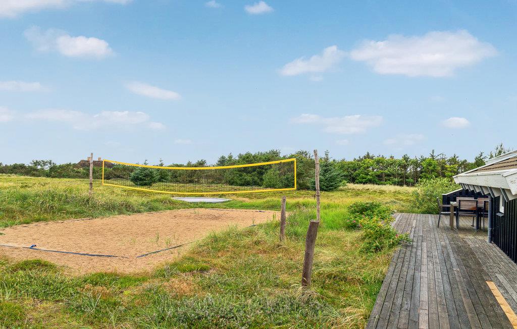 Rummeligt sommerhus nær Klitmøller Strand med spabad, sauna og beachvolleybane på en rolig klitgrund.
