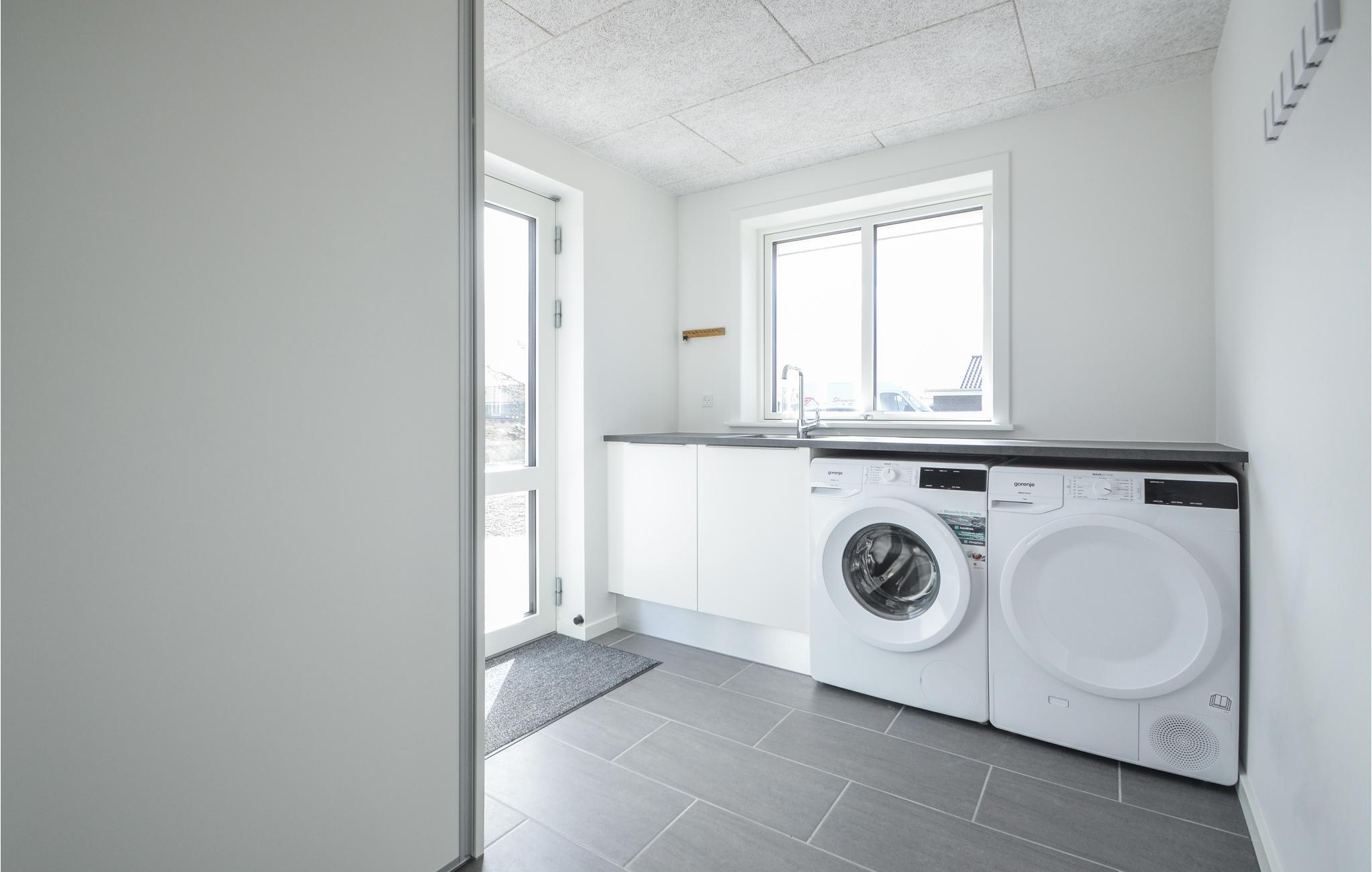 De moderne faciliteter gør at I rigtig kan nyde jeres ferie, i køkkenet er der kaffemaskine og opvaskemaskine, og huset har også et praktisk bryggers med vaskemaskine og tørretumbler. Desuden er der gulvvarme i hele huset.