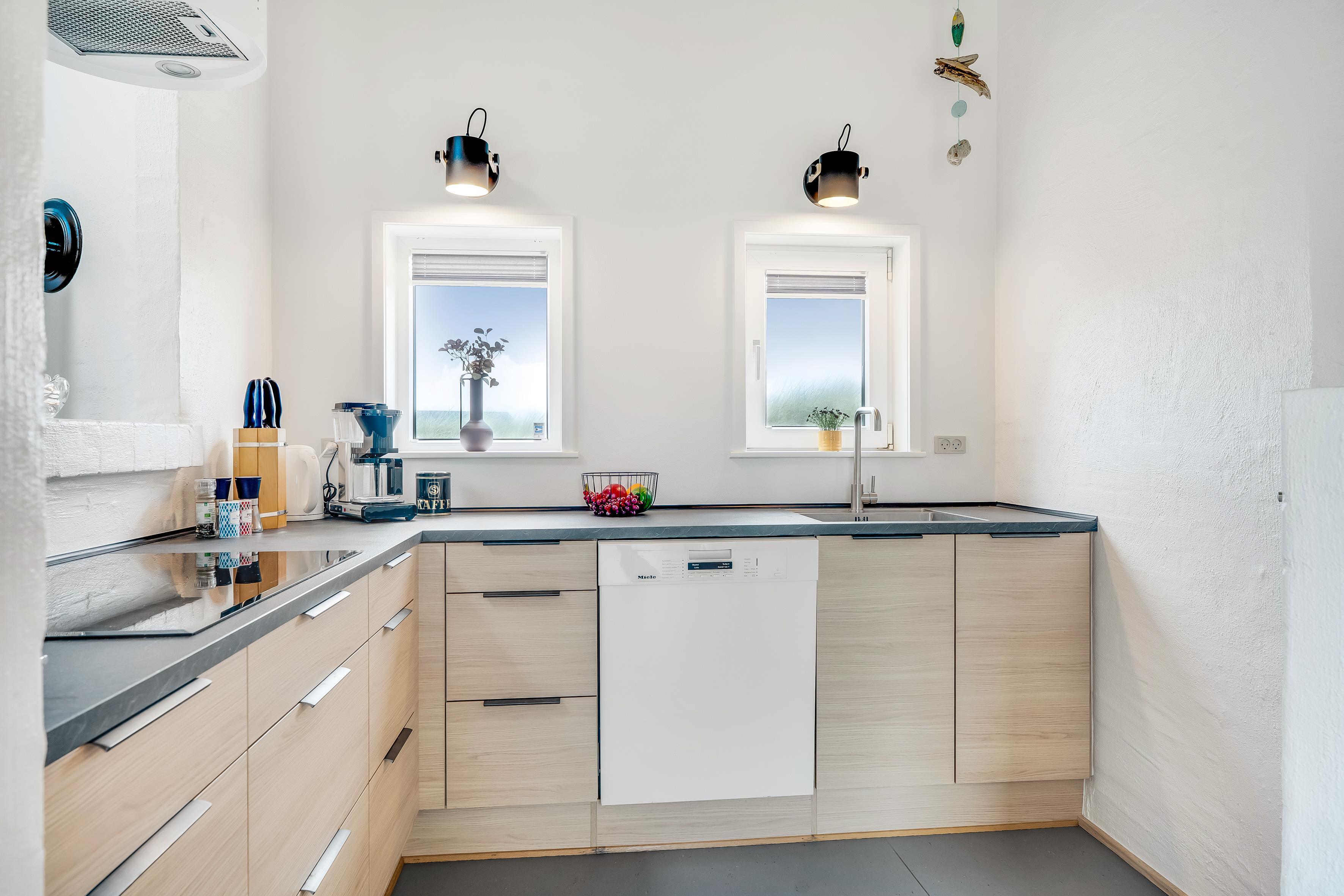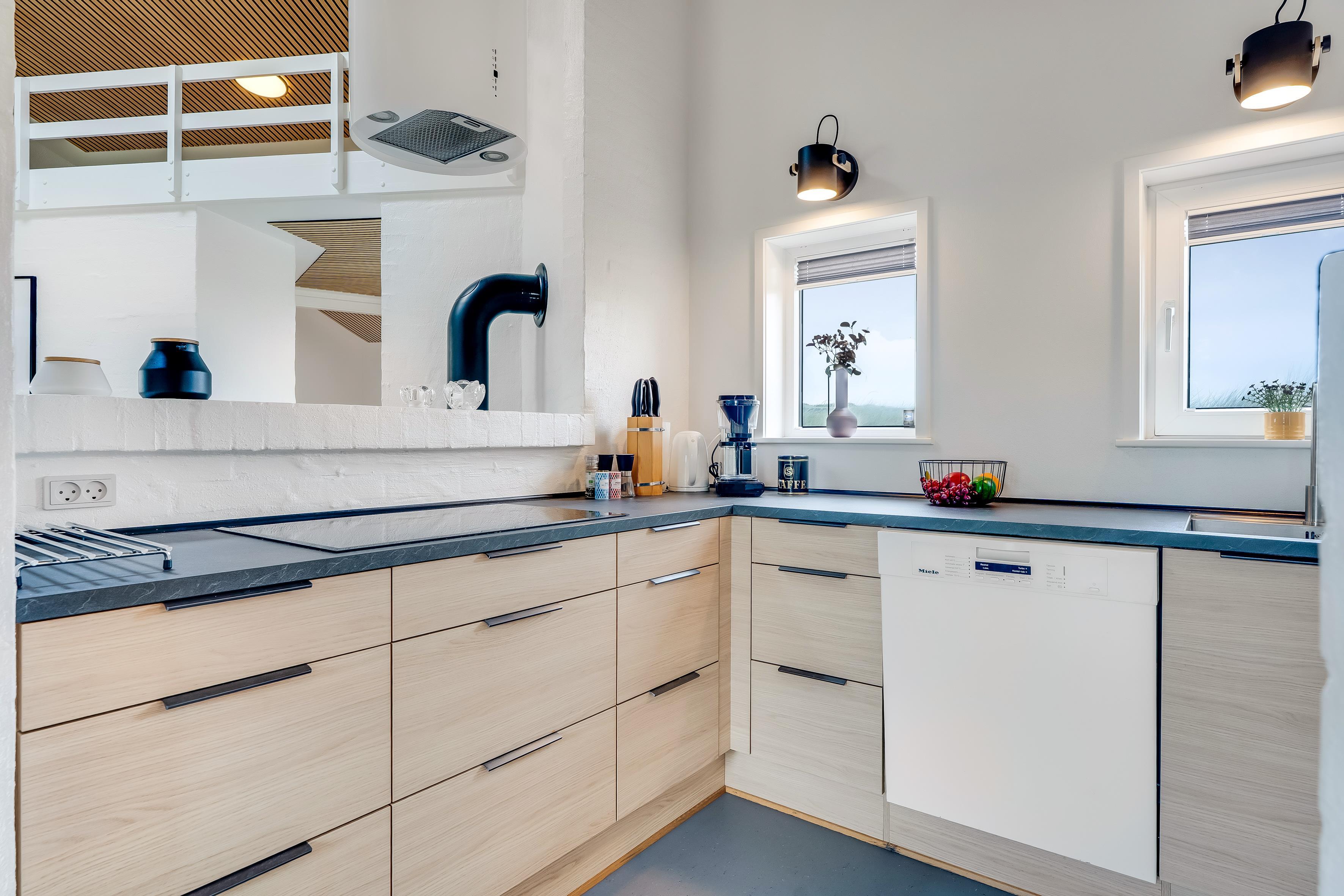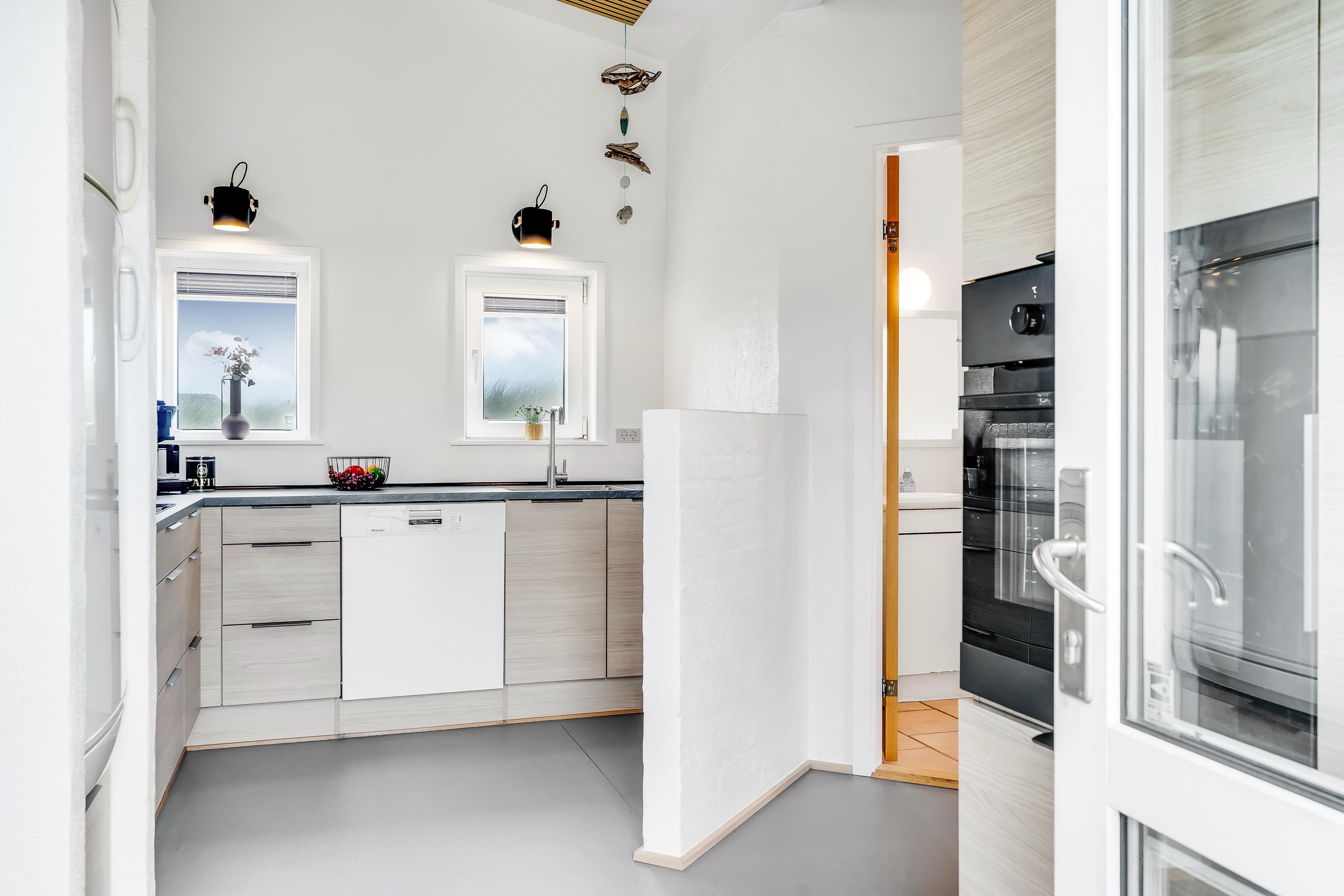 For dem, der elsker at lave mad, vil køkkenet være et sandt paradis. Det er udstyret med moderne apparater såsom induktionskomfur, ovn, mikrobølgeovn og tørretumbler. Der er også et køleskab med fryser på 40 liter, så du altid kan have friske råvarer og snacks ved hånden. Udenfor kan du tage glæde af en grill, perfekt til hyggelige sommeraftener med familie og venner på terrassen.