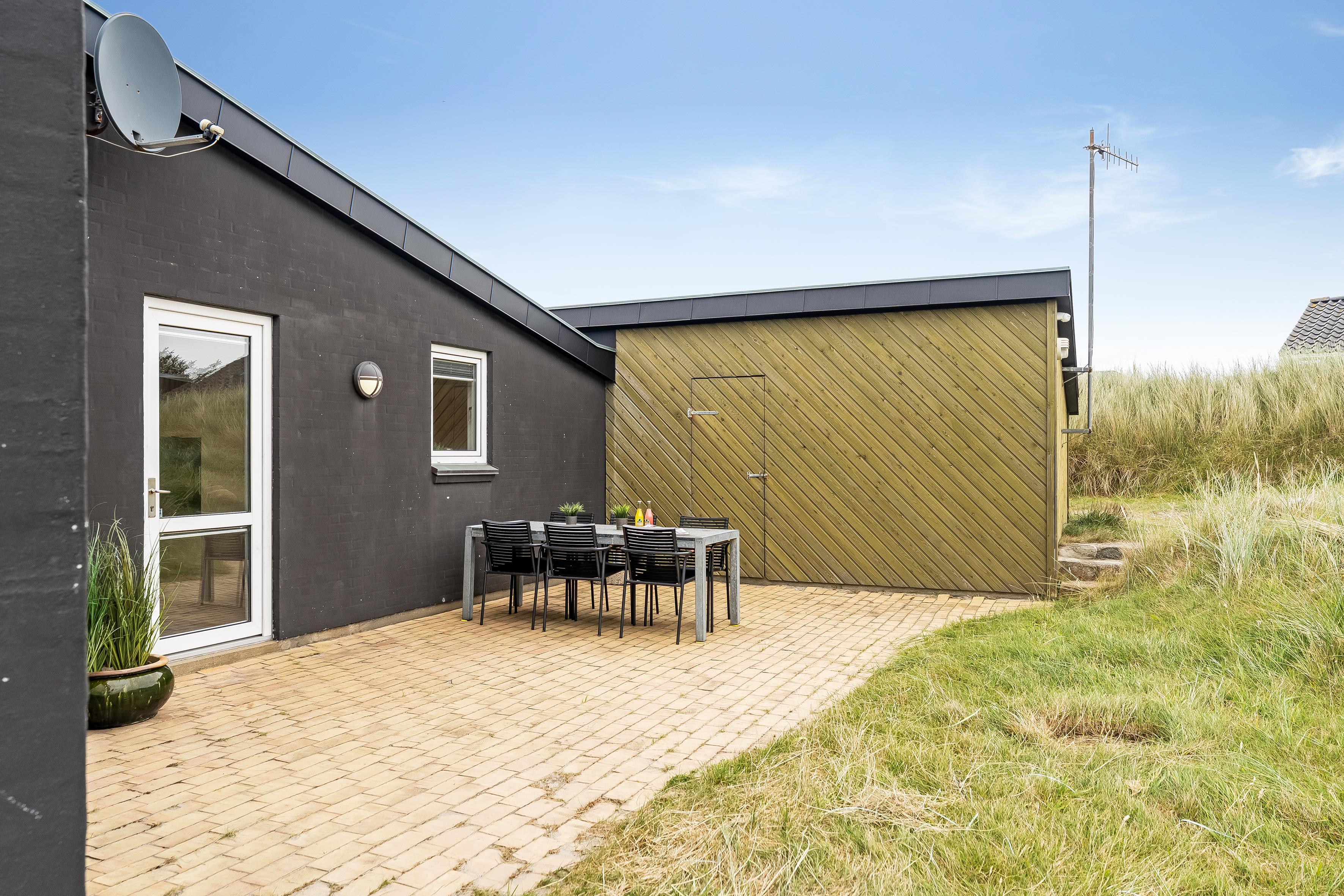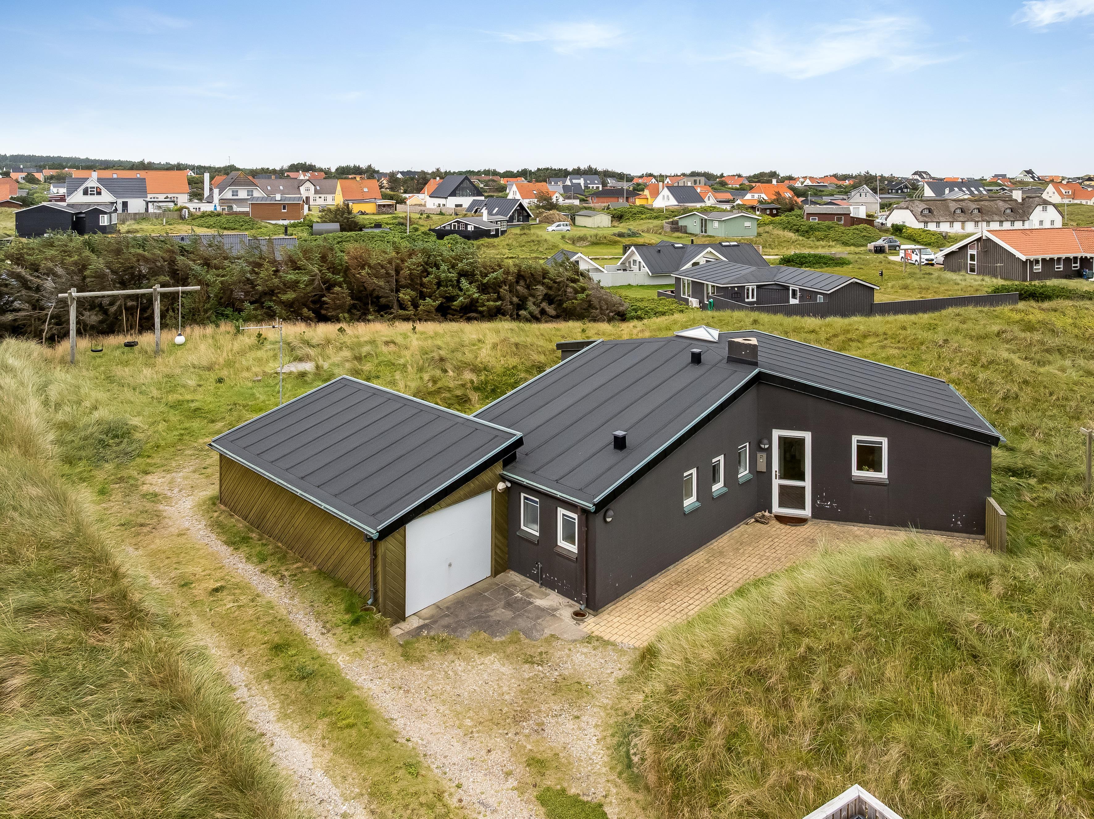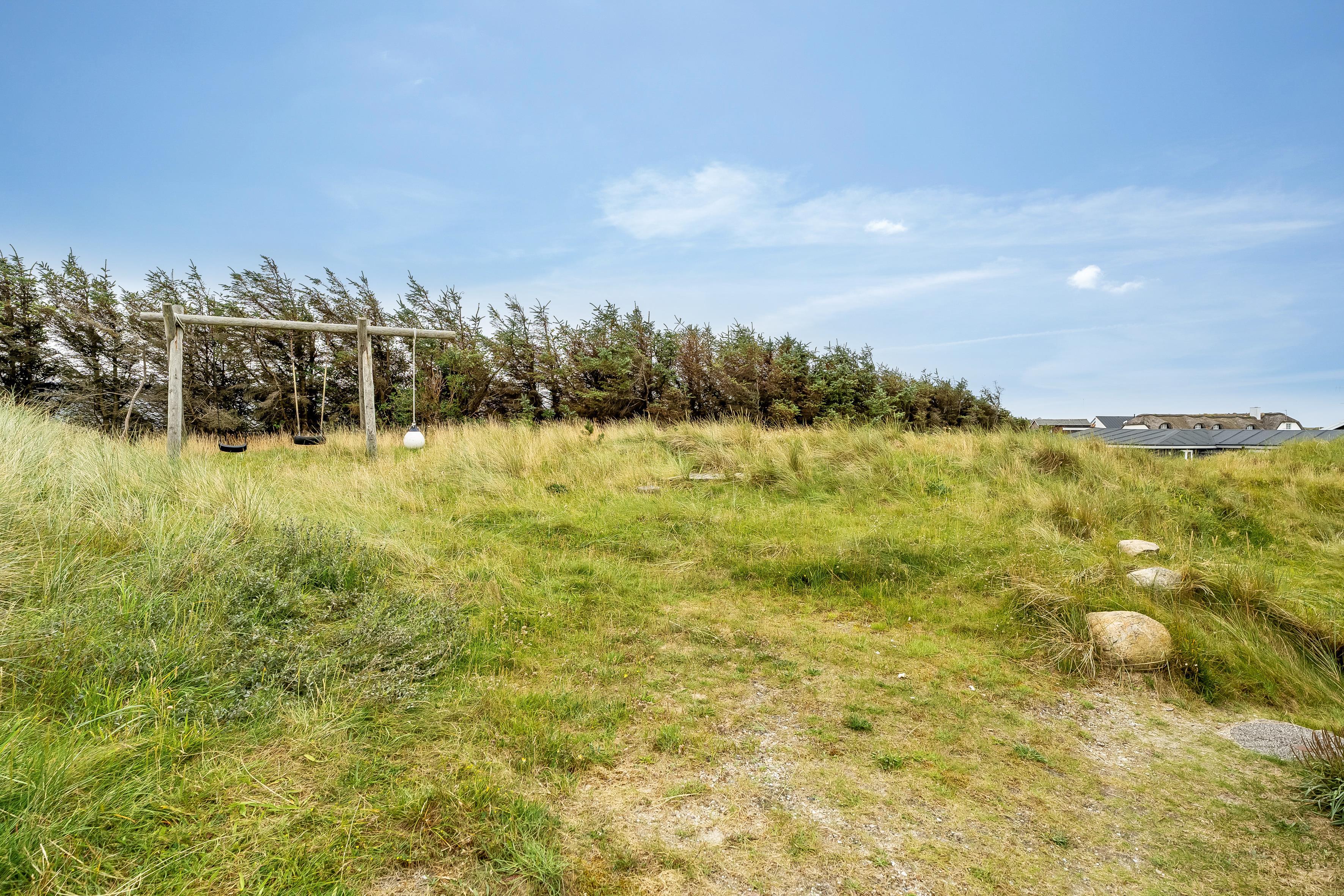 Udenfor kan børnene lege sikkert på grunden, hvor der er gynger og en sandkasse til timevis af sjov. Den rummelige terrasse er ideel til at nyde morgenkaffen eller en grillmiddag, mens man nyder den friske luft. Beliggenheden er optimal med kun 100 meter til vandet, hvor du kan tage en dukkert eller gå lange ture langs stranden. Indkøbsmulighederne er kun 300 meter væk, og der er en restaurant inden for 500 meter, så du nemt kan finde noget lækkert at spise uden at skulle rejse langt.