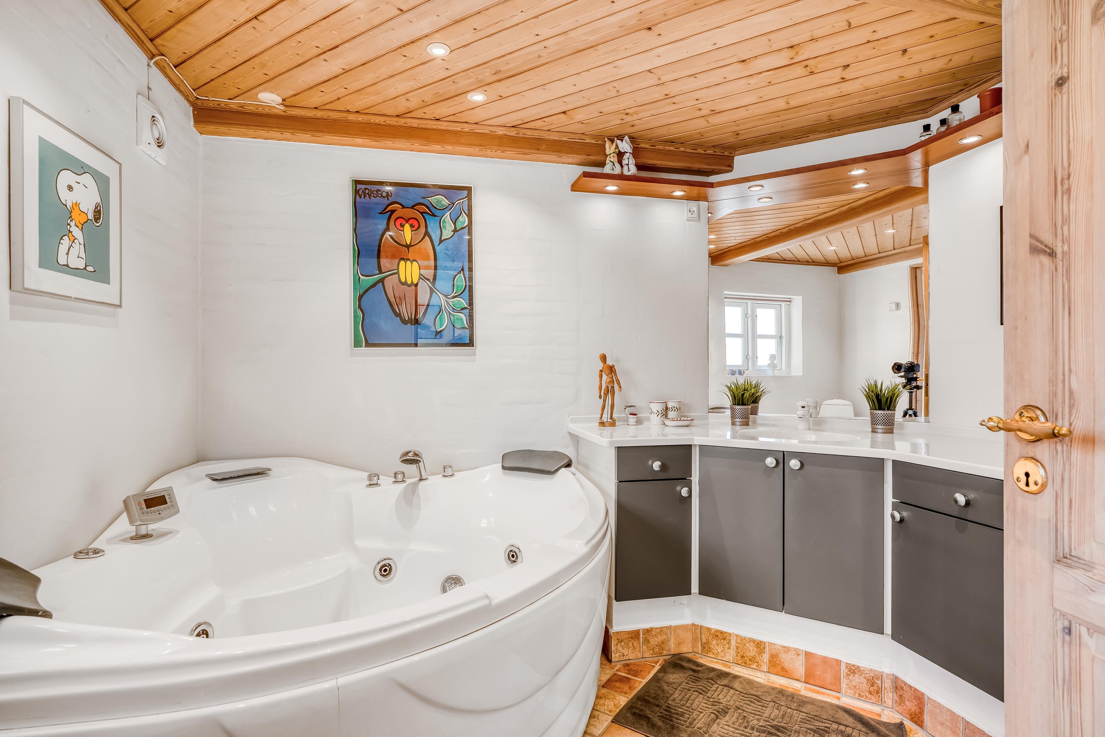 Desuden er der et udendørs spa, hvor op til 6 personer kan slappe af, samt en udendørs sauna for dem, der ønsker at nyde sundhedsfordelene ved varmebehandling i naturen. Huset tilbyder også trådløst internet, så du kan holde forbindelsen, hvis du ønsker det. Med to fjernsyn, der tilbyder både dansk og tysk TV samt Apple TV, er der underholdning til alle aldre.