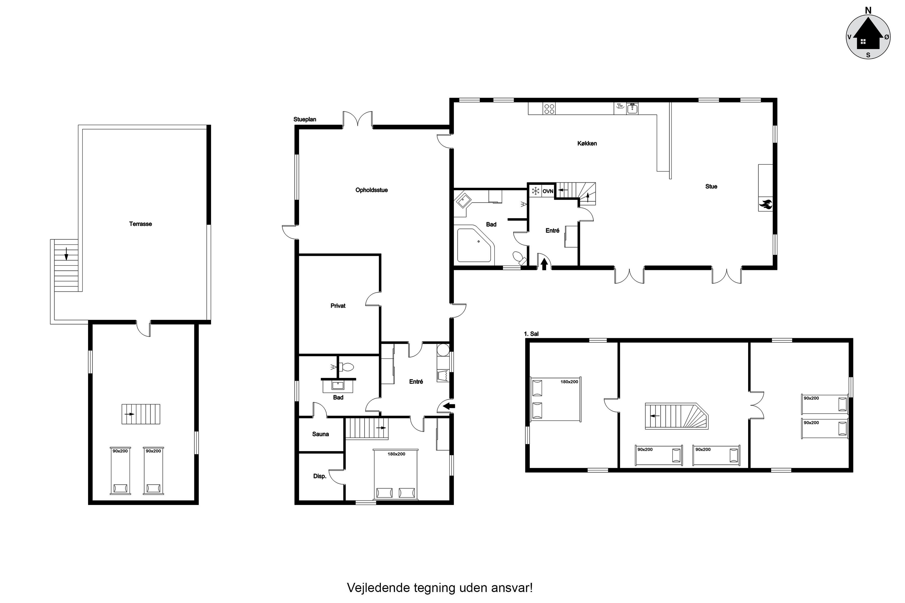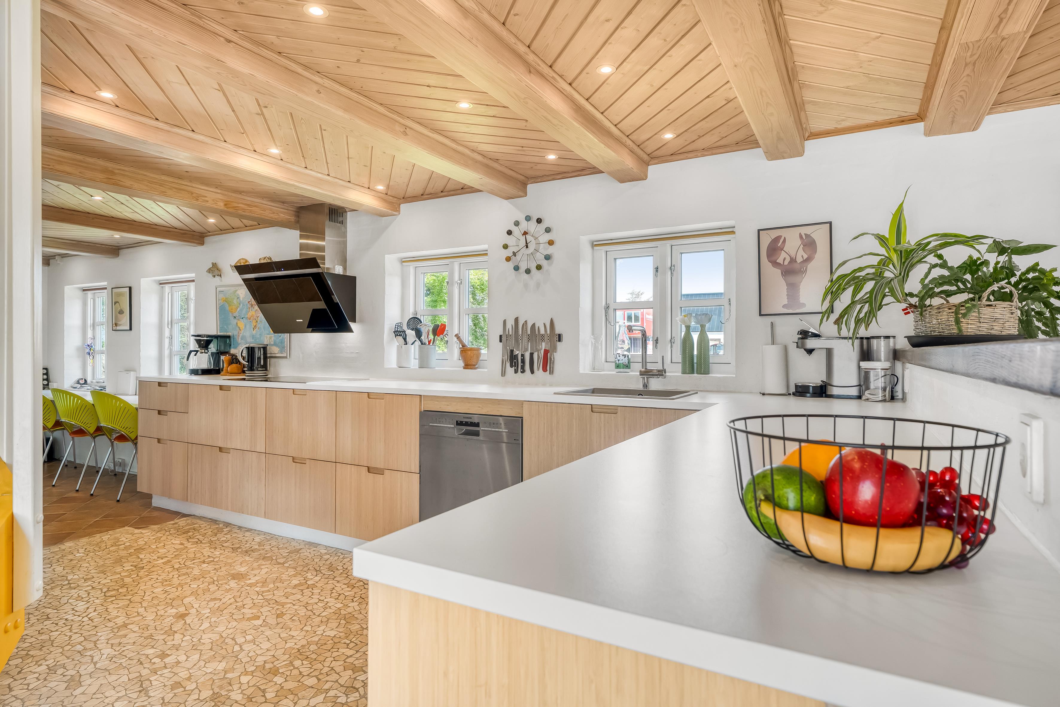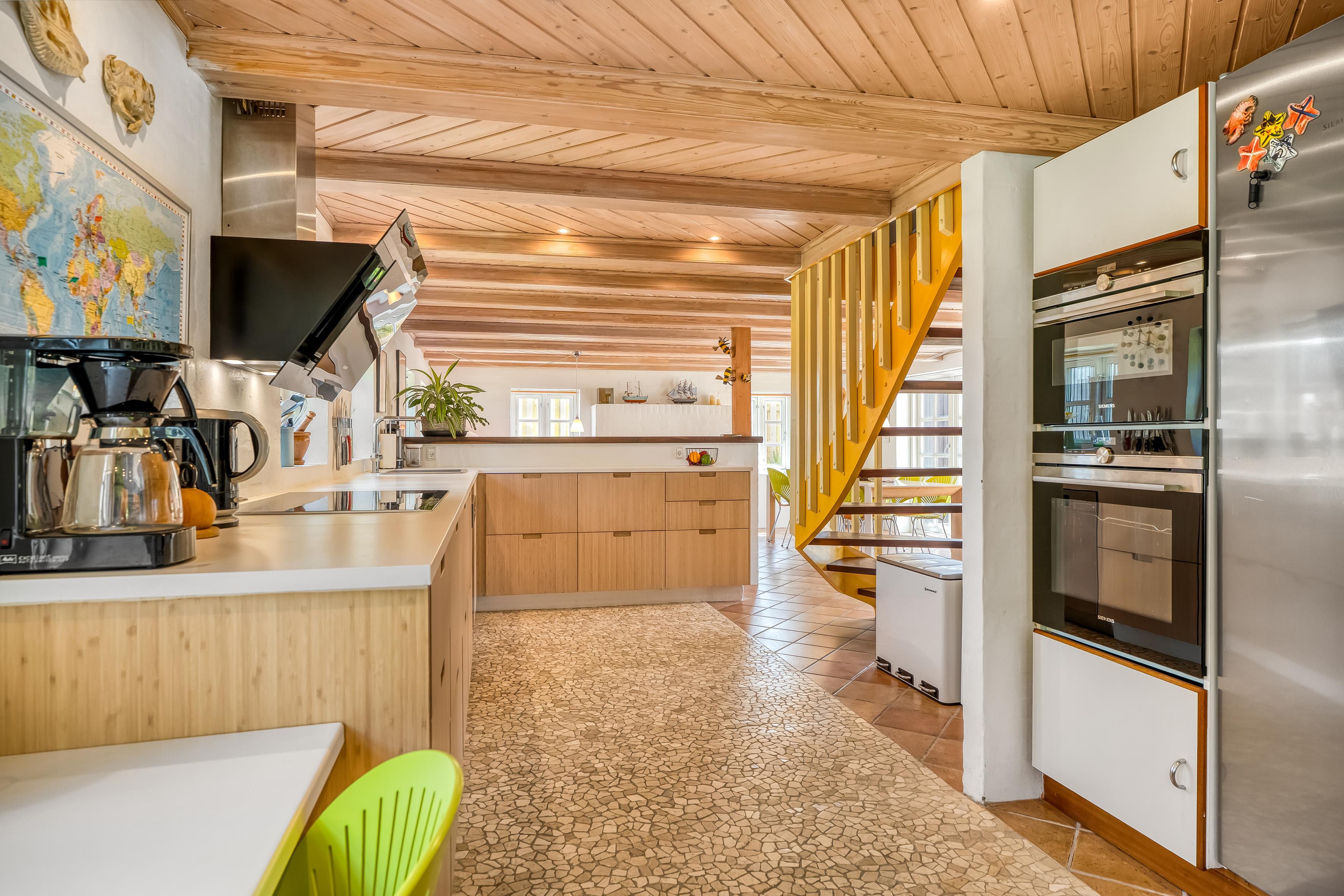 Boligen er blevet renoveret i 2013 og præsenterer sig i en moderne stil med alle nødvendige faciliteter for at sikre en behagelig og komfortabel ophold. Der er i alt 4 soveværelser, herunder tre værelser med dobbeltsenge og et værelse med to enkeltsenge, hvilket giver rigelig plads til hele familien. Derudover er der to badeværelser, begge udstyret med bruser og gulvvarme, så du kan nyde varme og komfort, selv på de kolde dage.