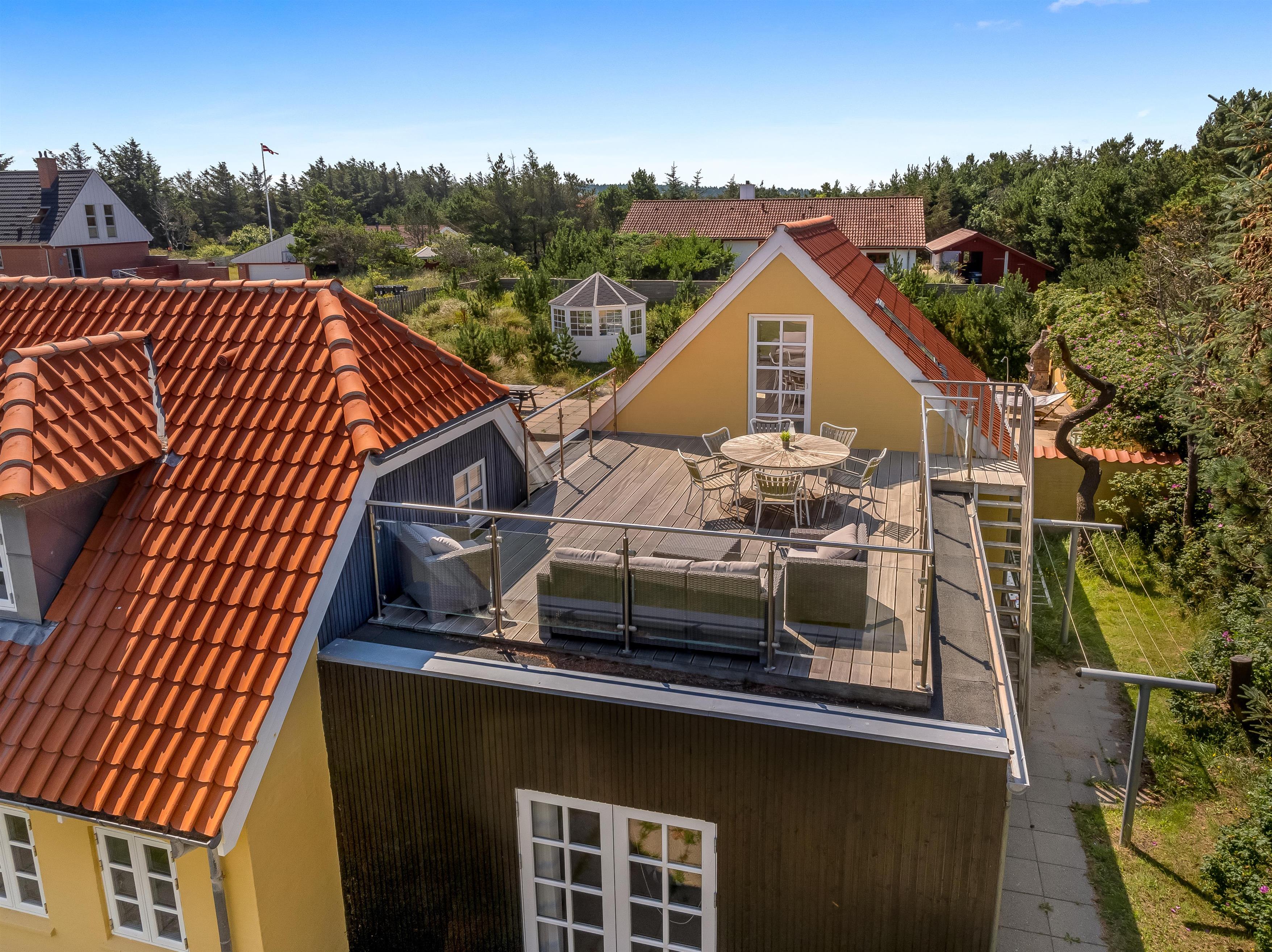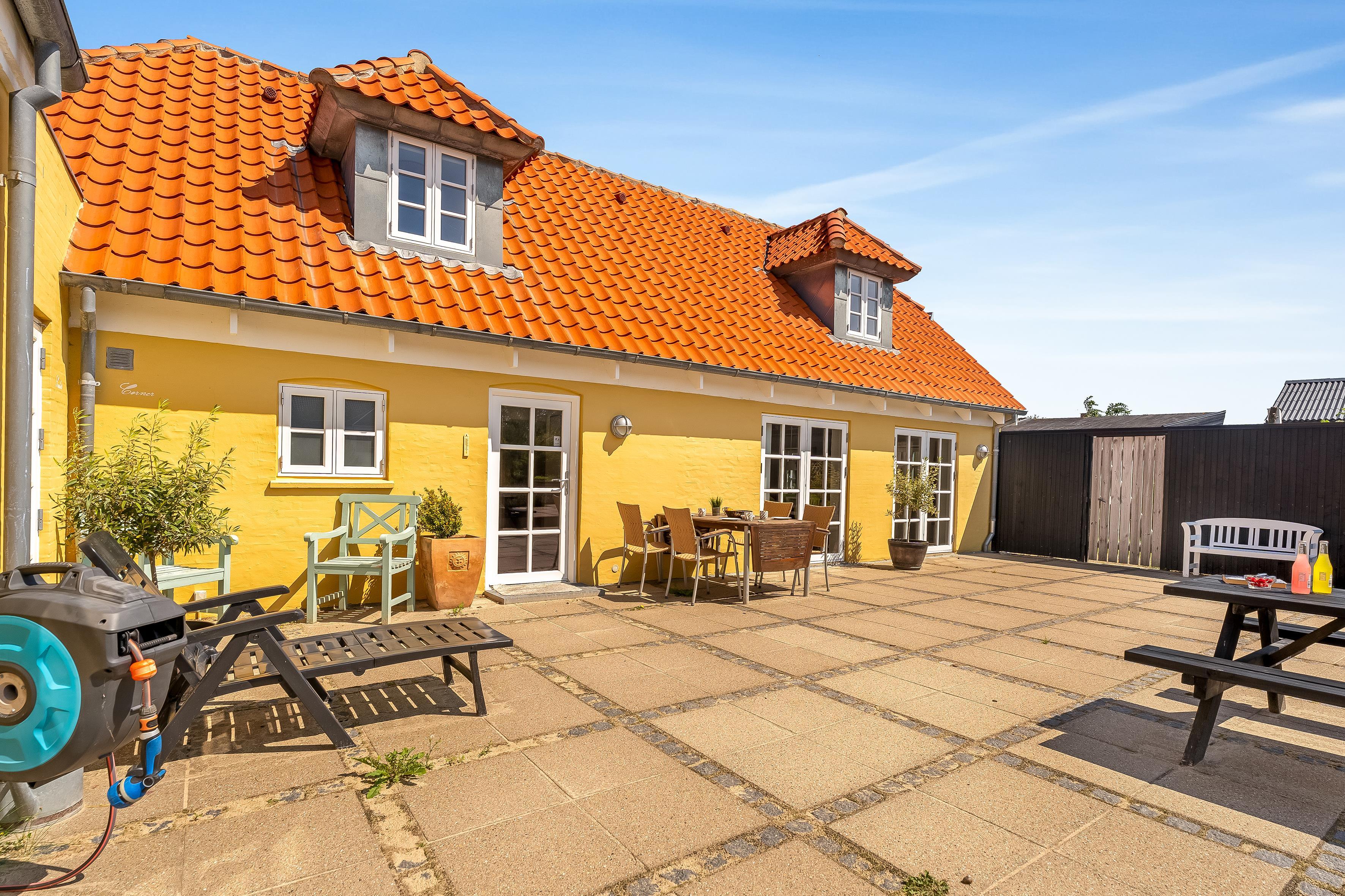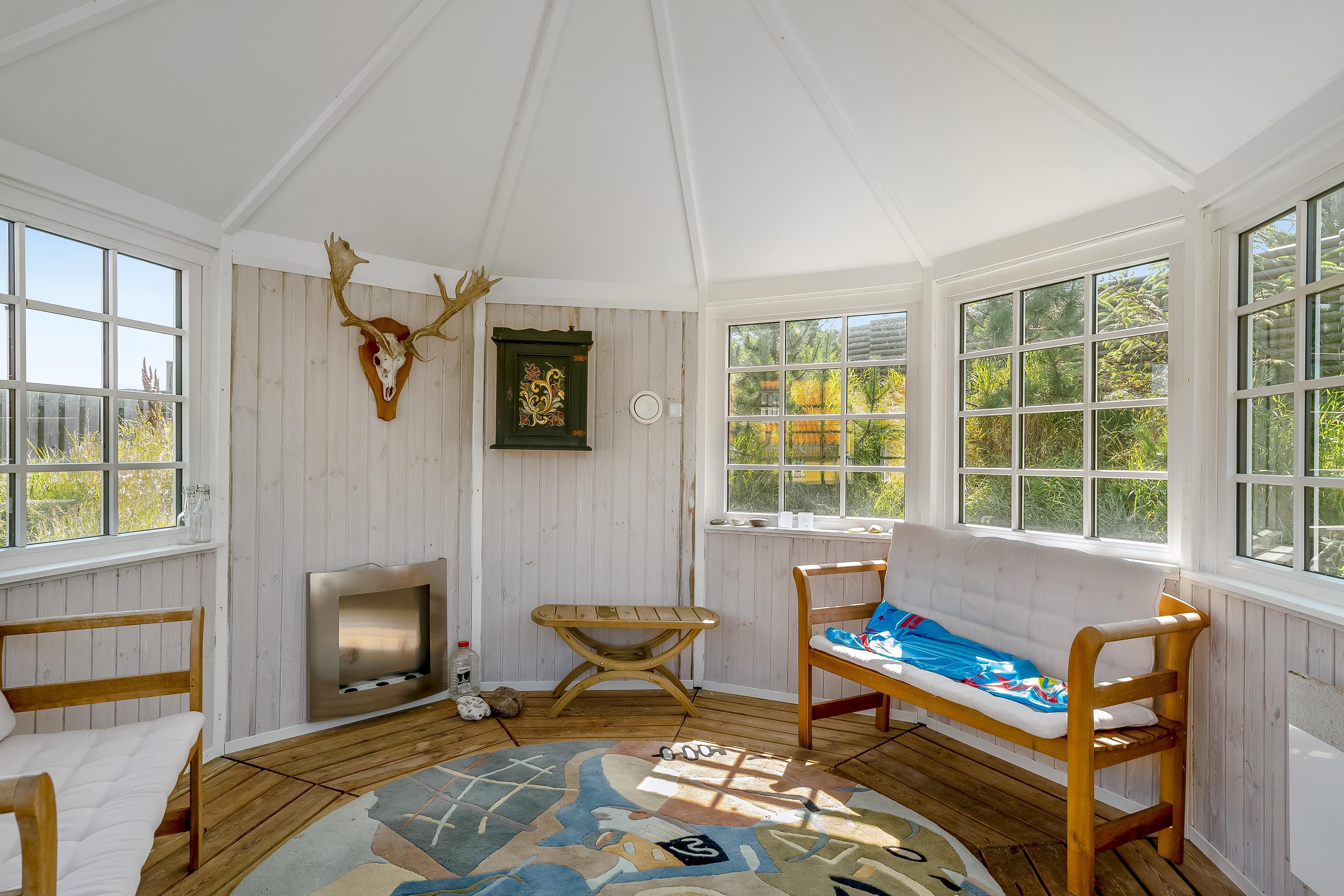 Udenfor finder du en lukket terrasse, der giver dig mulighed for at nyde det fri i privatliv. Der er også en stor terrasse, hvor du kan grille og nyde udendørs måltider. For familier med børn er der gynger og en sandkasse, som vil holde de små underholdt. Der er også et bålsted, hvor du kan samles om ilden og lave skumfiduser under stjernerne.