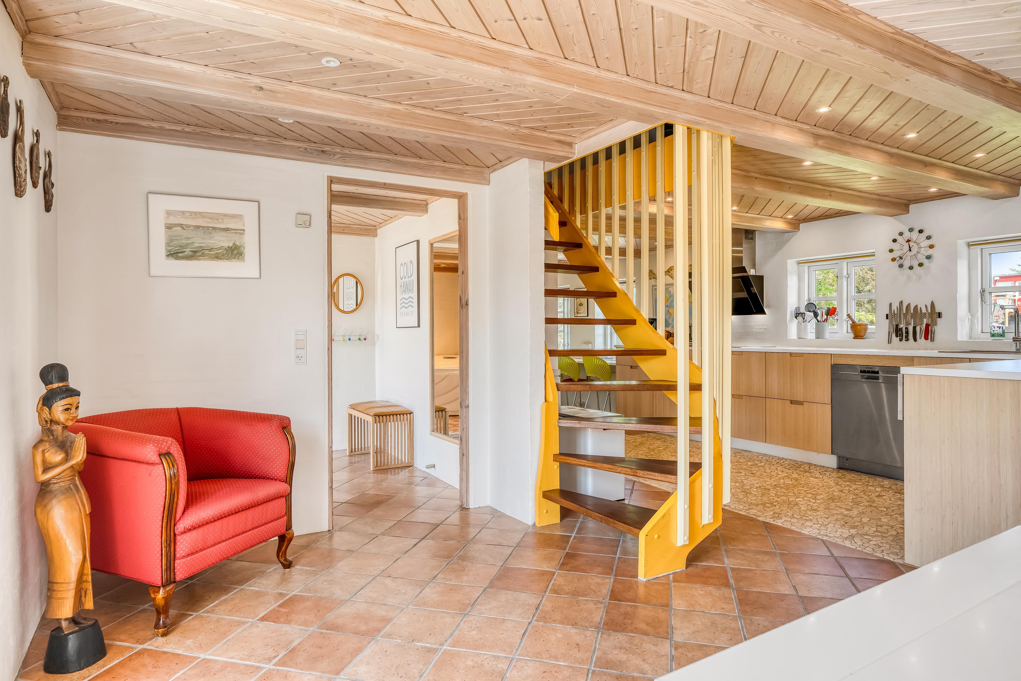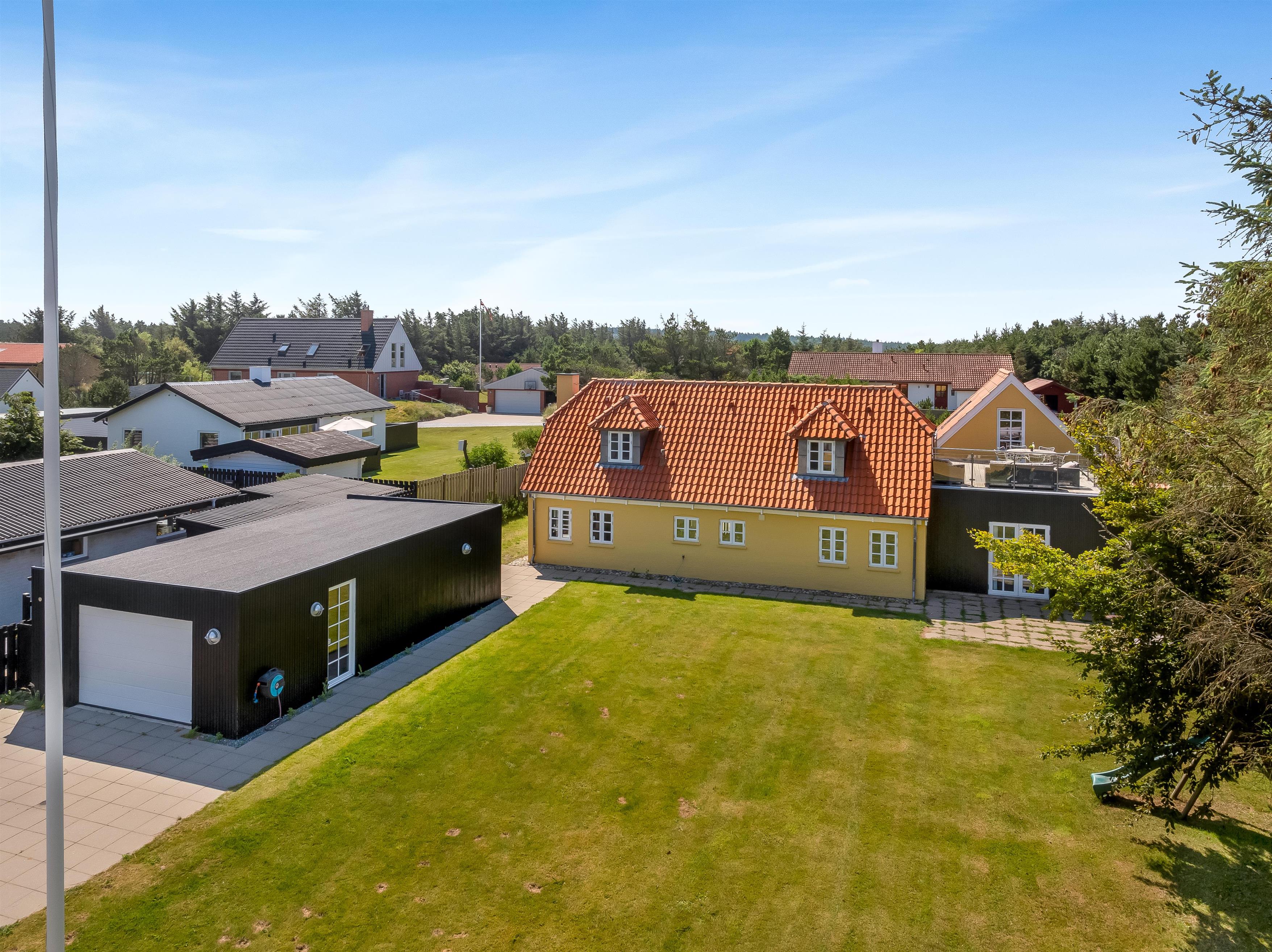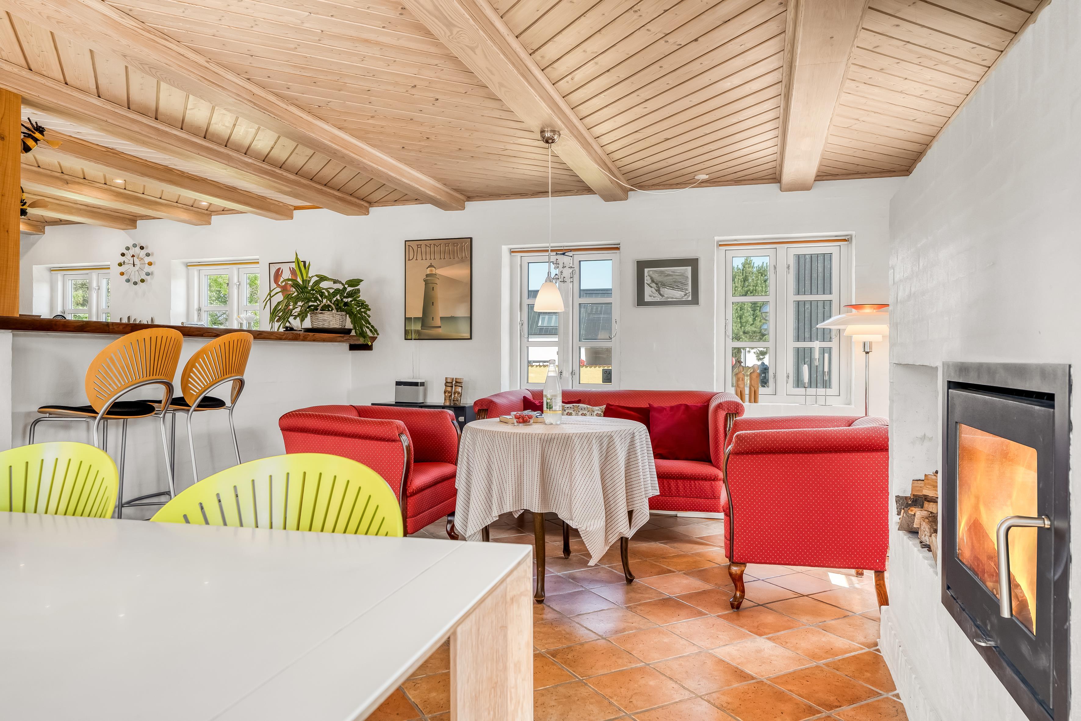 Huset er beliggende kun 300 meter fra Vesterhavet, hvilket giver dig mulighed for at nyde strandlivet og de skønne vandreture langs kysten. Indkøbsmuligheder er også kun 300 meter væk, og der ligger en restaurant blot 50 meter fra boligen, så du kan forkæle dig selv med lækker mad uden at skulle gå langt.
