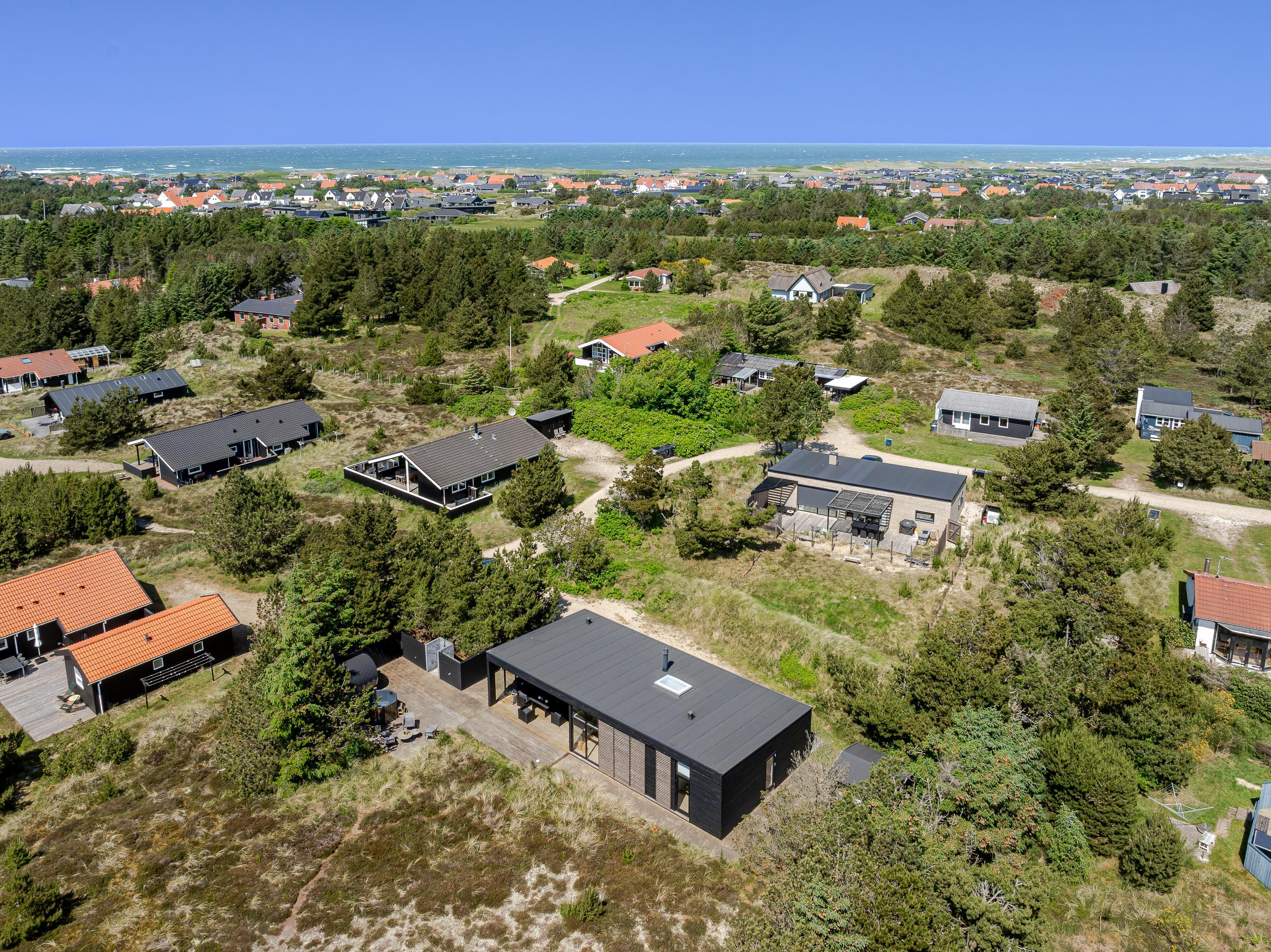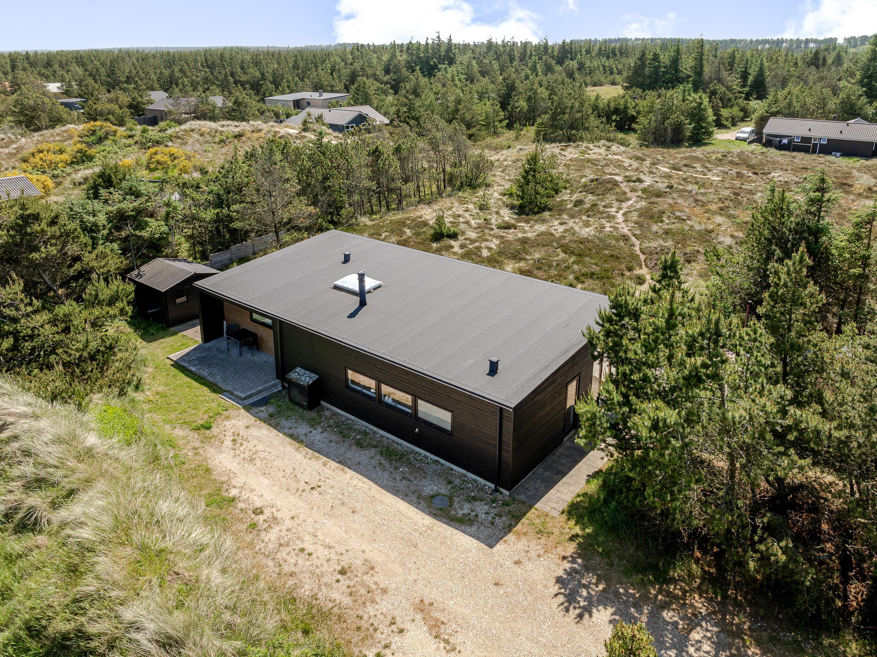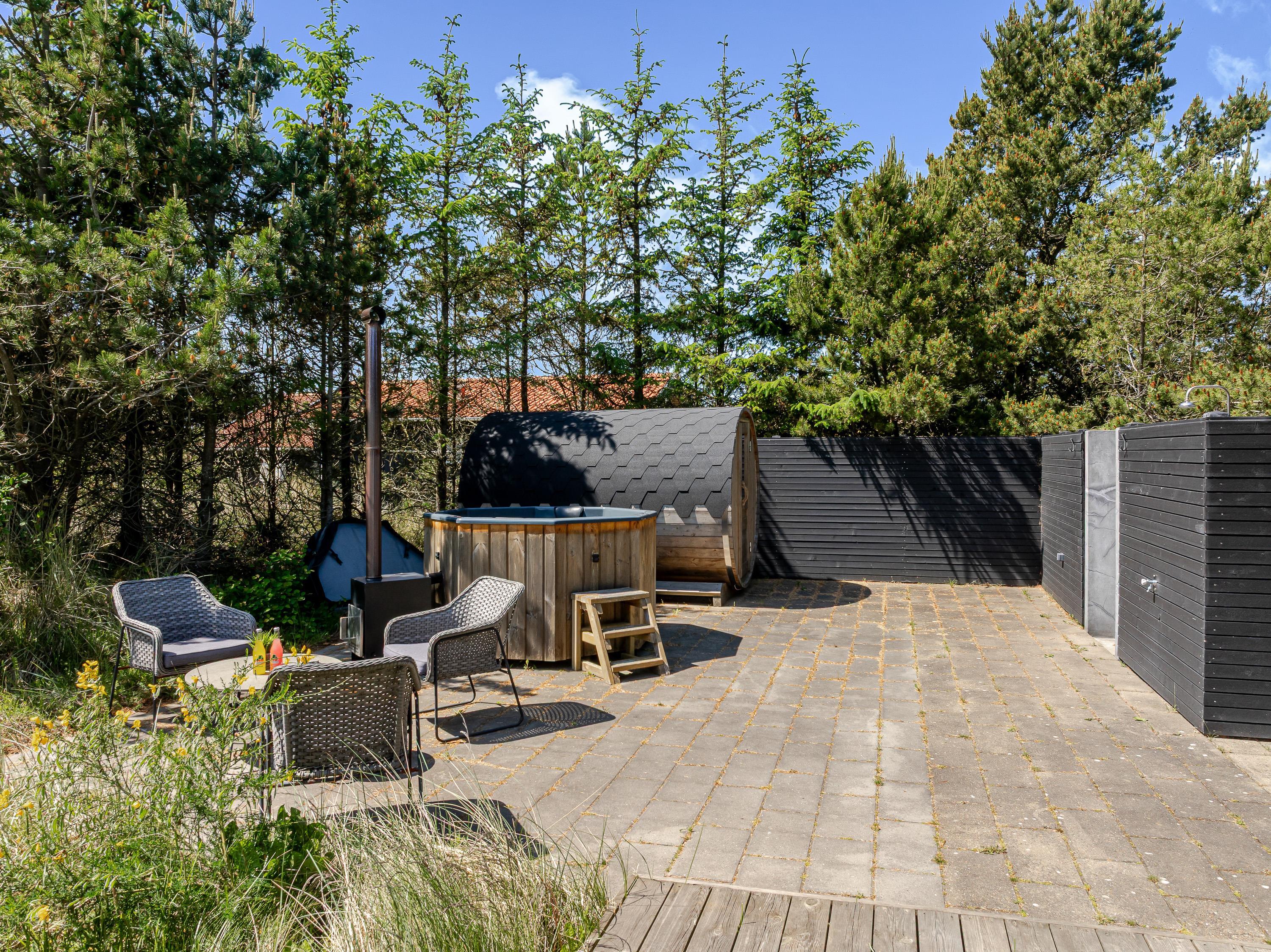 Udendørsområdet er lige så imponerende som det indendørs. Nyd den overdækkede terrasse, hvor du kan sidde og slappe af med en god bog eller nyde en kop kaffe om morgenen. Slap af i det 6 personers vildmarksbad, der kan rumme op til 5 personer, eller forkæl dig selv med en afslappende stund i udesaunaen. Udebruseren er perfekt til de varme dage, og den store have giver masser af plads til udendørs leg og aktiviteter.