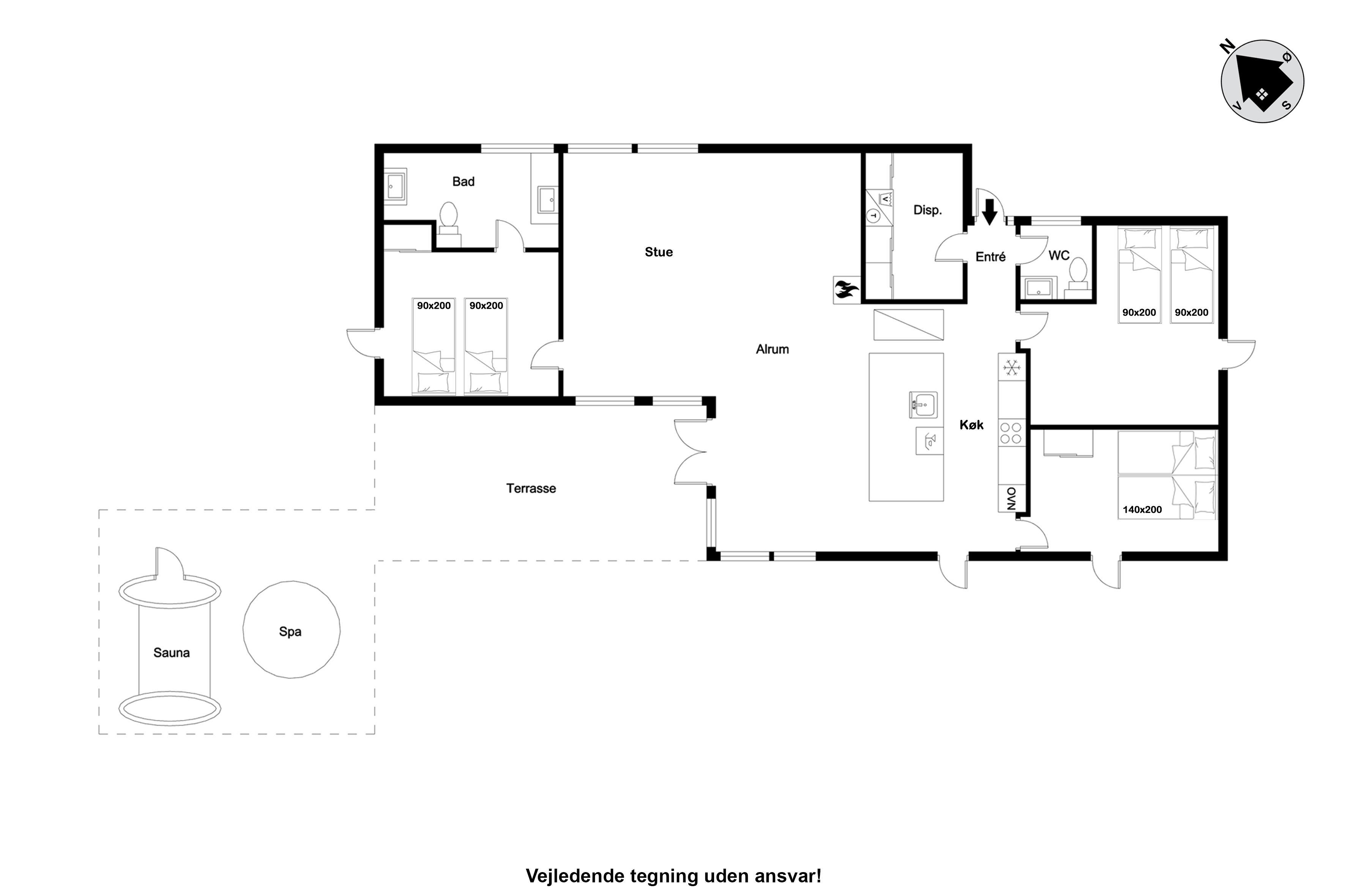 Med en afstand på kun 900 meter til vandet, indkøbsmuligheder og restauranter, er du aldrig langt fra underholdning og faciliteter. Dette hus er også hundevenligt, så du kan tage din firbenede ven med på ferie. Med sin moderne charme og fremragende beliggenhed er dette hus det ideelle valg for en uforglemmelig ferie med familie eller venner.