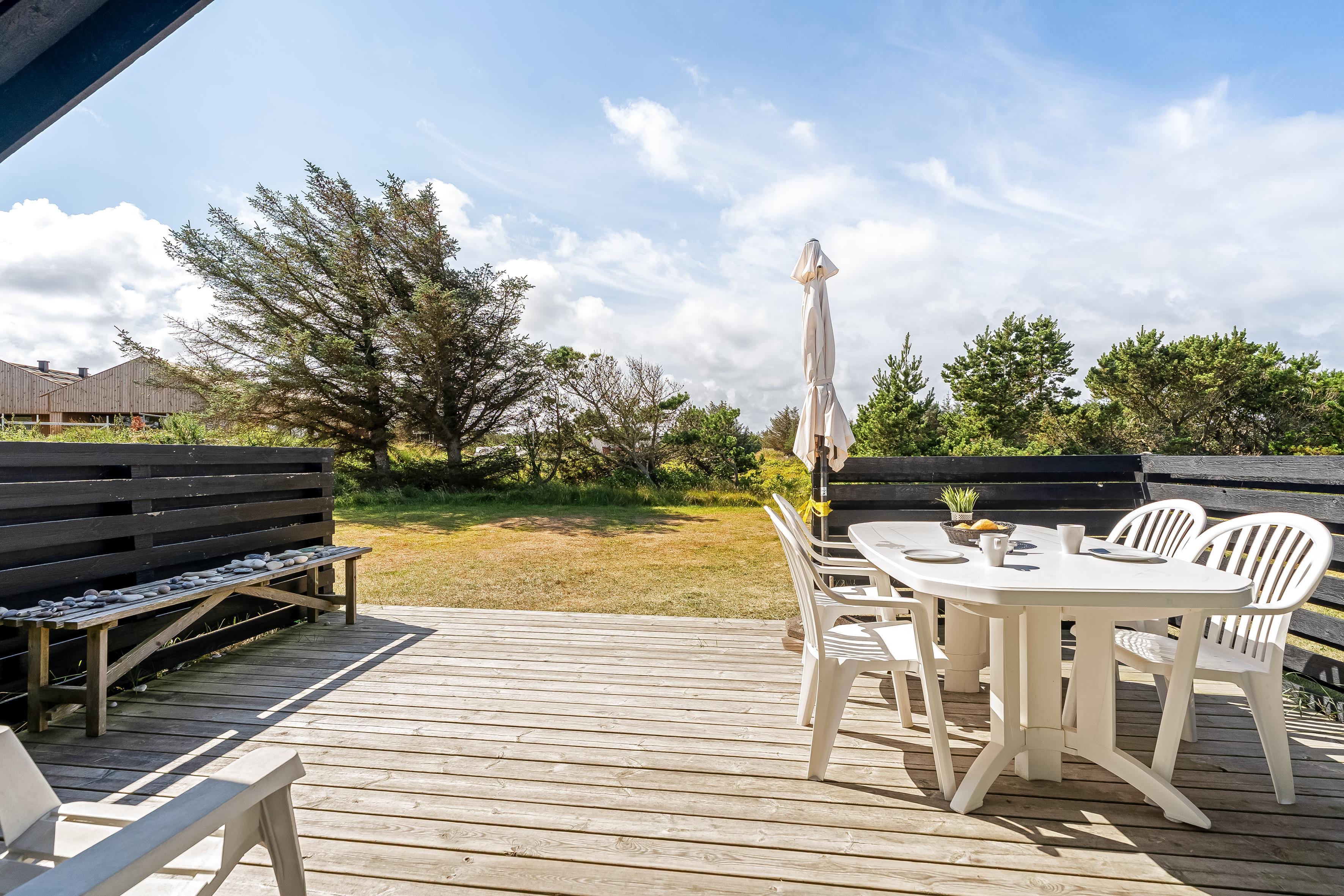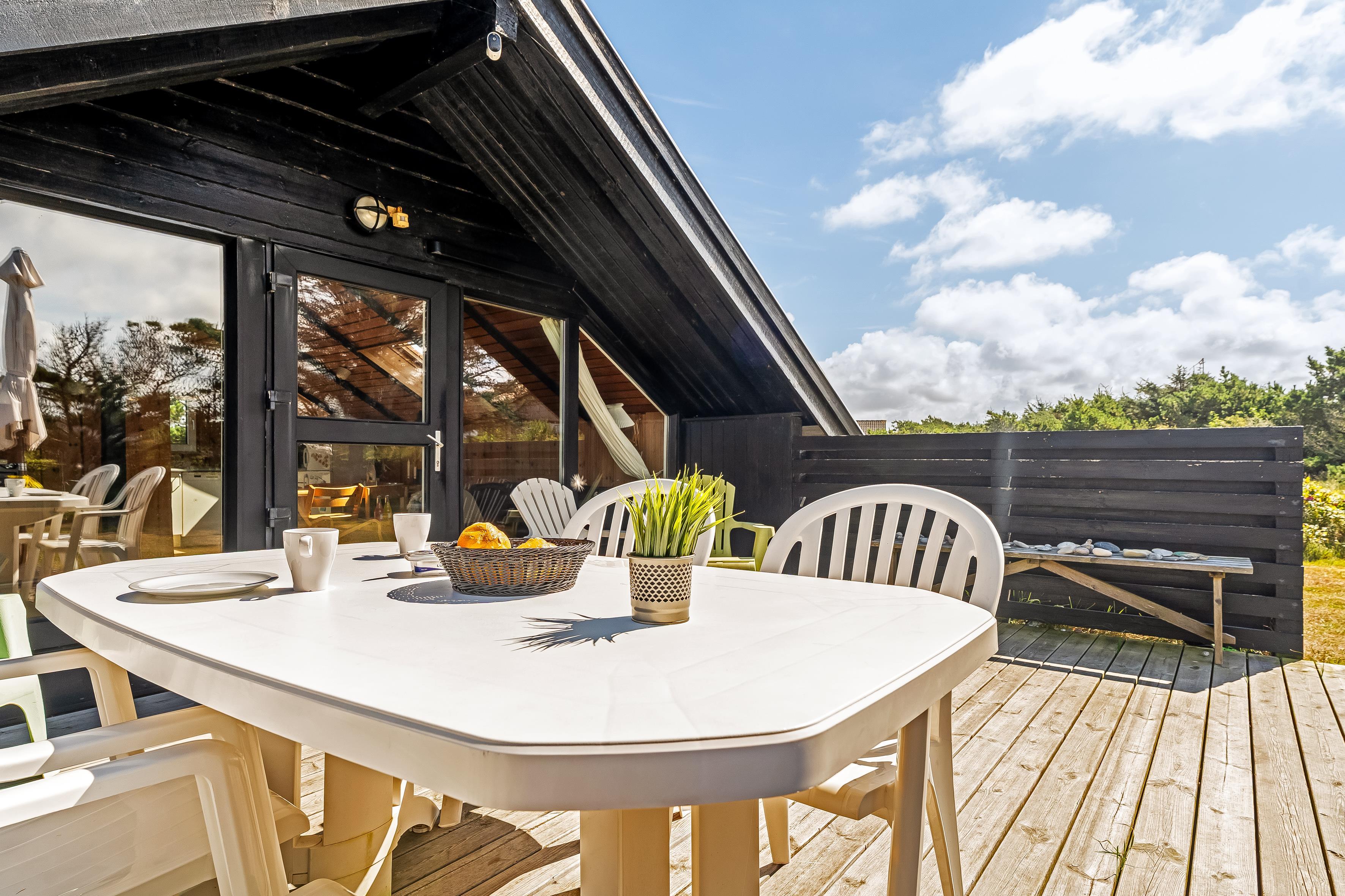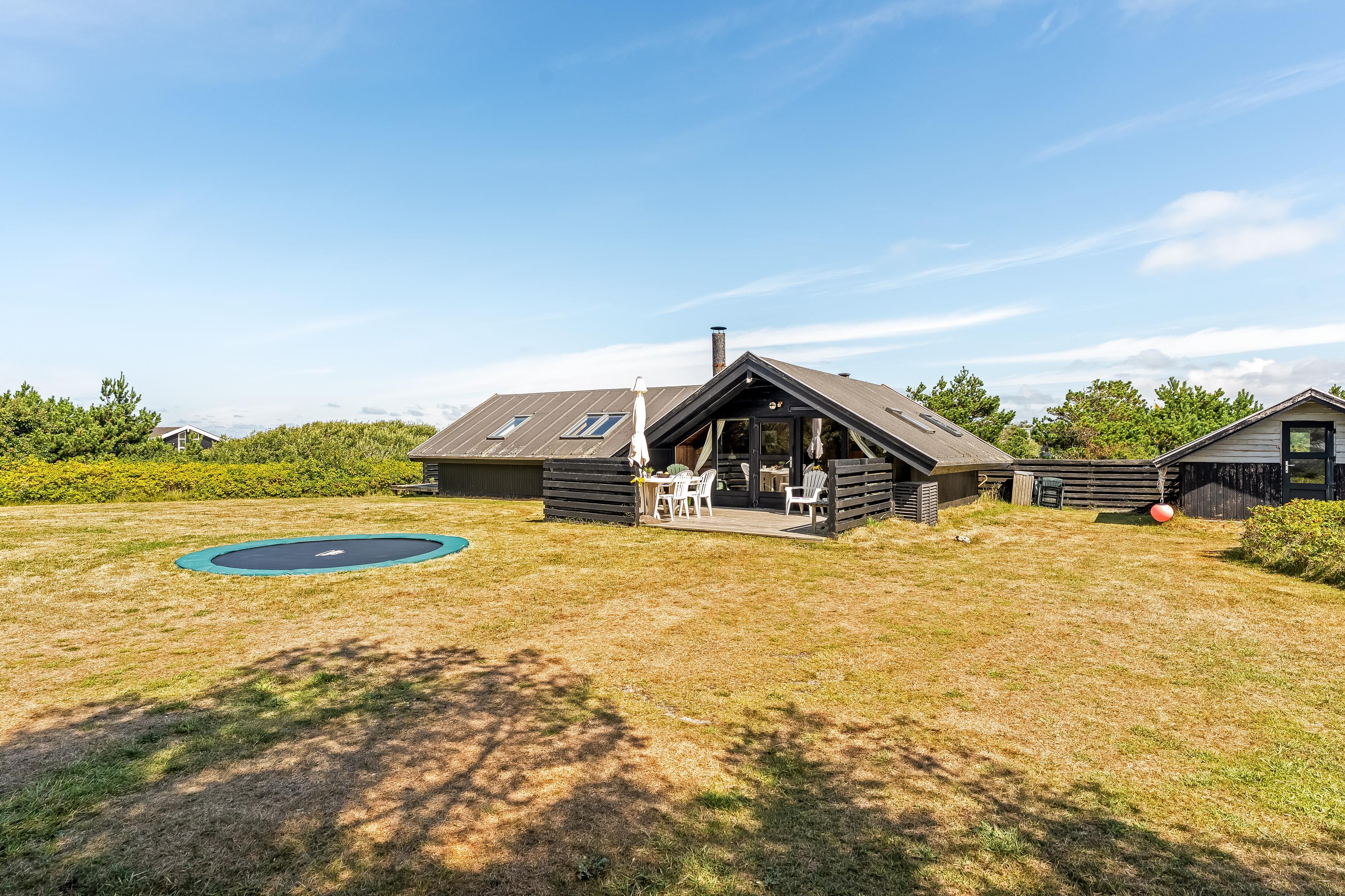 Udenfor kan I nyde den solrige terrasse, hvor I kan grille lækre retter på den medfølgende grill. Den store have er perfekt til leg og afslapning, og den sjove trampolin vil helt sikkert bringe glæde til børnene. Huset er også dyrevenligt, så I kan tage jeres firbenede venner med på ferie.
