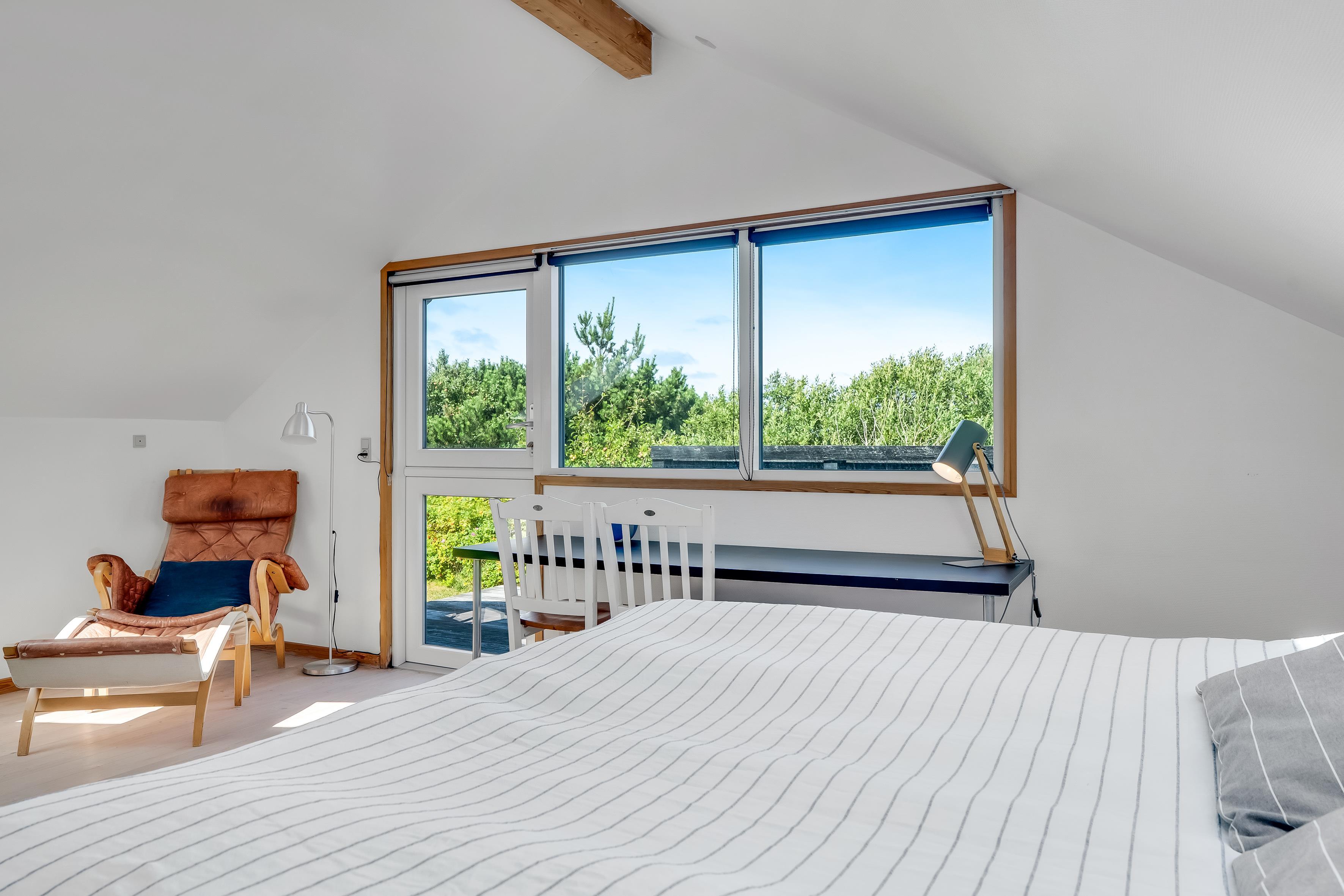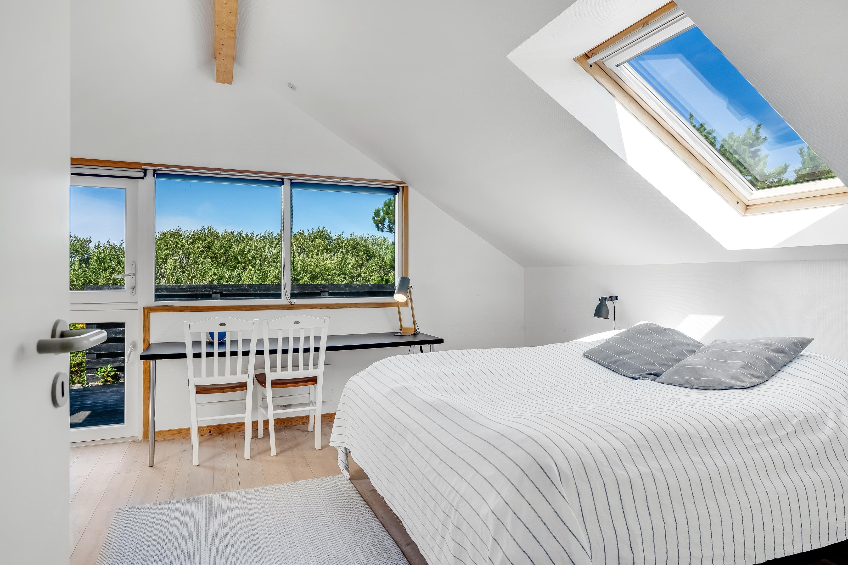 Huset byder på fire velindrettede soveværelser, hvoraf tre har dobbeltsenge, og det fjerde værelse er udstyret med en enkeltseng og en køjeseng, hvilket gør det perfekt til børn eller unge. Den rummelige indretning sikrer, at alle har deres eget private rum til at slappe af og hvile. De komfortable senge garanterer en god nattesøvn, så I er klar til at udforske området hver dag.