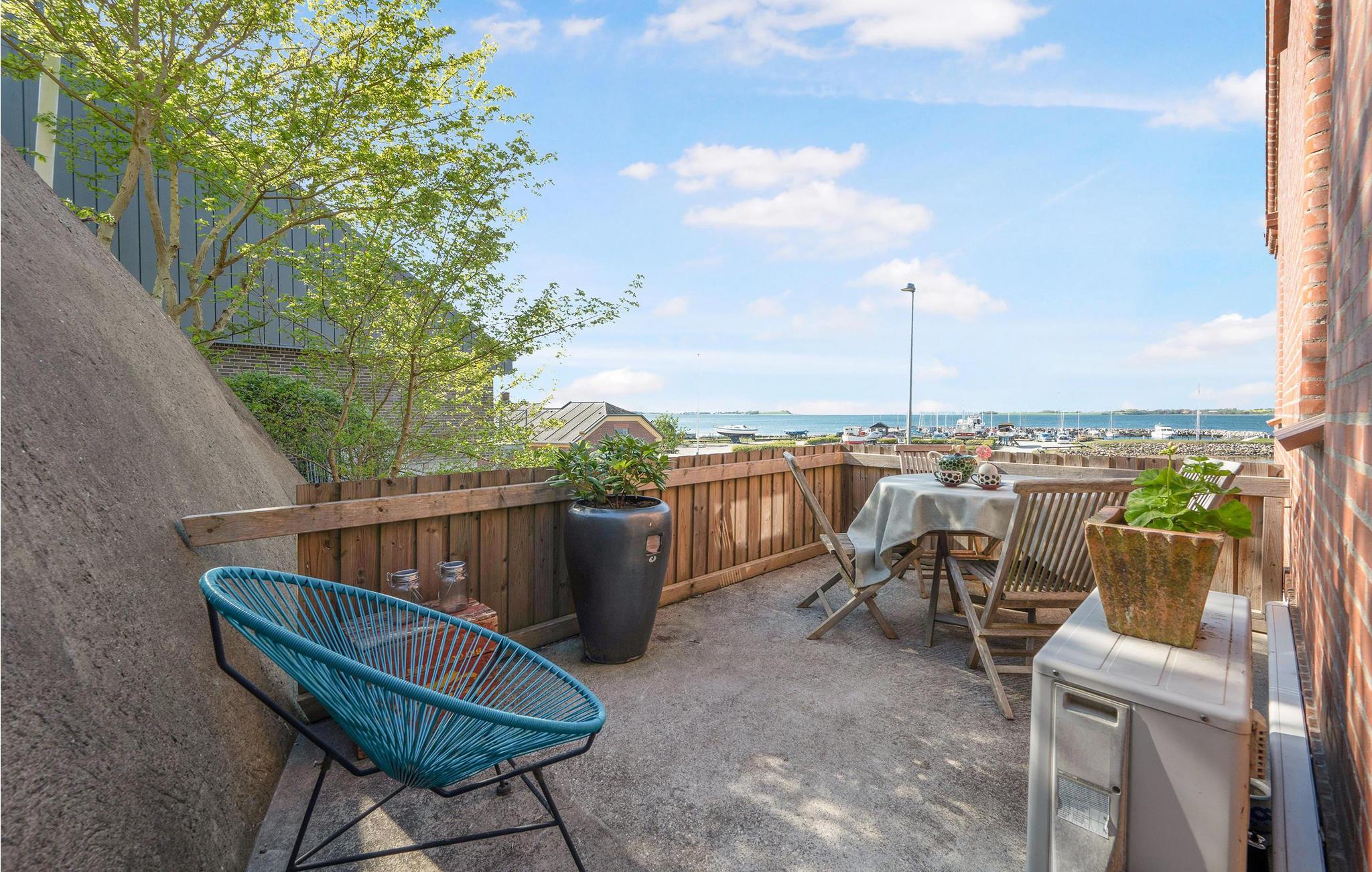 I haven med tilhørende terrasse kan I slappe af, og herfra kan I betragte livet på den lille havn. Hvis I går 25 trin op ad skråningen til den vestvendte træterrasse, kan I nyde dag- og aftensolen og den smukkeste 180-graders panoramaudsigt!