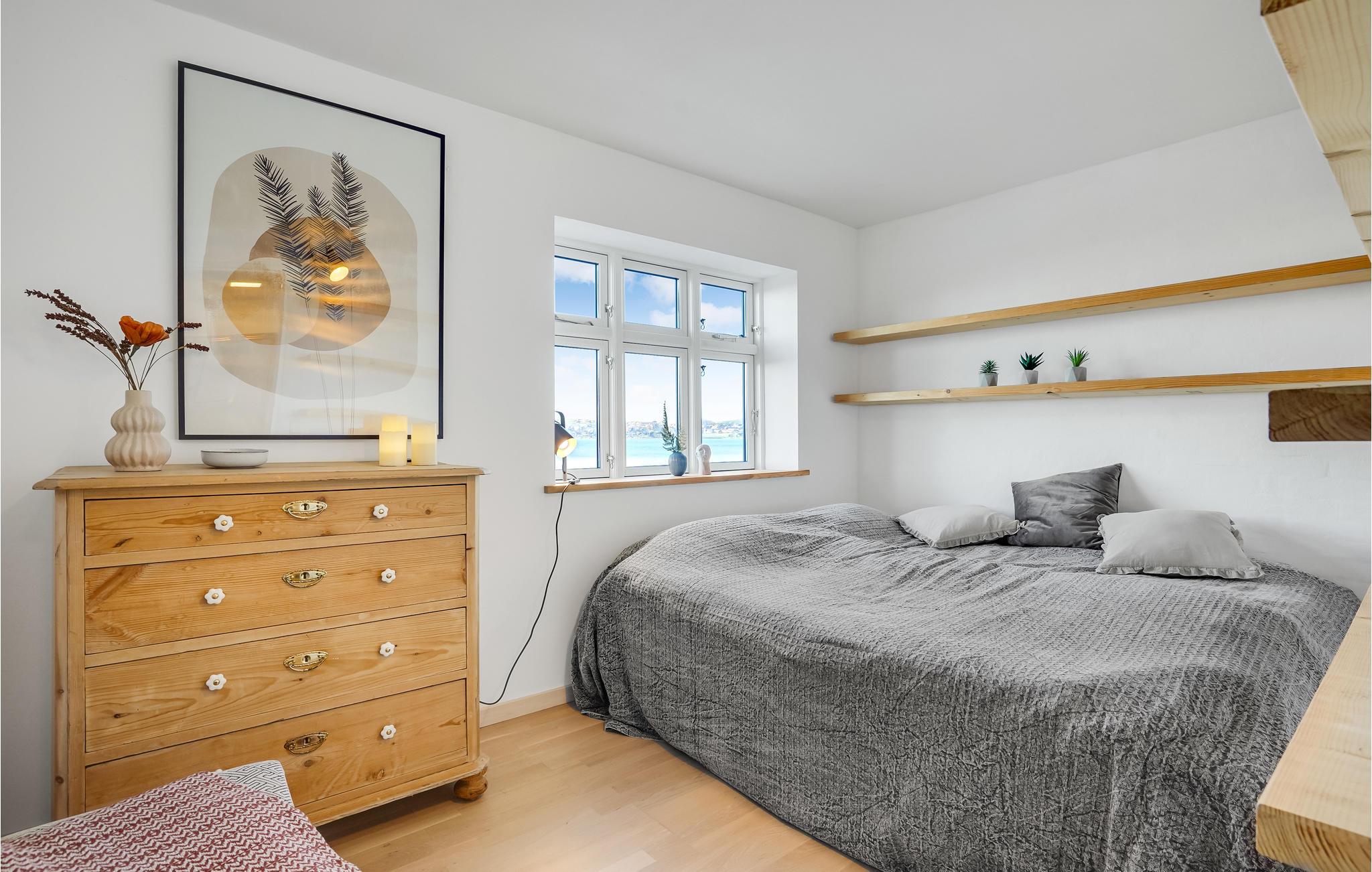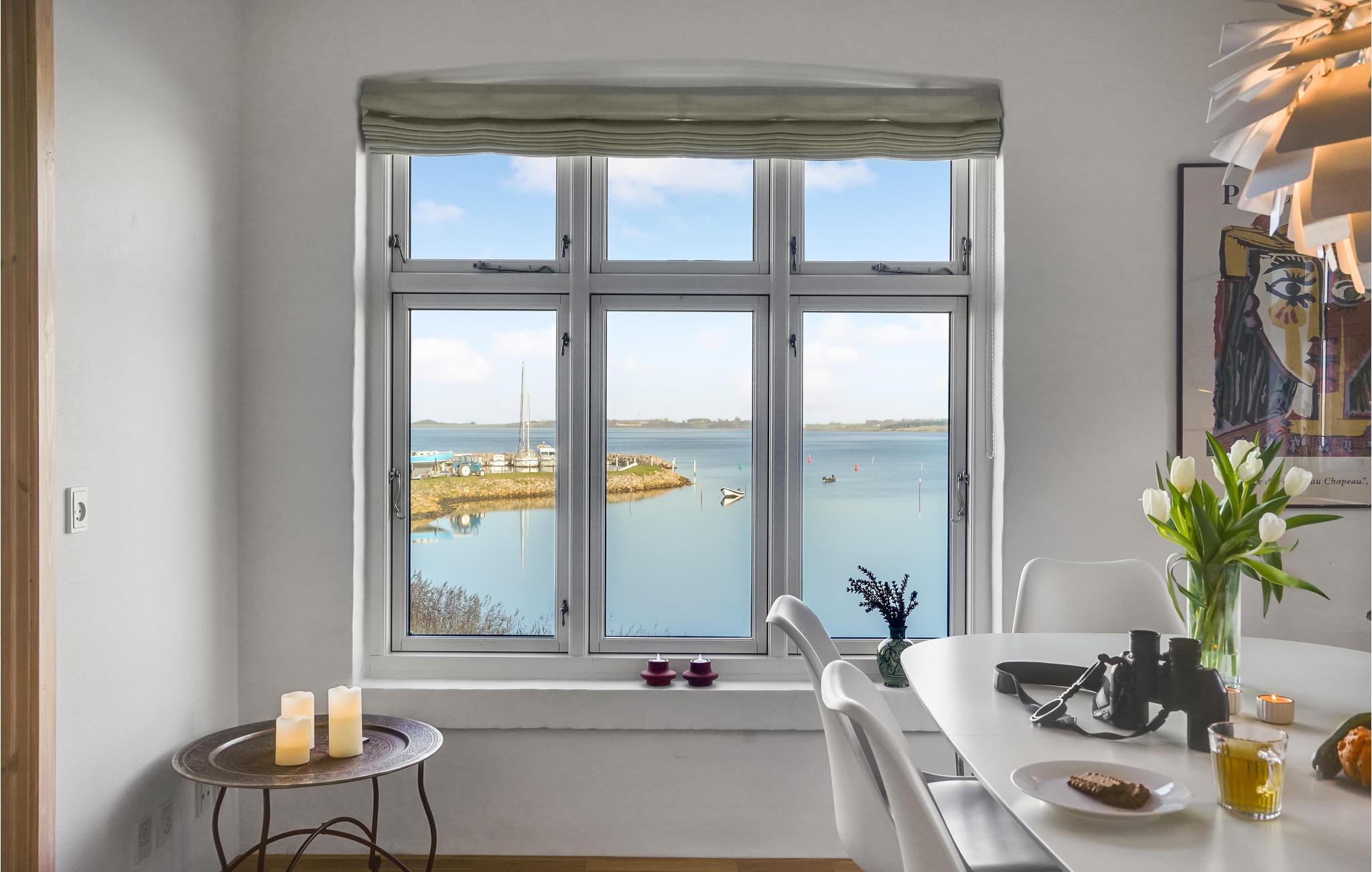 Smukt murstenshus med panoramaudsigt over Knebel Vig tæt ved vandet og havnen.