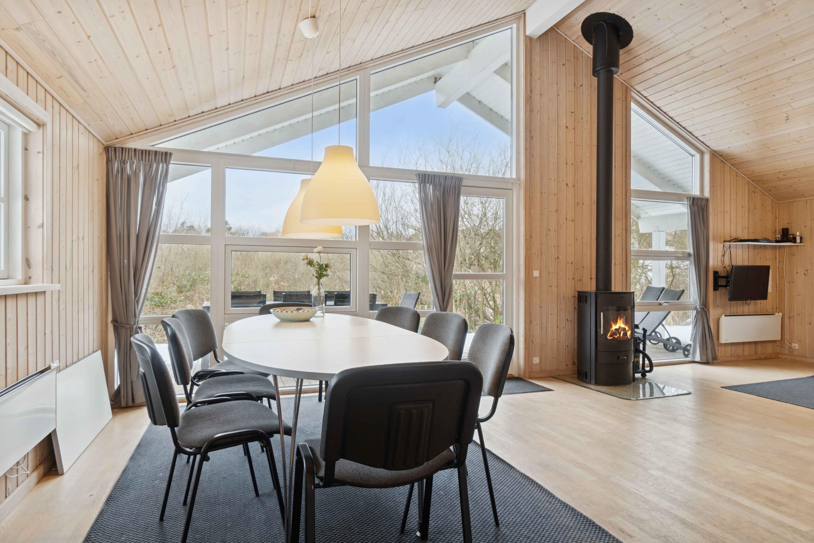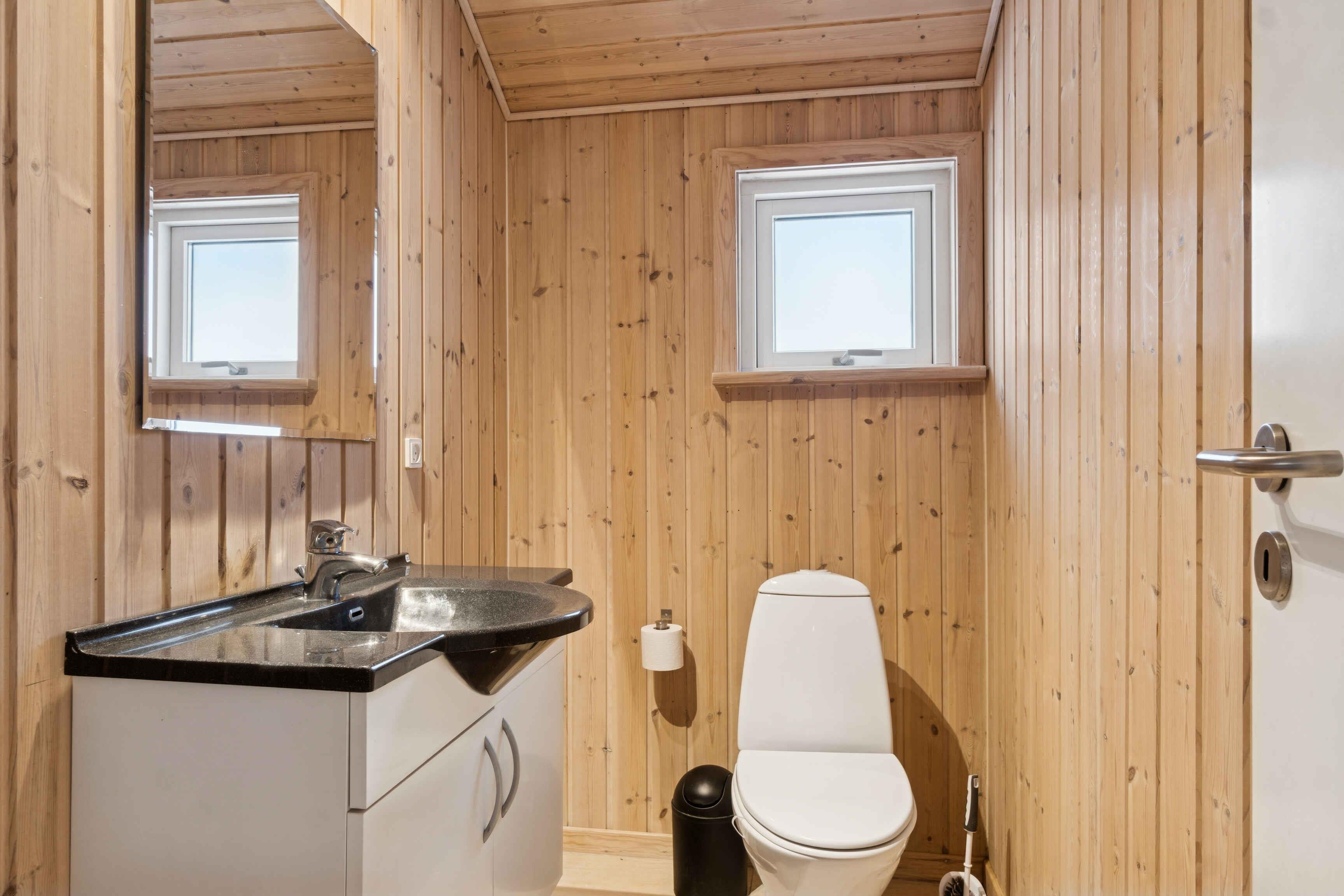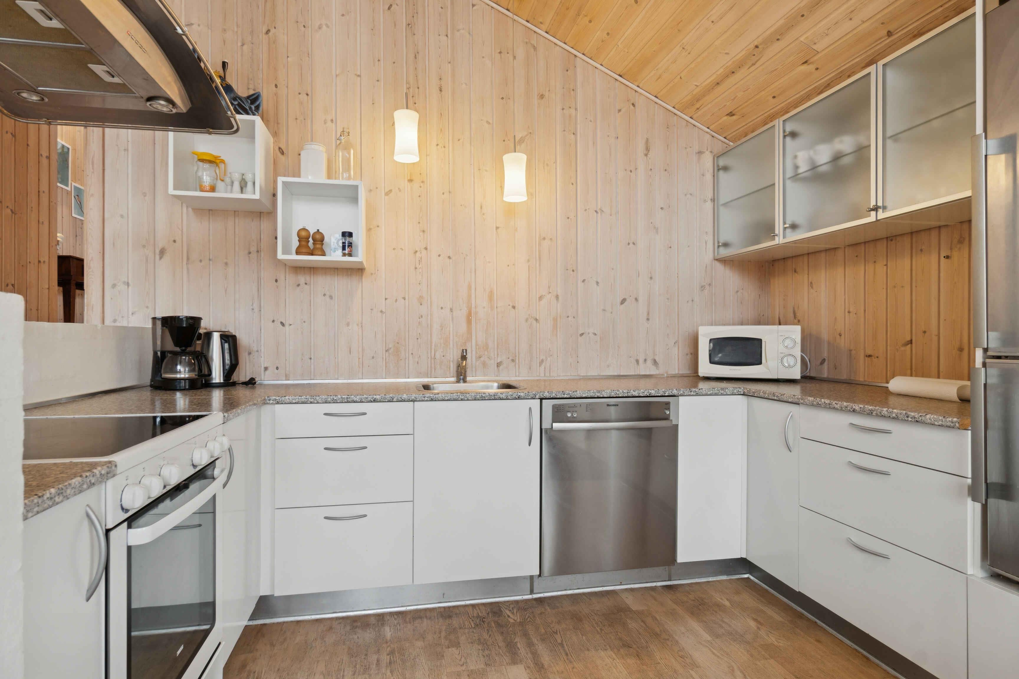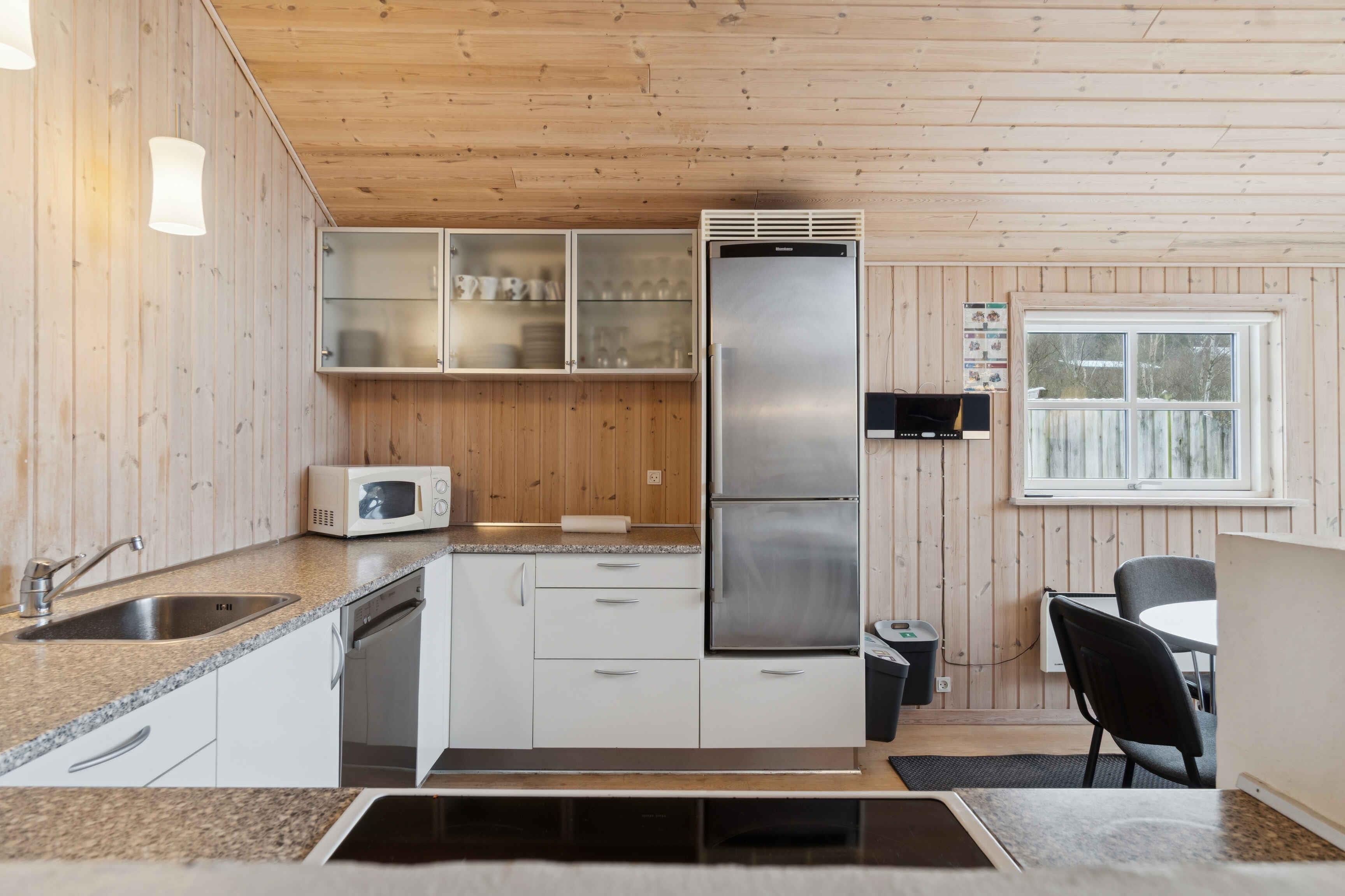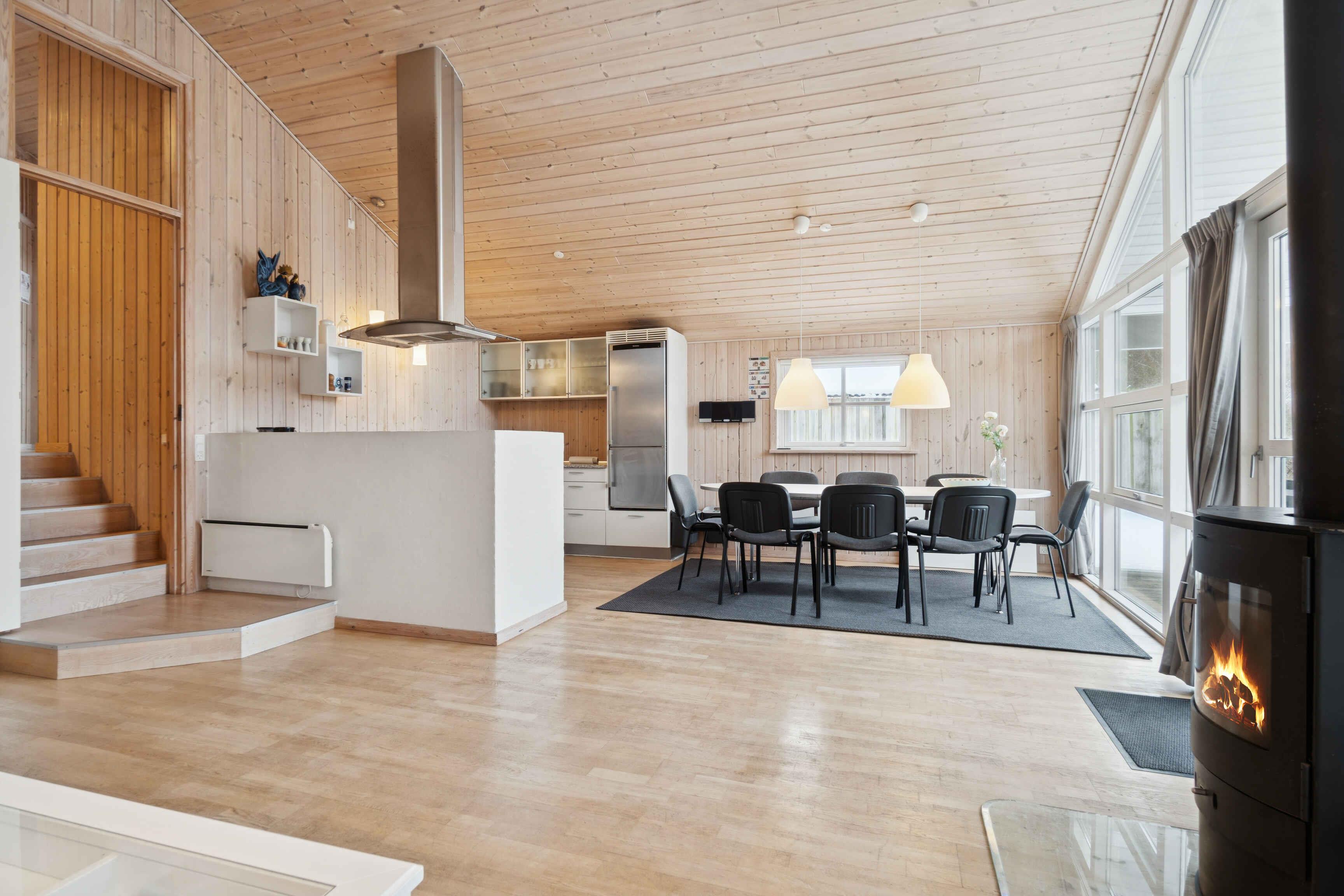 Dette moderne sommerhus på 100 m² er skabt til afslappet ferie med familie eller venner. Her er god plads, en behagelig planløsning og en stemning, der inviterer til samvær og ro – både inde og ude. Huset er bygget i forskudte plan, hvilket giver et naturligt flow og en fin rumfornemmelse. Det åbne køkken og spisepladsen ligger i forbindelse med stuen, hvorfra der er udgang til en overdækket terrasse med udsigt til naturen. Feriehuset rummer tre pæne soveværelser med i alt otte sovepladser samt en rummelig hems, der gør huset velegnet til to familier. Badeværelset er flot indrettet og byder på både spabad og sauna til afslapning efter dagens oplevelser. Fra terrassen kan I nyde naturen helt tæt på. Huset ligger ved en meget lille sø, som skaber en særlig ro, og med kun cirka 500 meter til vandet er strandture lette at flette ind i ferien. Helgenæs-området er et pragtfuldt naturområde med bakket terræn og snoede veje, der indbyder til både vandre- og cykelture. Fra mange steder er der udsigt til vandet, og det rige dyreliv giver følelsen af at være langt fra hverdagen. Området byder på fred, nærhed til naturen og små udflugtsmål. En tur til Sletterhage Fyr er oplagt, og herfra opleves kysten fra sin mest åbne side. Mobildækningen kan svinge, hvilket ofte bidrager til en mere uforstyrret ferie.
