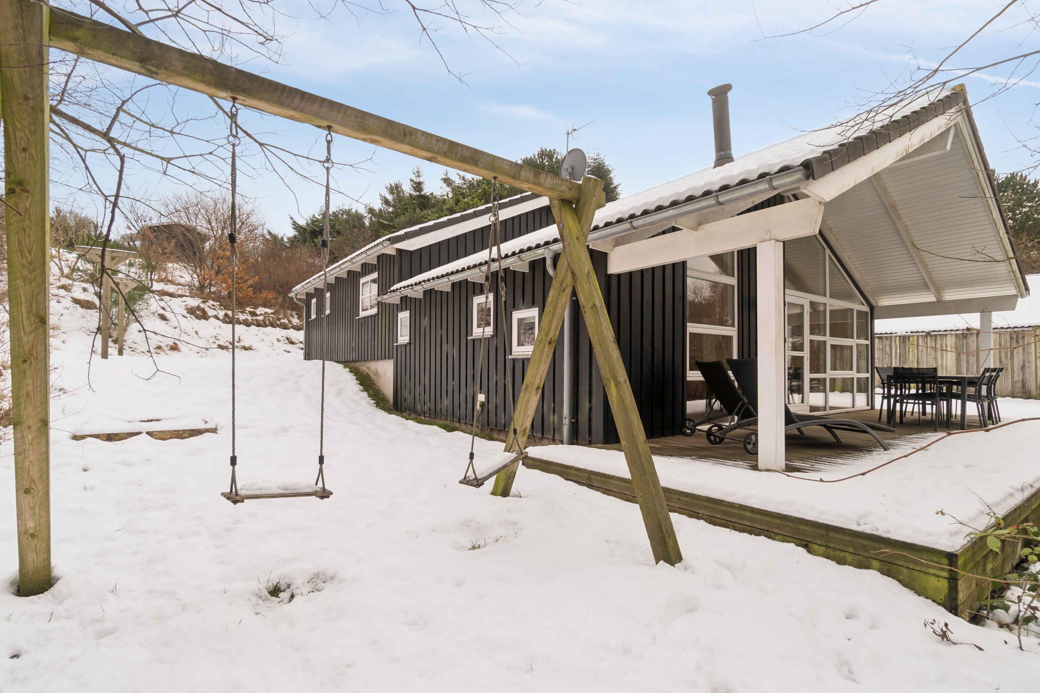 Moderne sommerhus på 100 m² med forskudte plan, åbent køkken/stue og overdækket terrasse. 3 soveværelser, hems og 8 sovepladser. Flot bad med spa og sauna. Beliggende ved lille sø, ca. 500 m til vandet.
