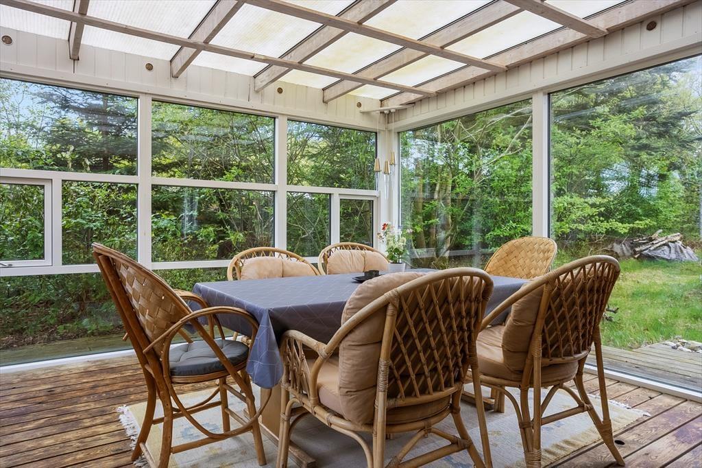 Når solen titter frem, kalder terrassen – og her er der gode muligheder for at nyde de stille morgener med fuglefløjt og duften af hav. Terrassen ligger godt i læ og indbyder til afslappende timer under åben himmel. Du kan tage maden med udenfor og tænde op i grillen, mens børnene leger i haven eller tager en hurtig tur ned til stranden. Det er nemt at finde en god plads i solen eller skyggen, og udelivet bliver hurtigt en naturlig del af feriedagene her. Har du hund med, vil både du og den firbenede ven sætte pris på den frie adgang til det grønne område og de mange gåture i nærområdet.