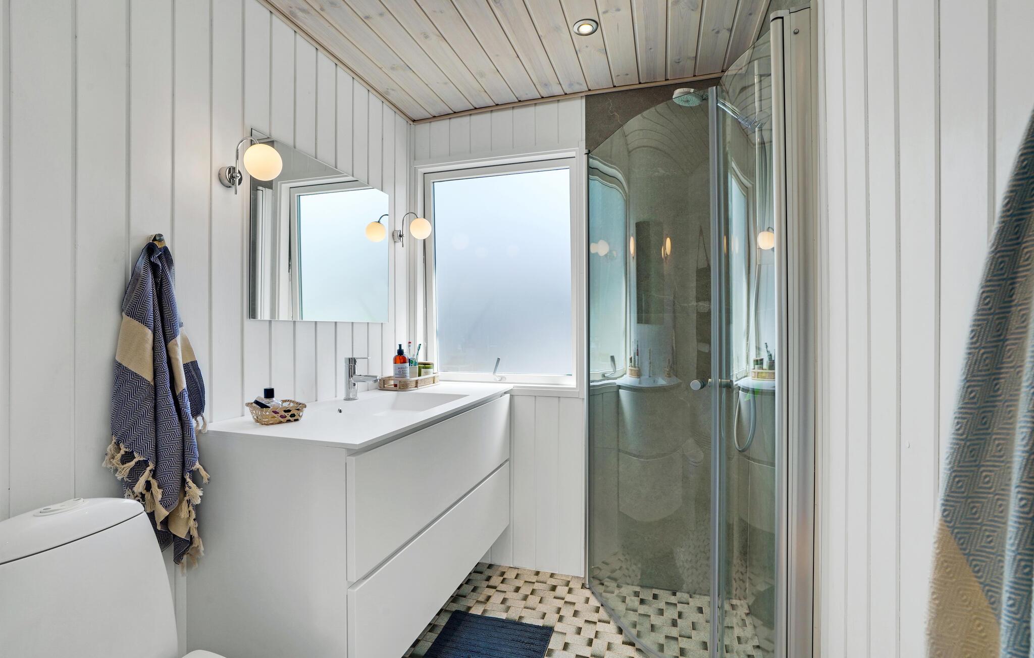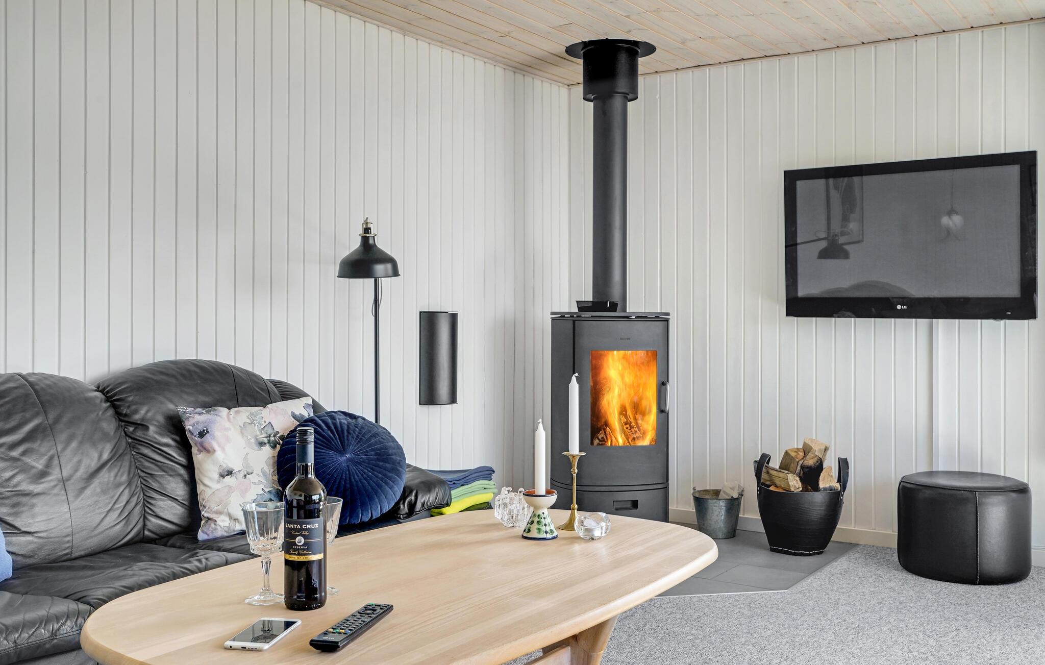 Dette komfortabelt og lyst indrettede feriehus venter på jer i smukke naturomgivelser. Hjertet i huset er den store stue med åbent køkken, der binder hele huset sammen. Nyd afslappende læsestunder i et af sofahjørnerne, mens I af og til lader blikket vandre ud over fjorden. Varm jer foran brændeovnen i den kølige årstid efter en aktiv dag i den friske luft.