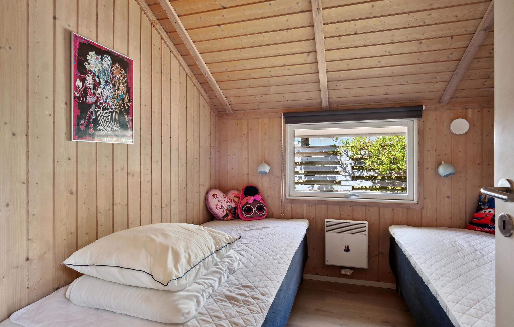 Tag hele familien med til dette feriehus, som inviterer til sjove oplevelser, afslapning og hygge. Kort sagt: Nærvær. Ferieboligen består af et hovedhus og et lille anneks. Hovedhuset byder på et stort og smagfuldt køkken-alrum, som bliver flot oplyst af dagslyset, der strømmer ind gennem de store gulv-til-loft-vinduer. Sæt jer godt til rette i sofaen, læs en god bog eller spil brætspil ved spisebordet. Haven bliver også jeres egen lille oase af ro. Nyd solen i hængekøjen, bliv brun på liggestolen, spil et slag kort under parasollen og spis lækker grillmad på terrassen. På græsplænen er der rigelig plads til at boltre sig. Havet og den smukke, populære Kobæk strand ligger kun en kort gåtur herfra, og her kan I tilbringe afslappende timer, fiske og bade.
