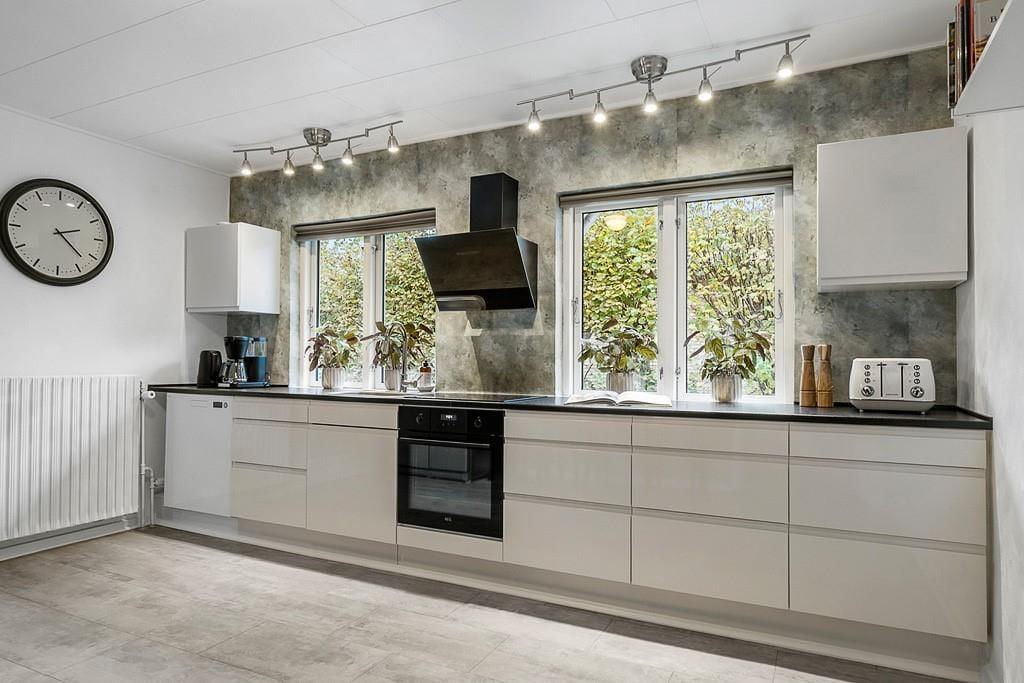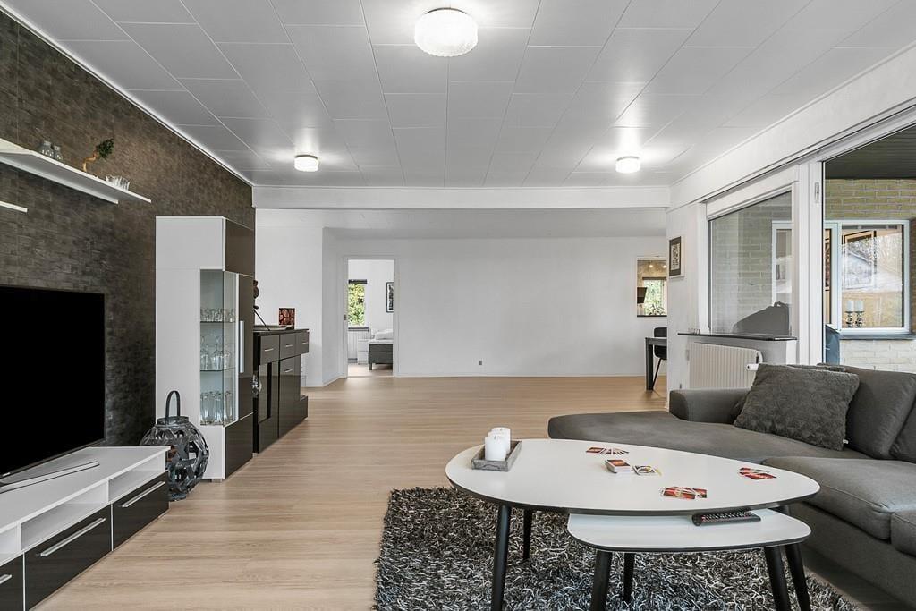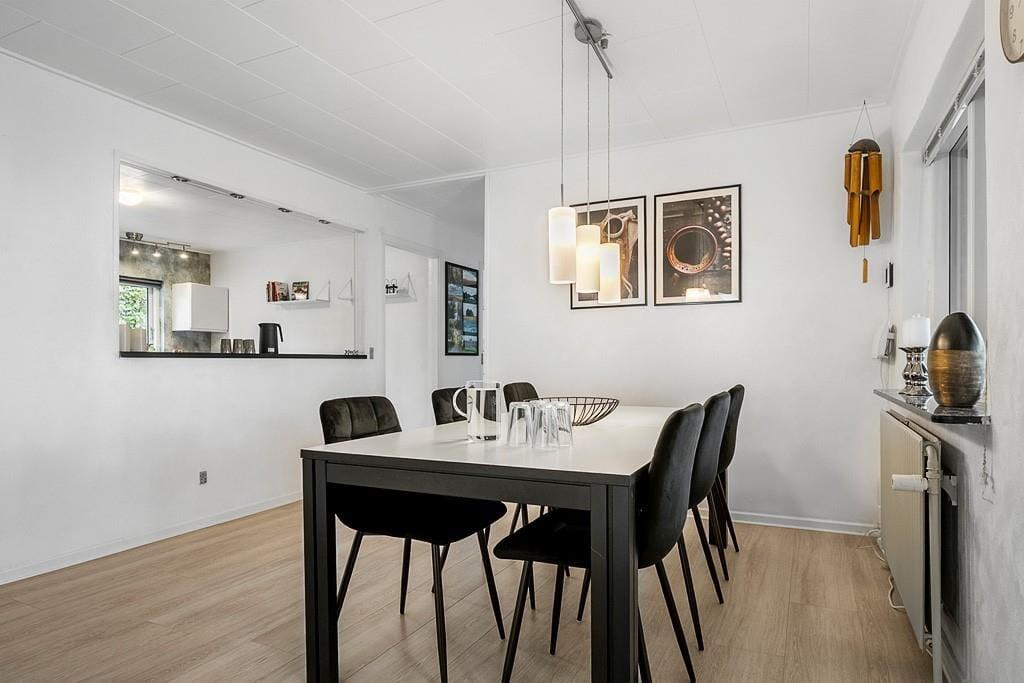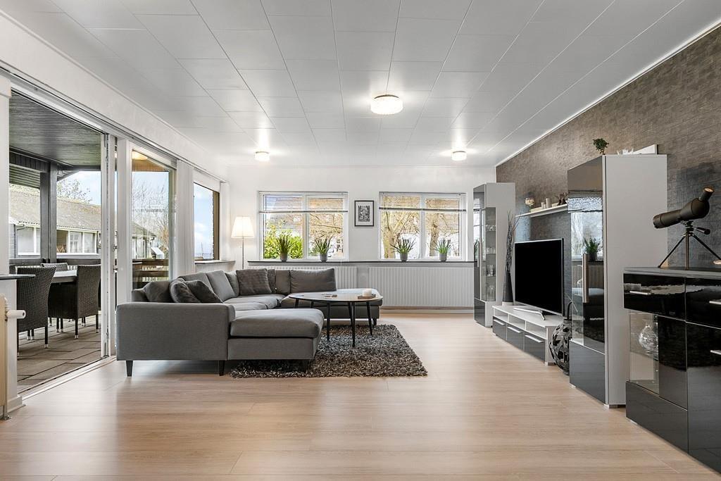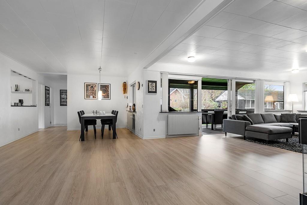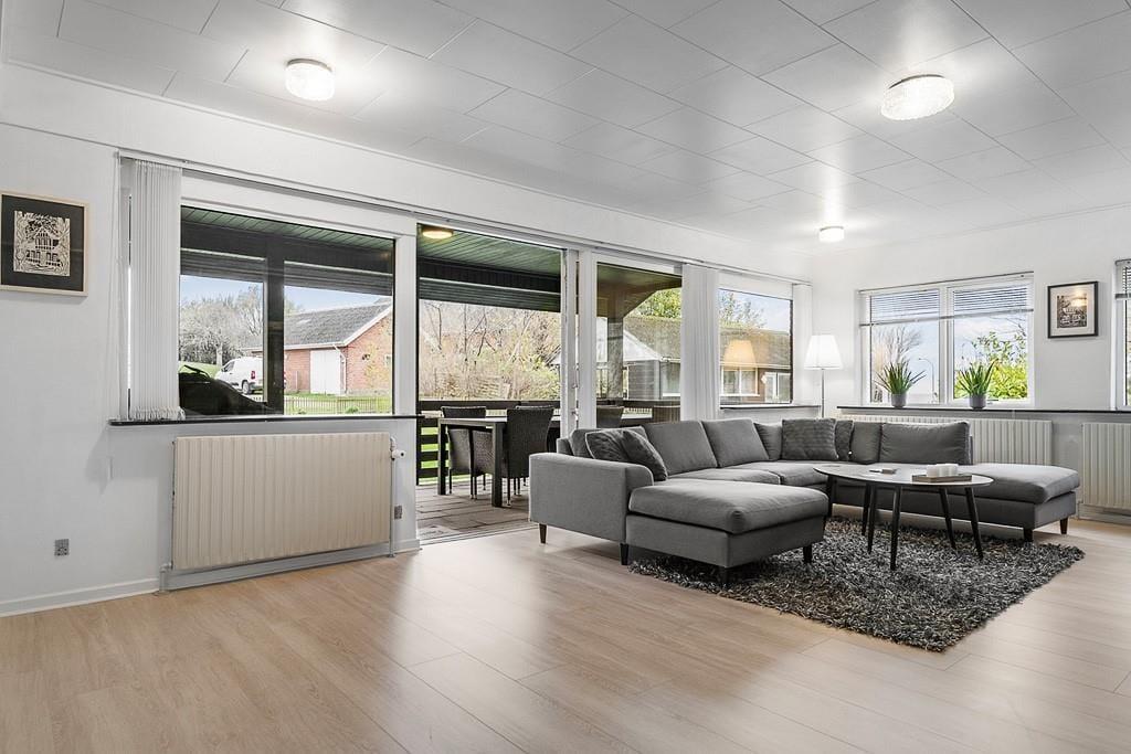 Fra stuen er der direkte udgang til den overdækkede vestvendte terrasse, hvor I kan sidde i læ og nyde jeres måltider. Ved huset er der også en god indkørsel, så de praktiske forhold er helt på plads.