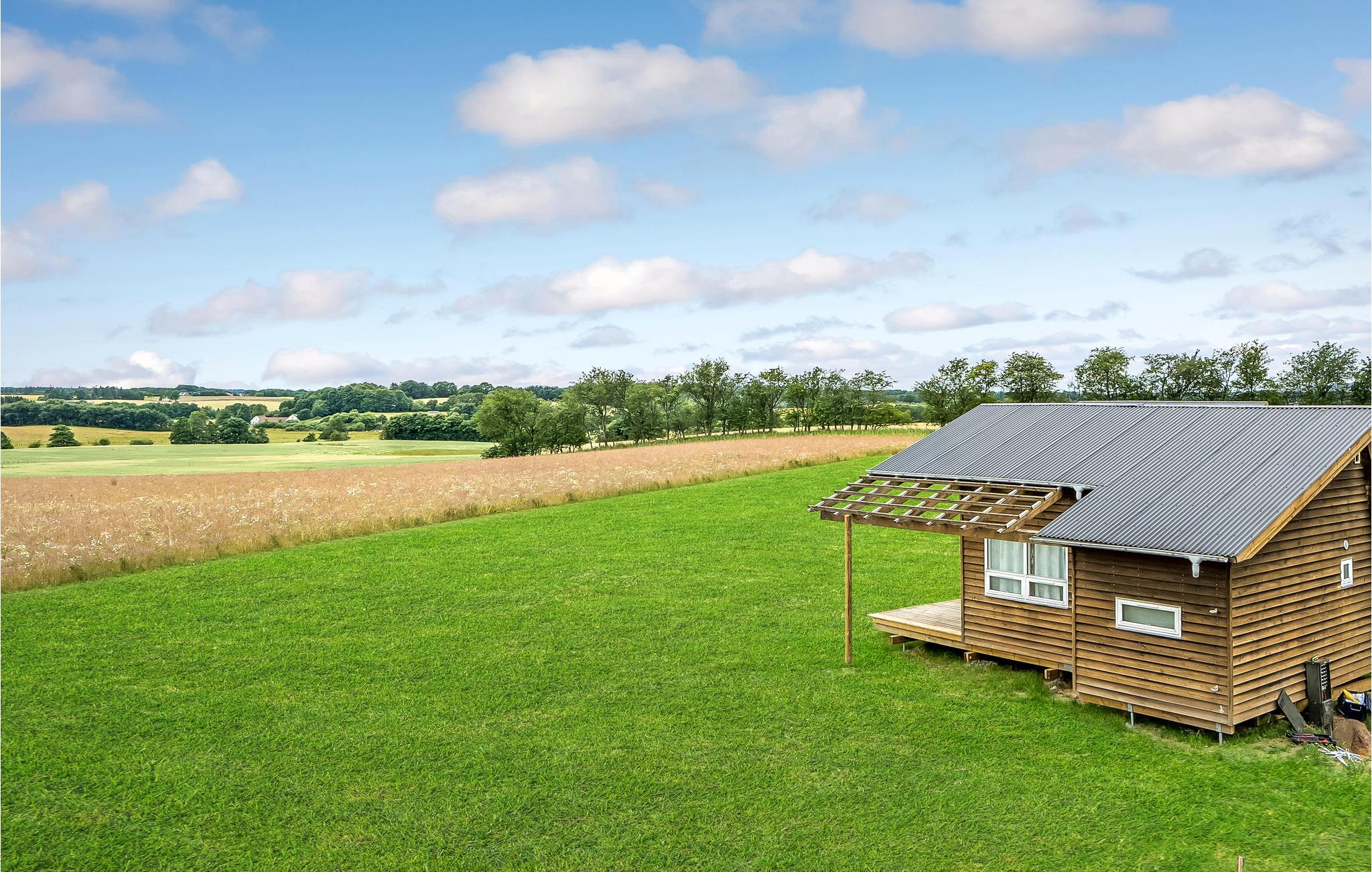 Denne feriebolig er det perfekte valg for en lille familie med børn, eller for jer, der skal overnatte i forbindelse med kurser, koncerter eller familiebesøg i området. Føl jer hjemme i dette moderne træhus i Tiny House-stil. I finder alle de møbler, I har brug for til et afslappende ophold. I kan nyde godt af de store vinduer, der lukker masser af lys ind i huset selv på overskyede dage, hvilket giver det en vidunderlig åben og rummelig atmosfære. Når vejret er godt, kan I trække jer tilbage til den delvist overdækkede terrasse og nyde måltiderne i fred og ro. Større børn vil helt sikkert blive begejstrede for den åbne hems med ovenlysvindue. Her strømmer solstrålerne ind i huset om dagen, og om natten åbner der sig en vidunderlig stjernehimmel over jer.