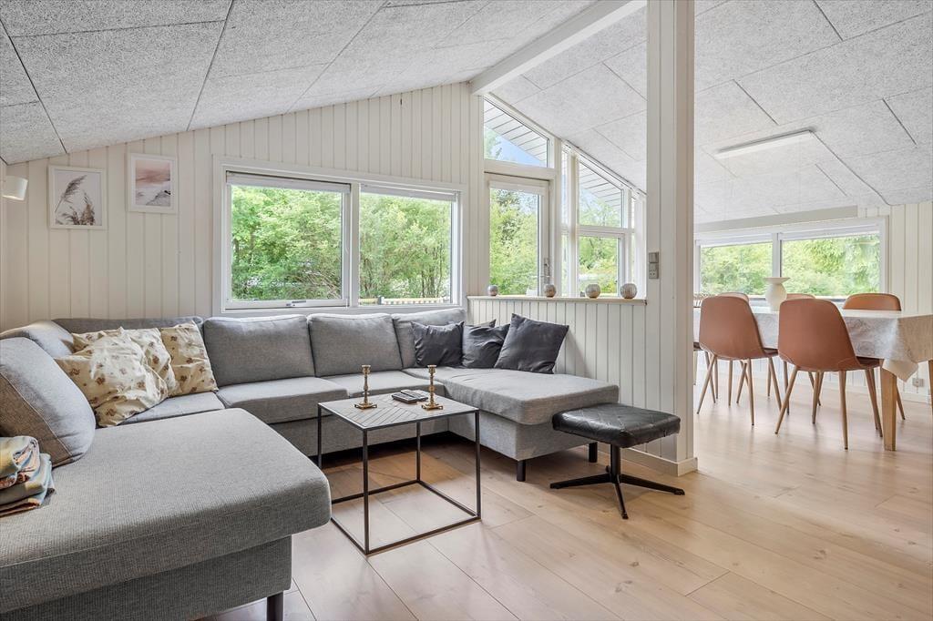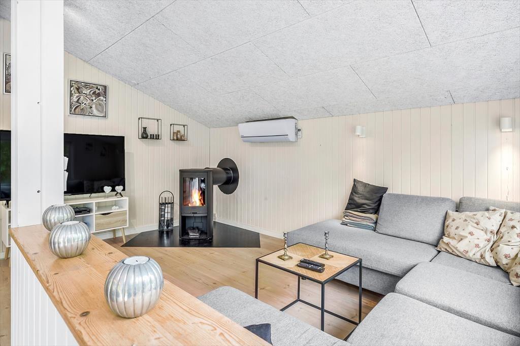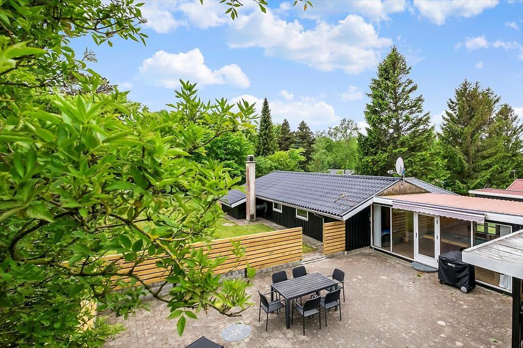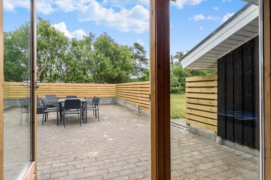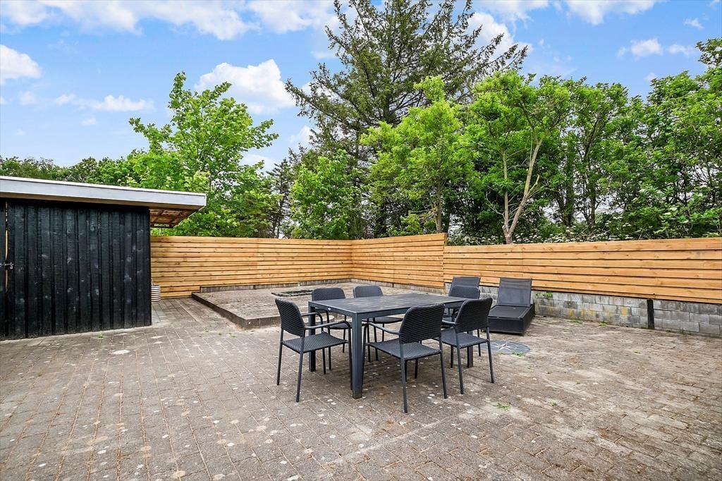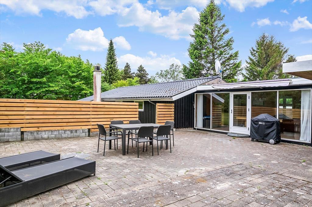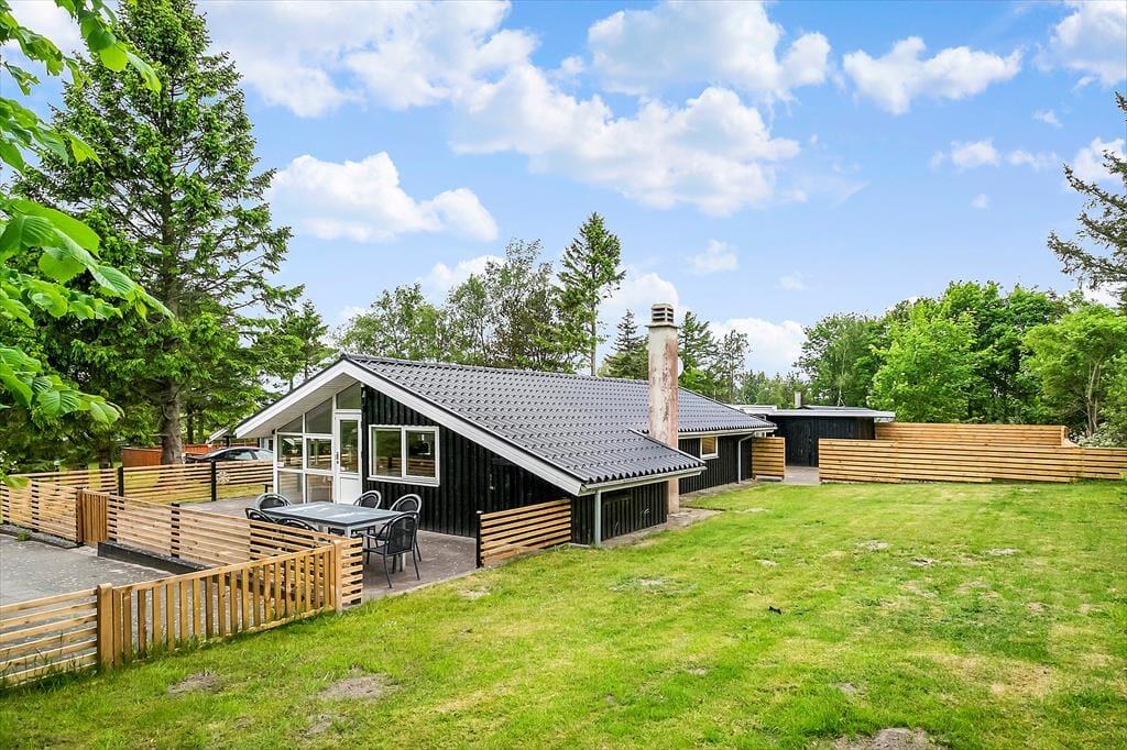Sommerhuset er placeret på en dejlig, græsklædt grund, og på den anden side af randbeplantningen breder de åbne marker sig. Her er der mulighed for det tilbagelænede driverliv i en behagelig havestol. Terrasser er der to af, og de er begge store og helt indhegnede af plankeværk. På den ene terrasse er der etableret et bålsted, og der er også grill til rådighed, så I kan selv bestemme, om menuen skal stå på snobrød eller grillbøffer.