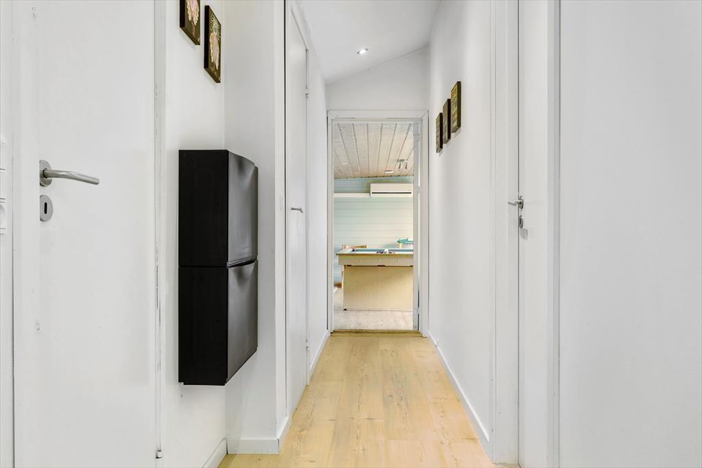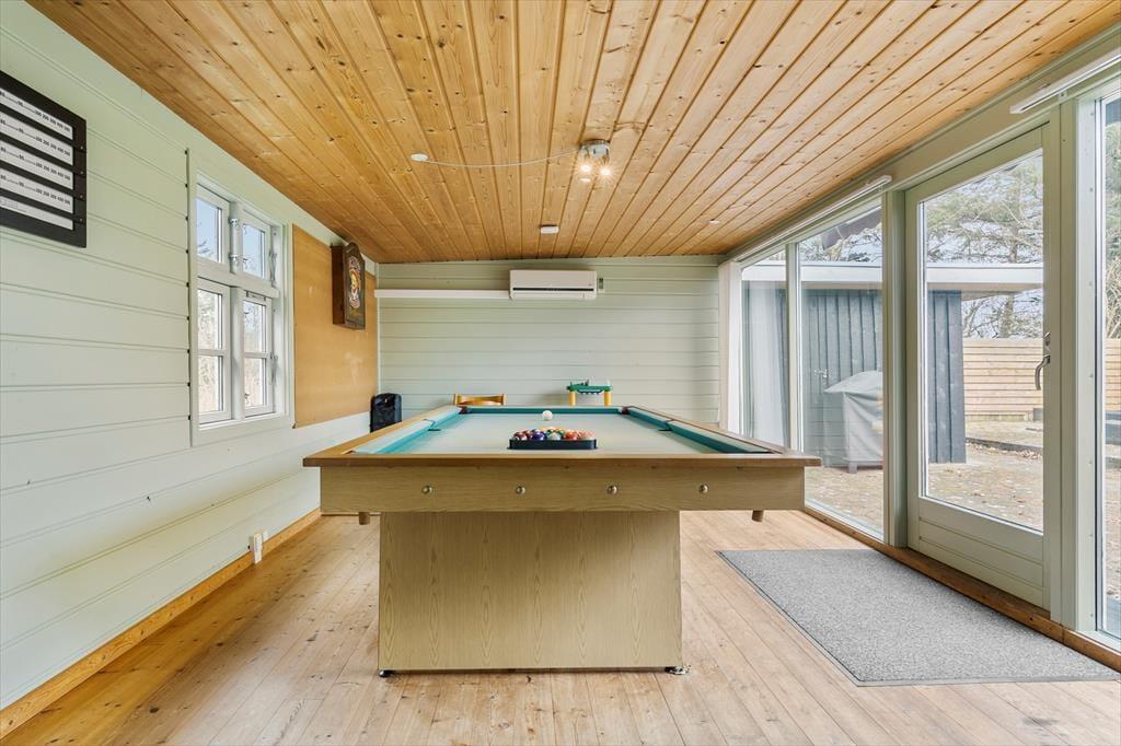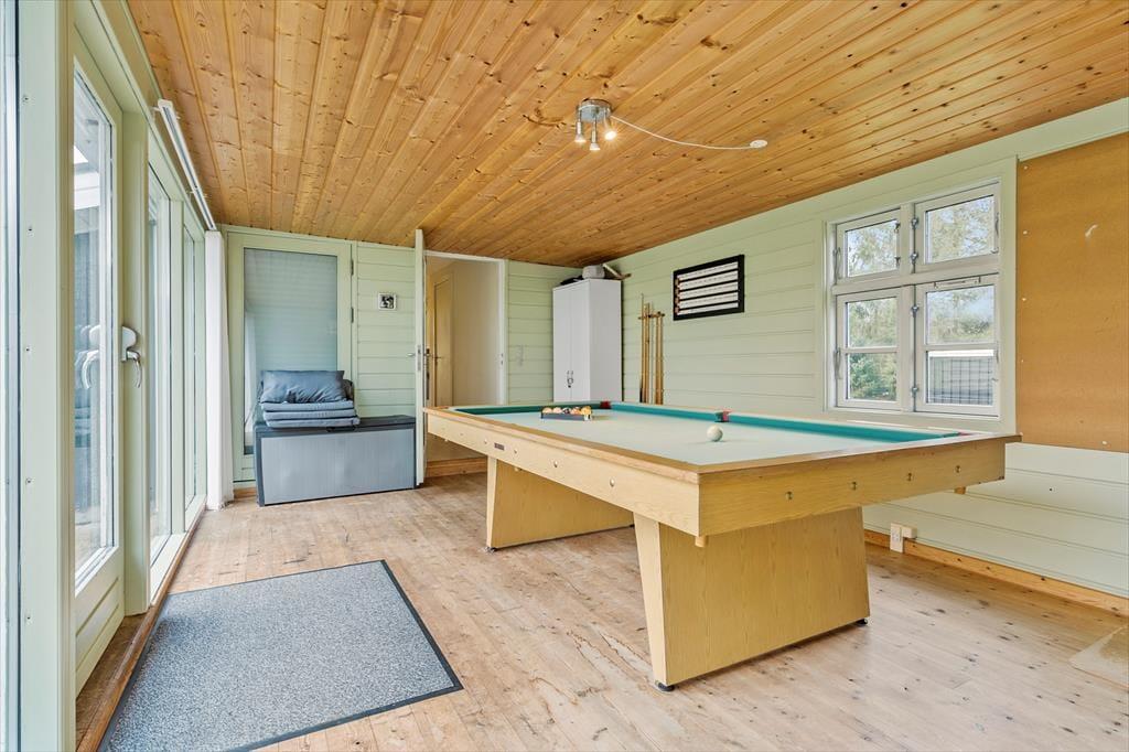 De smukke naturomgivelser er selvfølgelig vigtige, men det er mindst lige så betydningsfuldt, at huset giver jer en dejlig ramme om ferielivet. Når I kommer hjem efter badeture eller andre udflugter, kan I slappe af i stuens komfortable sofa eller samles omkring spisebordet for at spille kort. Dagens måltider kan I trylle frem i den integrerede køkkenafdeling – og mens lasagnen eller andre lækkerier er i ovnen, kan I spille billard og dyste i dart i udestuen. Planløsningen byder desuden på et pænt badeværelse og tre soverum, som alle er udstyret med dobbeltseng.