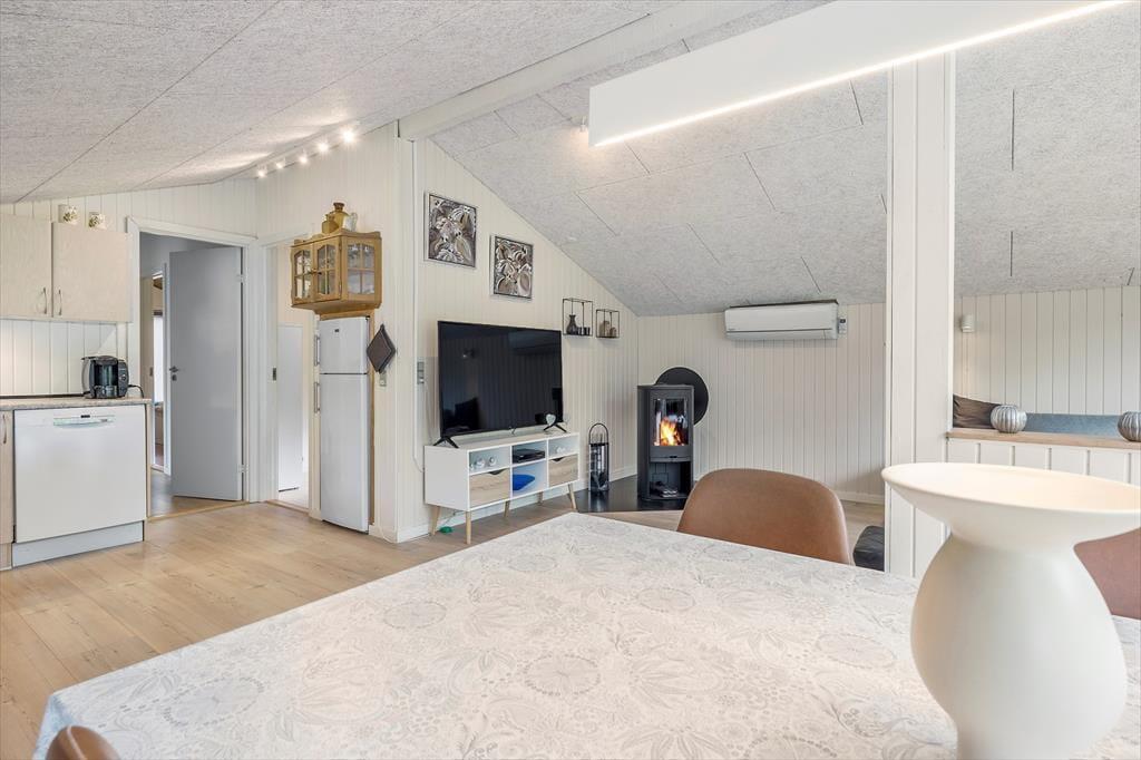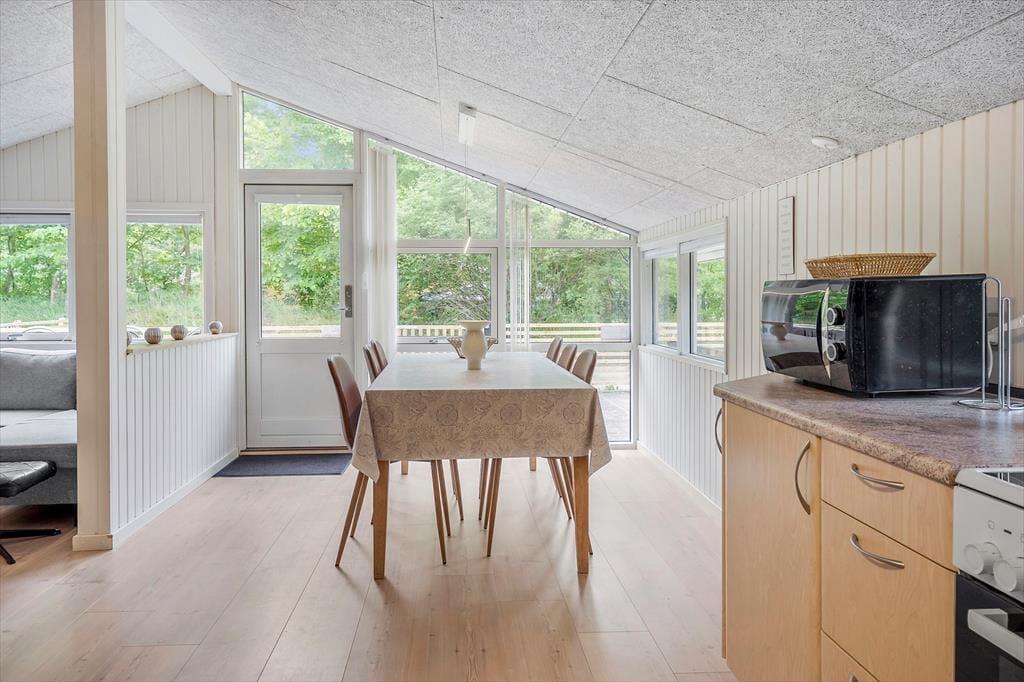 Huset ligger for enden af en lukket vej, hvilket er med til at understrege den fredsommelige atmosfære. Får I lyst til en travetur i naturen, er det oplagt at følge de afmærkede stier i Kollerup Plantage, der ligger nord for sommerhusområdet. Her er også et godt mountainbikespor med flere sværhedsgrader, og hvis I hellere vil have en dukkert eller en vandretur ved Vesterhavet, ligger stranden omtrent fem kilometer væk. Endnu tættere på ligger Fjerritslev, hvor I kan købe ind i supermarkederne, gå i biografen, spille golf og lade jer friste af byens spisesteder og butikker.