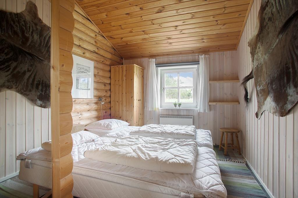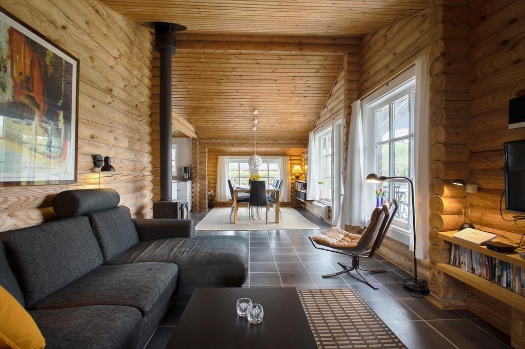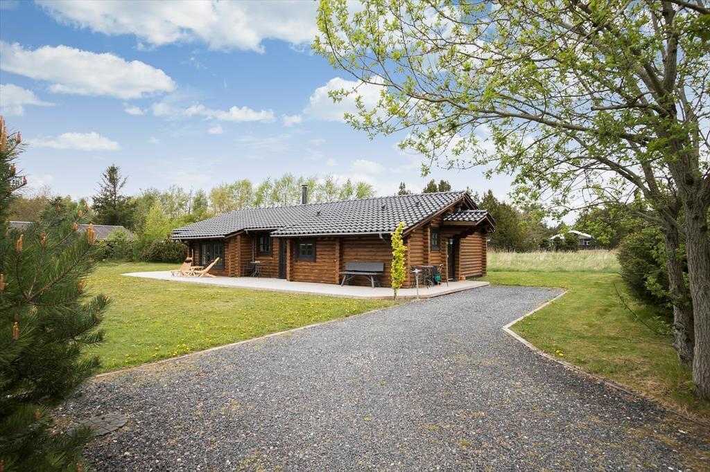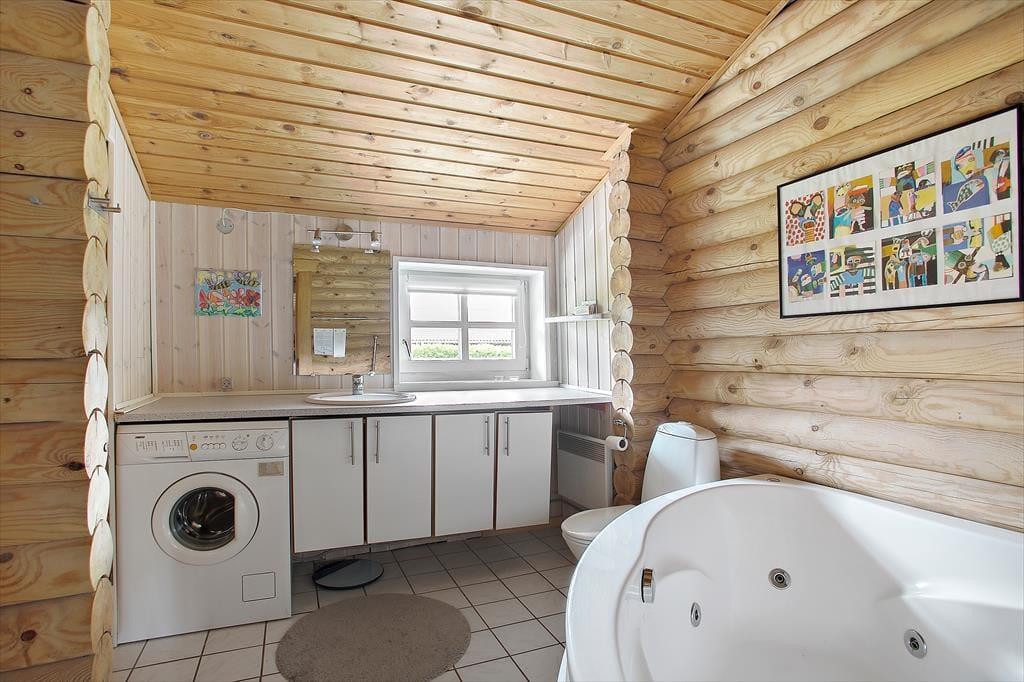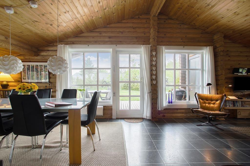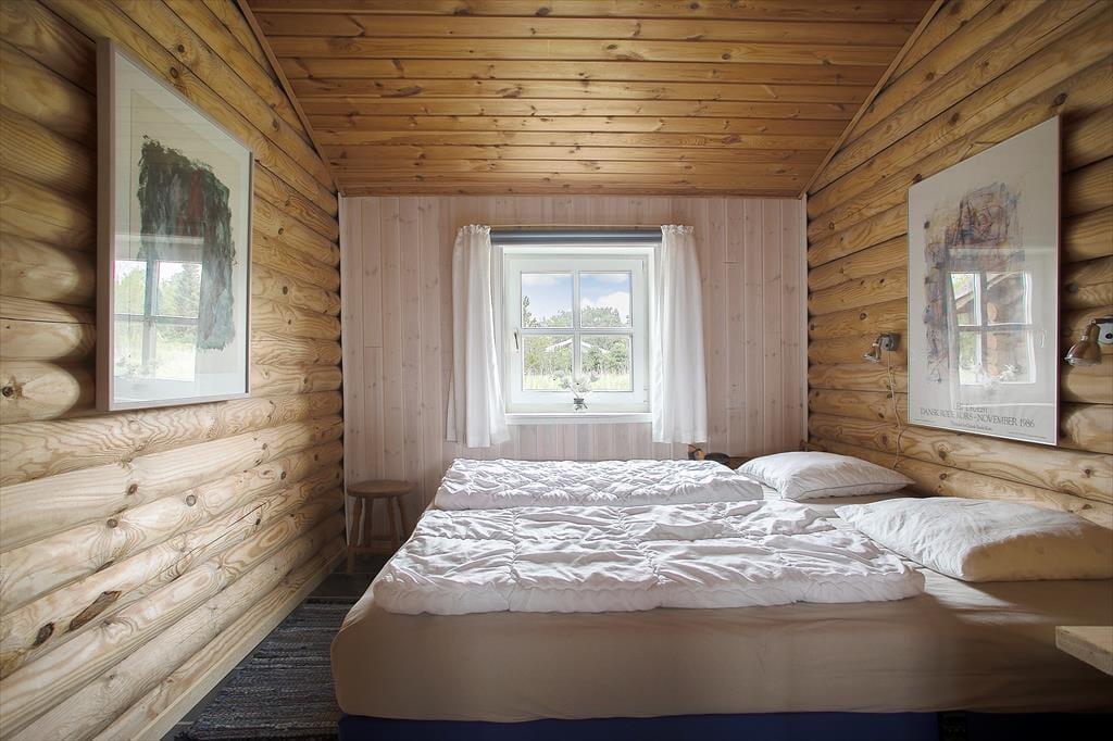 Balancen mellem rustikt og luksuriøst er virkelig velfungerende her i huset, der er opført i 2004. Som et klassisk bjælkehus har selve arkitekturen en rå charme og masser af personlighed, og samtidig er det fuld af lækre elementer – inklusiv et veludstyret køkken samt spa og sauna på badeværelset. Køkkenet ligger i åben forbindelse med en stor stue, som får lysindfald fra tre verdenshjørner og er indrettet med brændeovn. Soveværelser er der tre af, og det ene er udstyret med to køjesenge, så i alt er der plads til otte overnattende feriegæster i huset. Derfor er det også rart, at badeværelset har følgeskab af et gæstetoilet. Kort sagt er der tænkt over alt her i sommerhuset, lige fra den praktiske planløsning og til de mange hyggeskabende detaljer.